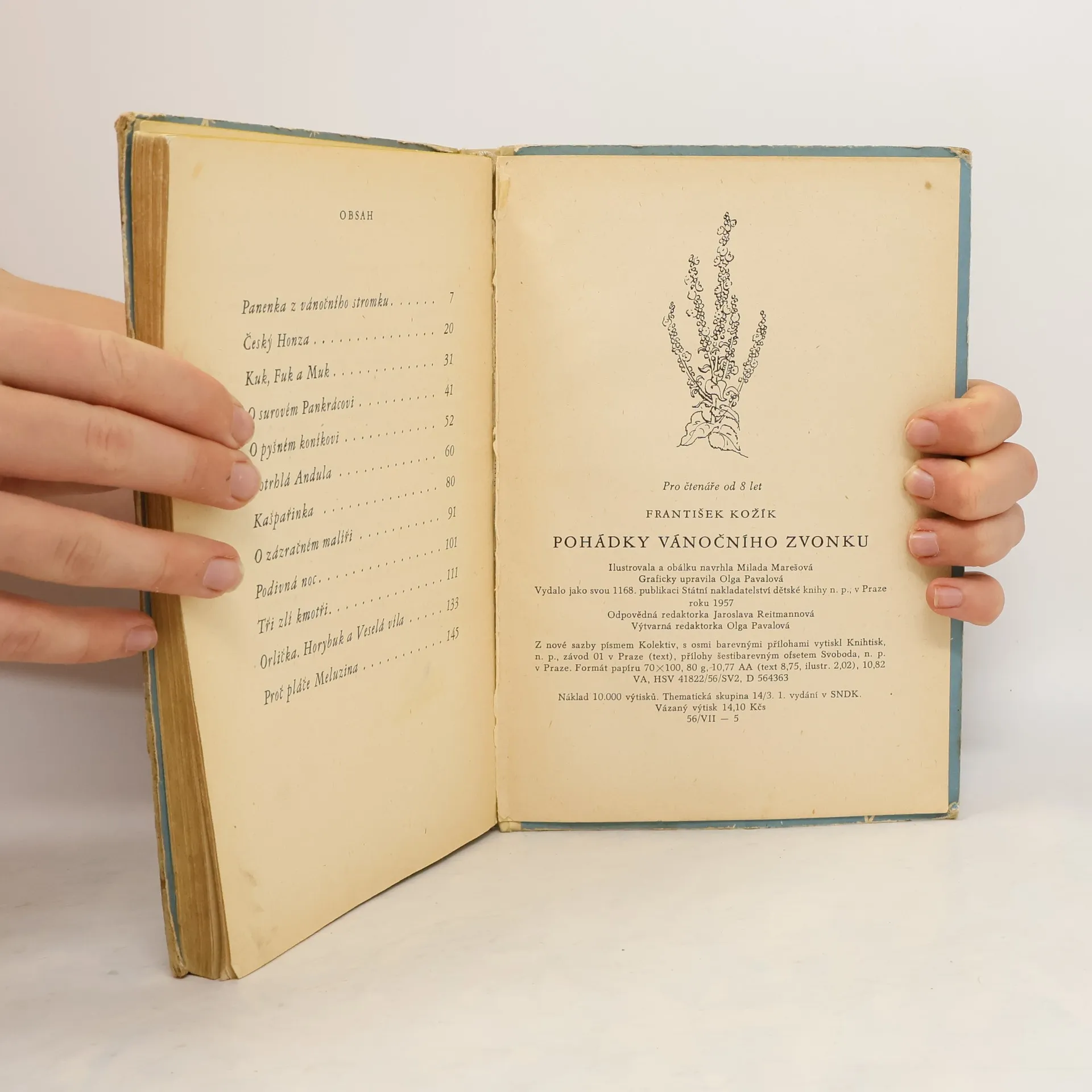 Tyto pohádky mi, drahé děti, vypravoval jeden vánoční zvonek. Je už starý, oprýskaný, trochu chroptí a občas úplně ztrácí hlas. Ale když už se na posledních zbytcích jeho stříbra odrazí plaménky štědrovečerních svíček, vypadá vždycky jako nový, a když přivolává děti k stromku,zní jeho cinkot jako andělský zpěv. To proto, že je nejšťastnější, když se v dětských očích rozsvítí záře štěstí. A protože i já mám ten pohled nade všecko rád, myslím, že jsem vánočnímu zvonku dobře porozumněl a napsal jsem jeho pohádky tak, jak mi je vyprávěl: s láskou a pro vaši radost. Sbírka obsahuje 12 původních pohádek, plných kouzel, rozličných zázraků i skutečných příhod. Učí děti znát krásu a pravdu života, podněcuji a rozvíjejí jejich obrazotvornost a vychovávají k důvěře ve vítězství dobra nad zlem. Některé z nich byly již vydány jako loutkové hry. (Meluzina, Tři zlí kmotři, Potrhlá Andula a Statečný Honza.)