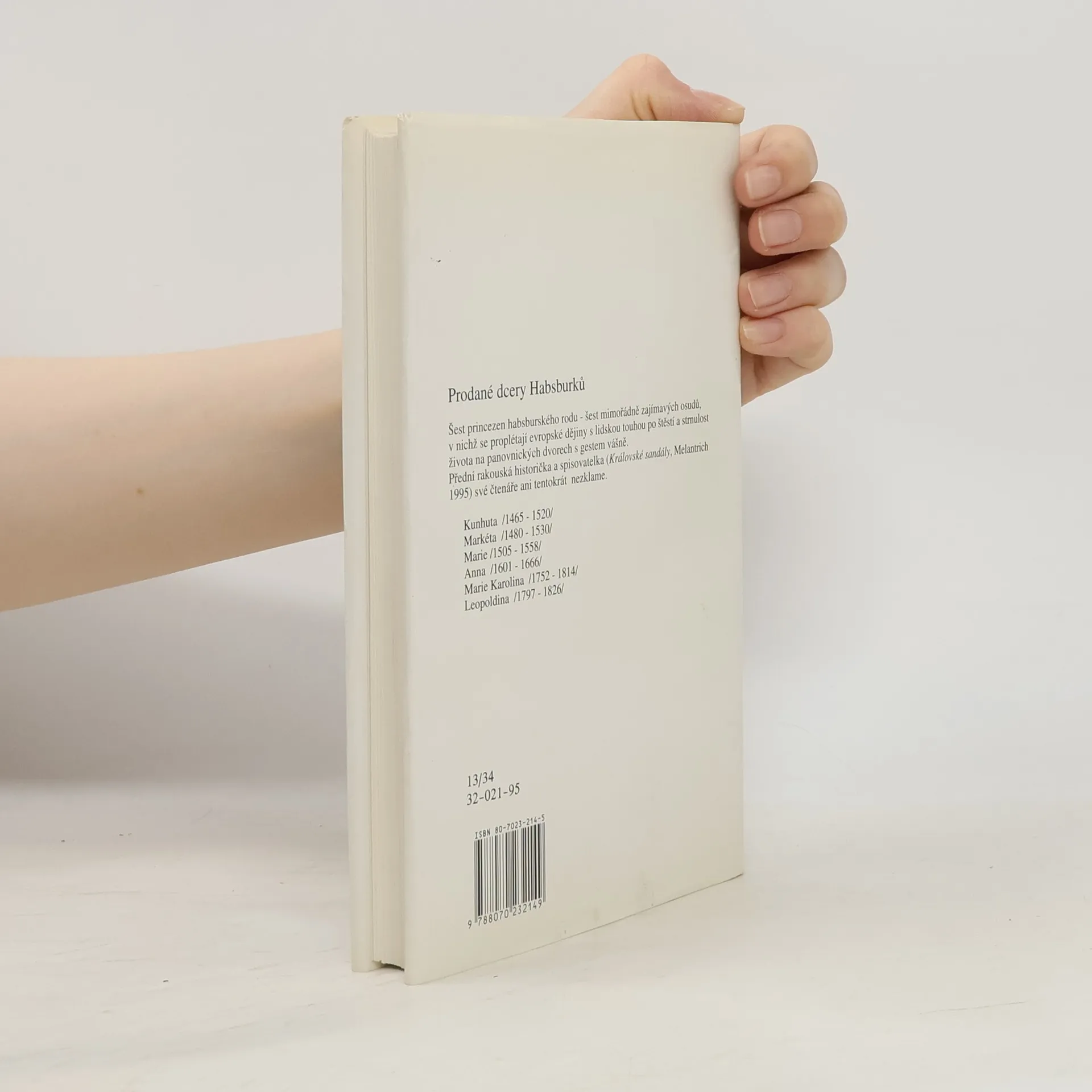 Princezny z rodu Habsburků, ač vzdělané, odvážné a důvtipné, byly často opomíjeny kronikáři. O jejich životních osudech často víme jen pár střípků. Tato kniha přibližuje osudy alespoň šesti z nich, od Kunhuty, narozené v 15. stol. po Leopoldinu, kterou provází čtenáři až do 19. století. Příběhy přibližují nejen osobnosti princezen, ale i politická rozhodnutí a zajimavosti doby, v které žily.