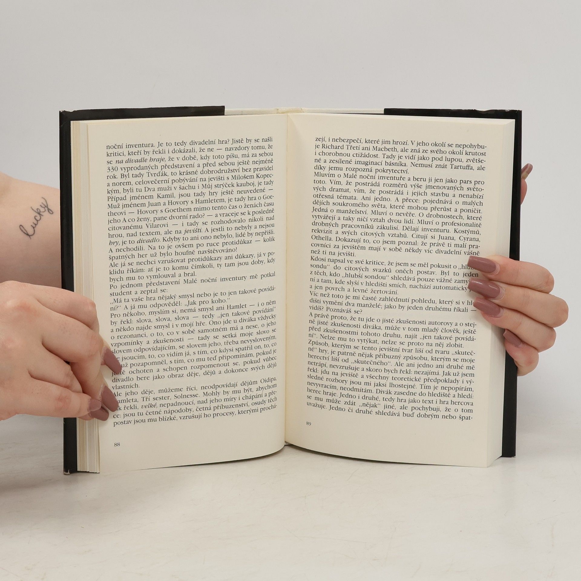 Člověk jak se říká ví své. Tyto poznámky jsou výsledkem mého padesátiletého pobývání na jevišti. Nejsou to paměti ani vzpomínky,říkám tomu: poznámky. Tak to prosím, berte. Ani ta padesátiletá praxe mi nedovoluje vytvářet nějakou teorii. Jsou to, opakuji, jen a jen poznámky o tom, jaké postupy mám na jevišti rád a které odmítám. Pokud herec může vůbec nějaké postupy odmítat. Hraju a proto jsem rád, což mi připomíná Descartovo: myslím, tedy jsem. I nadále tedy hromadím zkušenosti, ze kterých možná budou další poznámky. Což neberte jako příslib dalšího dílu nebo vyhrožování tímto.