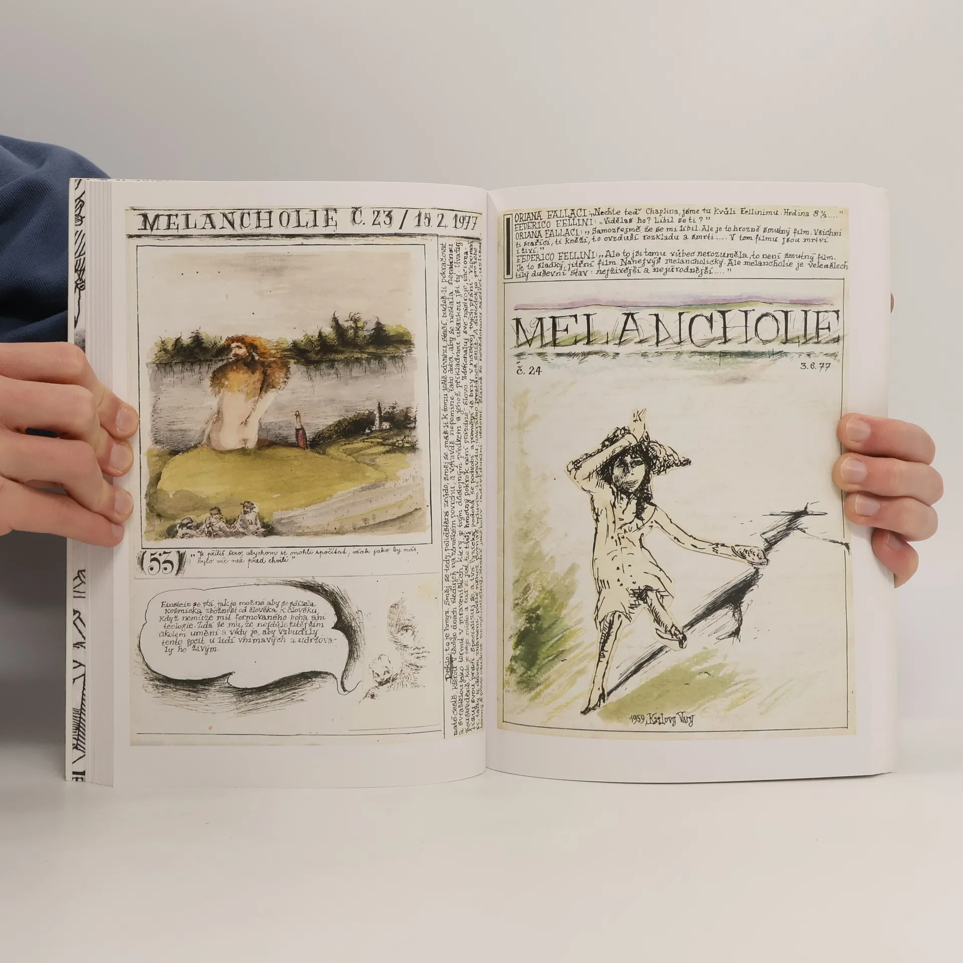 Helena Wernischová začala na přelomu 60. a 70. let vytvářet zcela originální časopis v jediném exempláři - vždy pečlivě vyhotovený na ručním papíře, s nepravidelnou periodicitou - a tento její mimořádný autorský počin trvá po více než čtyřicet let. Melancholie spojují autorčiny kresby a akvarely s textem, většinou ručně psaným. Vedle záznamů snů zde najdeme nesčetné citáty a výpisky z četby, od autorů světových i českých, básníků i prozaiků, myslitelů a esejistů. Vzniklo tak mimořádně působivé a velmi rozsáhlé dílo literární i výtvarné, pro něž bychom v českém kontextu jen stěží hledali obdobu. Pro knižní vydání zvolila Wernischová formu autorského výběru - jde tedy o knihu nově promyšlenou a komponovanou. Podrobnější vhled do její tvorby a do okolností vzniku Melancholií přinášejí i dva rozhovory, v nichž Helena Wernischová odpovídá na otázky Radka Malého a Terezy Kodlové, a text syna Martina Wernische.