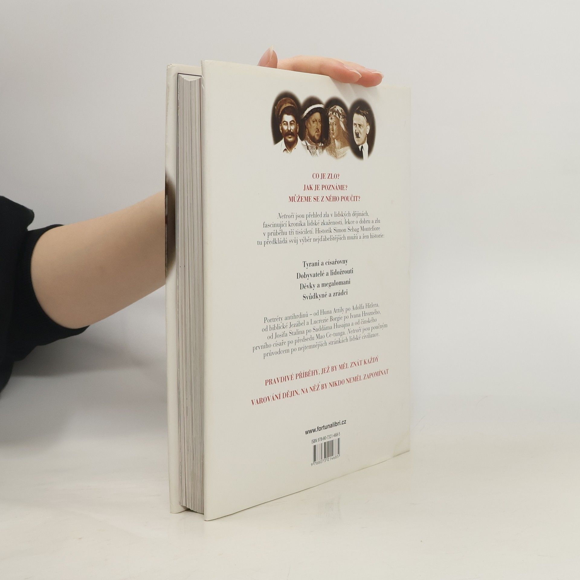 Životní příběhy z temné historie - portréty lidí, kteří poznamenali naši planetu krví - mapují odvrácenou tvář dějin. Najdeme tu životní osudy mimo jiné Jezábel, Heroda, Attily, anglického krále Richarda II., Alžběty Báthoryové, Pancho Villy, Rudolfa Hesse, dr. Josepha Mengeleho i Saddáma Husajna… A mnoha dalších, bohužel. Příběhy jsou řazeny v časové posloupnosti a ten poslední patří Usámu bin Ládinovi. Kéž by byl opravdu poslední…!