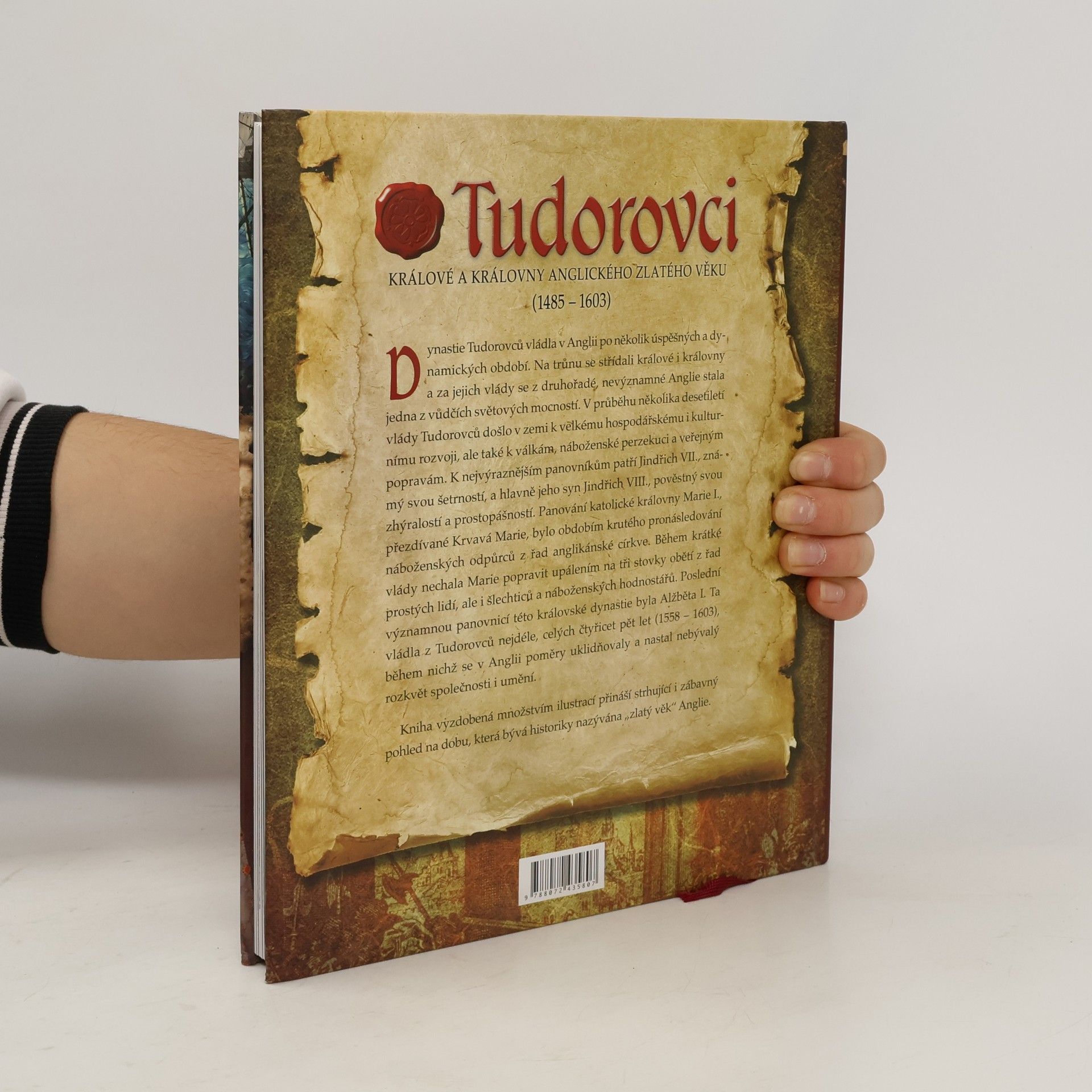Dynastie Tudorovců vládla v Anglii po několik úspěšných a dynamických období. Na trůnu se střídali králové i královny a za jejich vlády se z druhořadé, nevýznamné Anglie stala jedna z vůdčích světových mocností. V průběhu několika desetiletí vlády Tudorovců došlo v zemi k velkému hospodářskému i kulturnímu rozvoji, ale také k válkám, náboženské perzekuci a veřejným popravám. K nejvýraznějším panovníkům patří Jindřich VII., známý svou šetrností, a hlavně jeho syn Jindřich VIII., pověstný svou zhýralostí a prostopášností. Panování katolické královny Marie I., přezdívané Krvavá Marie, bylo obdobím krutého pronásledování náboženských odpůrců z řad anglikánské církve. Během krátké vlády nechala Marie popravit upálením na tři stovky obětí z řad prostých lidí, ale i šlechticů a náboženských hodnostářů. Poslední významnou panovnicí této královské dynastie byla Alžběta I. Ta vládla z Tudorovců nejdéle, celých čtyřicet pět let (1558-1603), během nichž se v Anglii poměry uklidňovaly a nastal nebývalý rozkvět společnosti i umění. Kniha vyzdobená množstvím ilustrací přináší strhující i zábavný pohled na dobu, která bývá historiky nazývána "zlatý věk" Anglie.