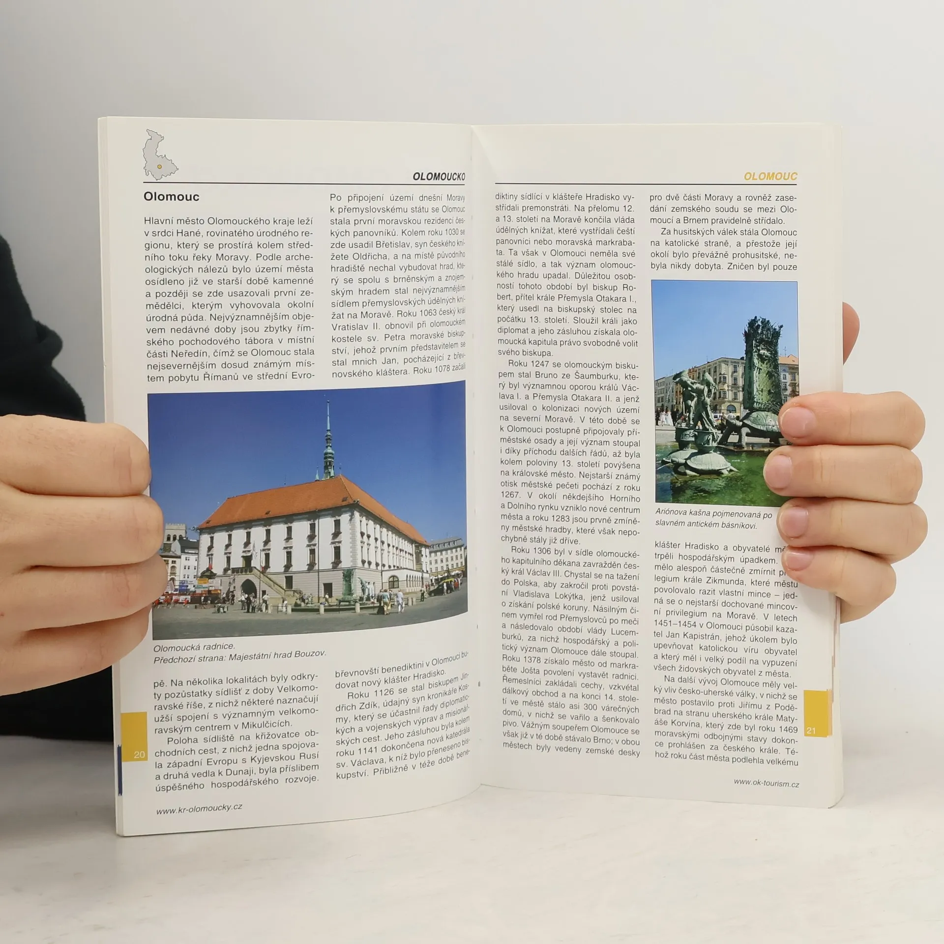 Průvodce představuje Olomoucký kraj z hlediska jeho bohaté historie, přírodních krás a architektonických památek. Vedle všeobecných informací seznamuje čtenáře s nejzajímavějšími místy Olomoucka, Prostějovska, Přerovska, Šumperska a Jesenicka. Nechybí adresář informačních center, ubytovacích, kulturních a dalších zařízení, důležitých pro návštěvníky. Praktickou pomůckou jsou internetové odkazy, plánky větších měst a mapa kraje v měřítku 1:400 000. Atraktivitu oblasti dokresluje bohatý obrazový materiál.