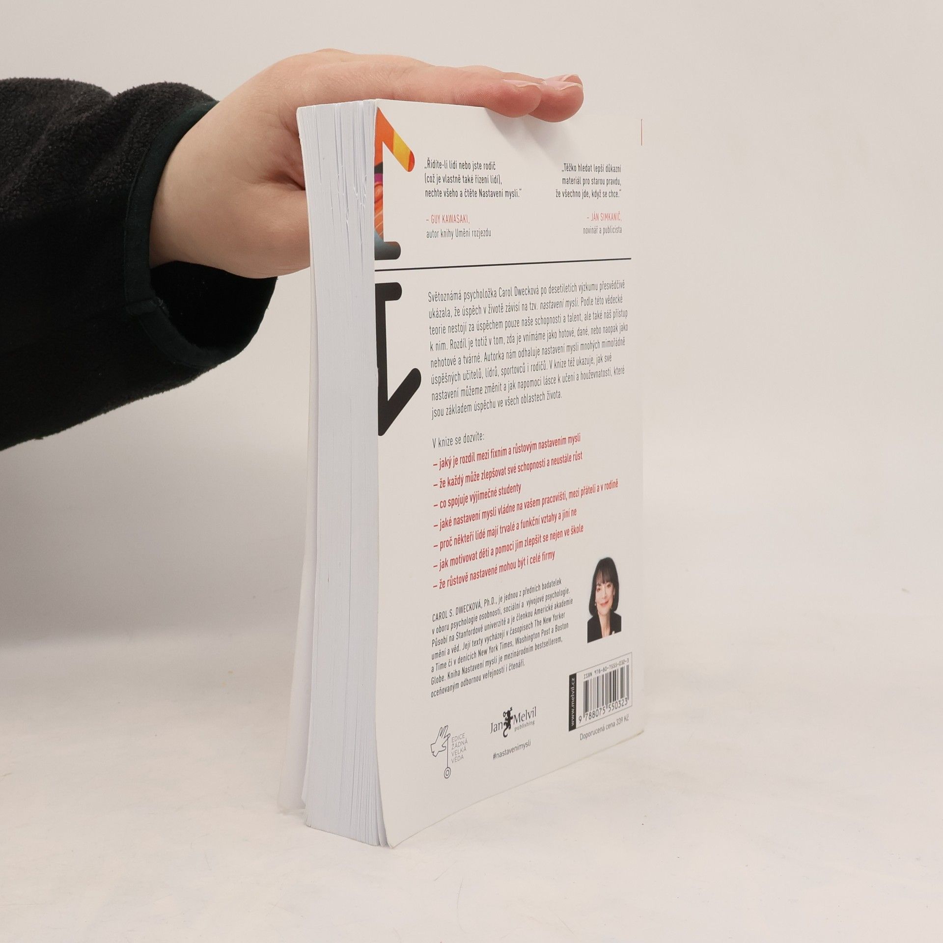Jednoduchá myšlenka, kolem níž se tato kniha točí, a za níž stojí desítky let vědeckého výzkumu, se dá vyjádřit zhruba takto: úspěch máme ve svých hlavách. Profesorka Dwecková se svým týmem na Standfordské univerzitě zjistila, že svou přirozeností tíhneme ke dvěma relativně vyhraněným způsobům myšlení o sobě a své úspěšnosti: k myšlení růstovému a myšlení fixnímu (angl. „growth mindset“ a „fixed mindset“). To, které myšlení u nás převládá, pak významně ovlivňuje naši reálnou úspěšnost. Ke zjištěním Dweckové popsaným v knize patří nadějný závěr, že se navzdory své dispozici dokážeme během života změnit, a autorka ukazuje, jak na to: jak využít svůj plný potenciál. Chcete vědět, jak přesně se dva zmíněné typy myšlení projevují? Typickým rysem fixního myšlení je vzdávání se před překážkou, neschopnost přijímat zpětnou vazbu, špatný pocit při vnímání úspěchu ostatních, vyhýbání se výzvám a negativní postoj k úsilí jako takovému. Naopak růstové myšlení se projevuje vřelým vztahem k výzvám, vytrvalostí při čelení překážkám, pozitivním vztahem ke kritice. Růstově myslící člověk vnímá úsilí jako cestu k mistrovství a v úspěchu druhých vidí inspiraci.