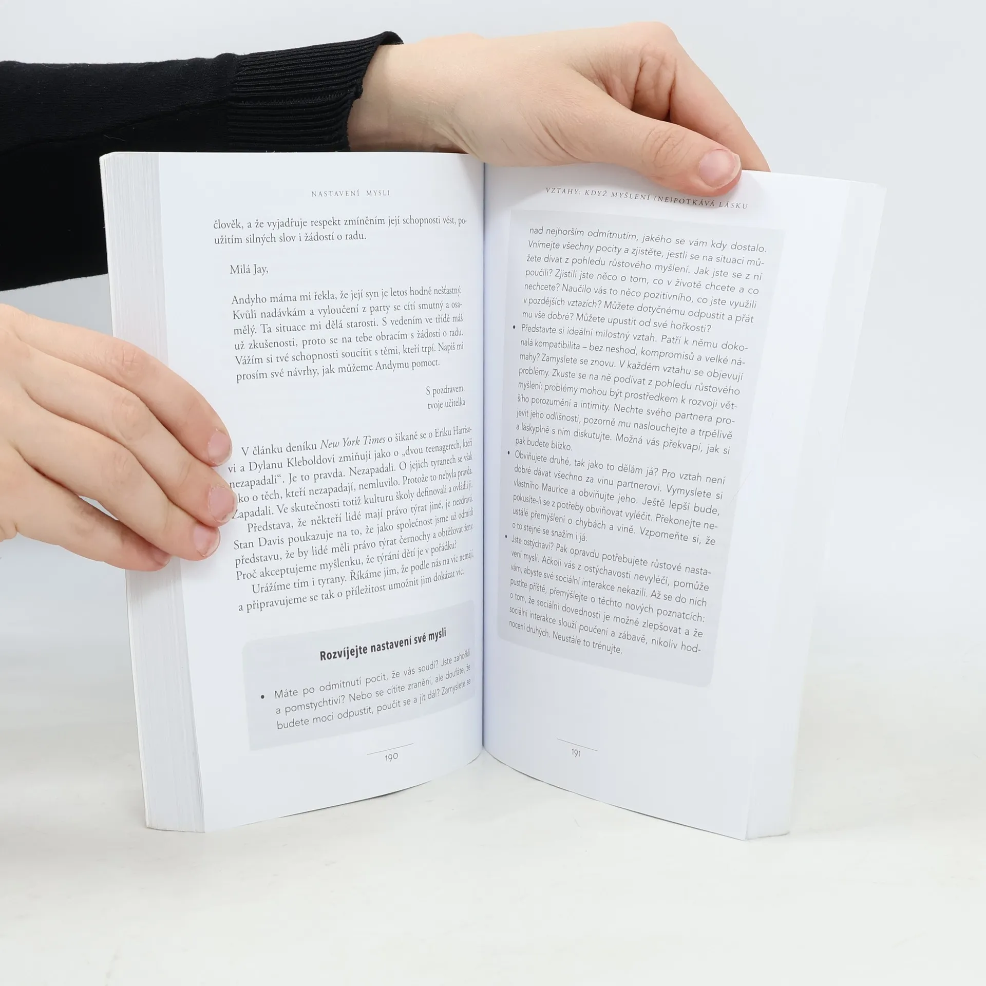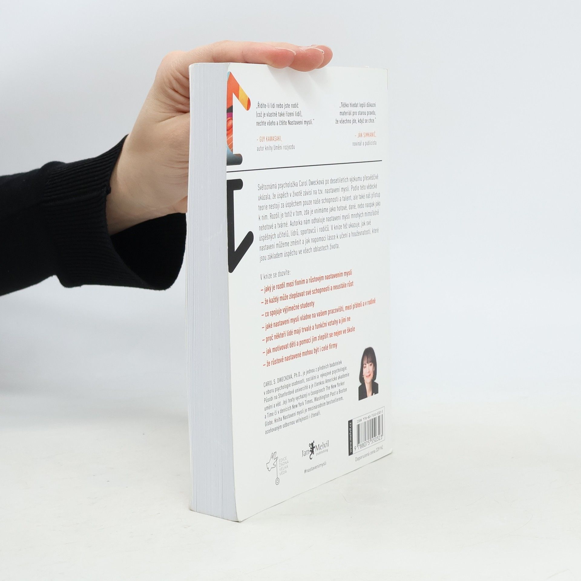 Jednoduchá myšlenka, kolem níž se tato kniha točí, a za níž stojí desítky let vědeckého výzkumu, se dá vyjádřit zhruba takto: úspěch máme ve svých hlavách. Profesorka Dwecková se svým týmem na Standfordské univerzitě zjistila, že svou přirozeností tíhneme ke dvěma relativně vyhraněným způsobům myšlení o sobě a své úspěšnosti: k myšlení růstovému a myšlení fixnímu (angl. „growth mindset“ a „fixed mindset“). To, které myšlení u nás převládá, pak významně ovlivňuje naši reálnou úspěšnost. Ke zjištěním Dweckové popsaným v knize patří nadějný závěr, že se navzdory své dispozici dokážeme během života změnit, a autorka ukazuje, jak na to: jak využít svůj plný potenciál. Chcete vědět, jak přesně se dva zmíněné typy myšlení projevují? Typickým rysem fixního myšlení je vzdávání se před překážkou, neschopnost přijímat zpětnou vazbu, špatný pocit při vnímání úspěchu ostatních, vyhýbání se výzvám a negativní postoj k úsilí jako takovému. Naopak růstové myšlení se projevuje vřelým vztahem k výzvám, vytrvalostí při čelení překážkám, pozitivním vztahem ke kritice. Růstově myslící člověk vnímá úsilí jako cestu k mistrovství a v úspěchu druhých vidí inspiraci.