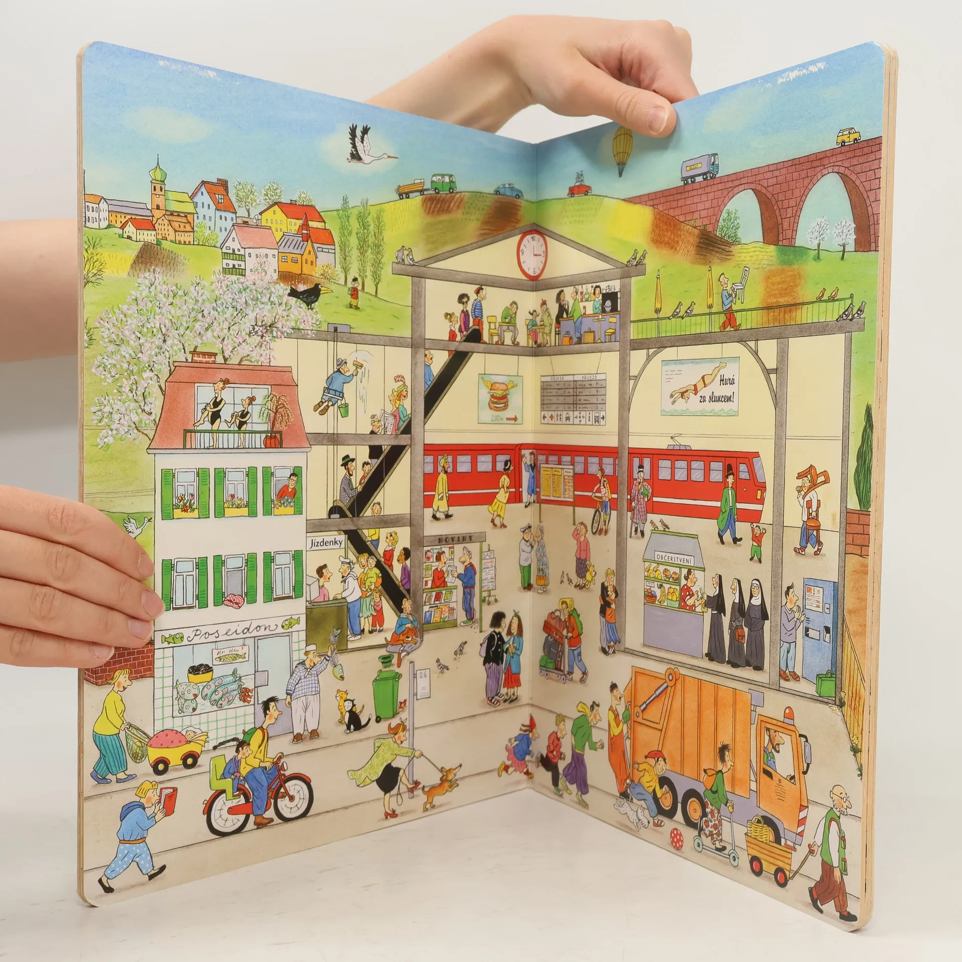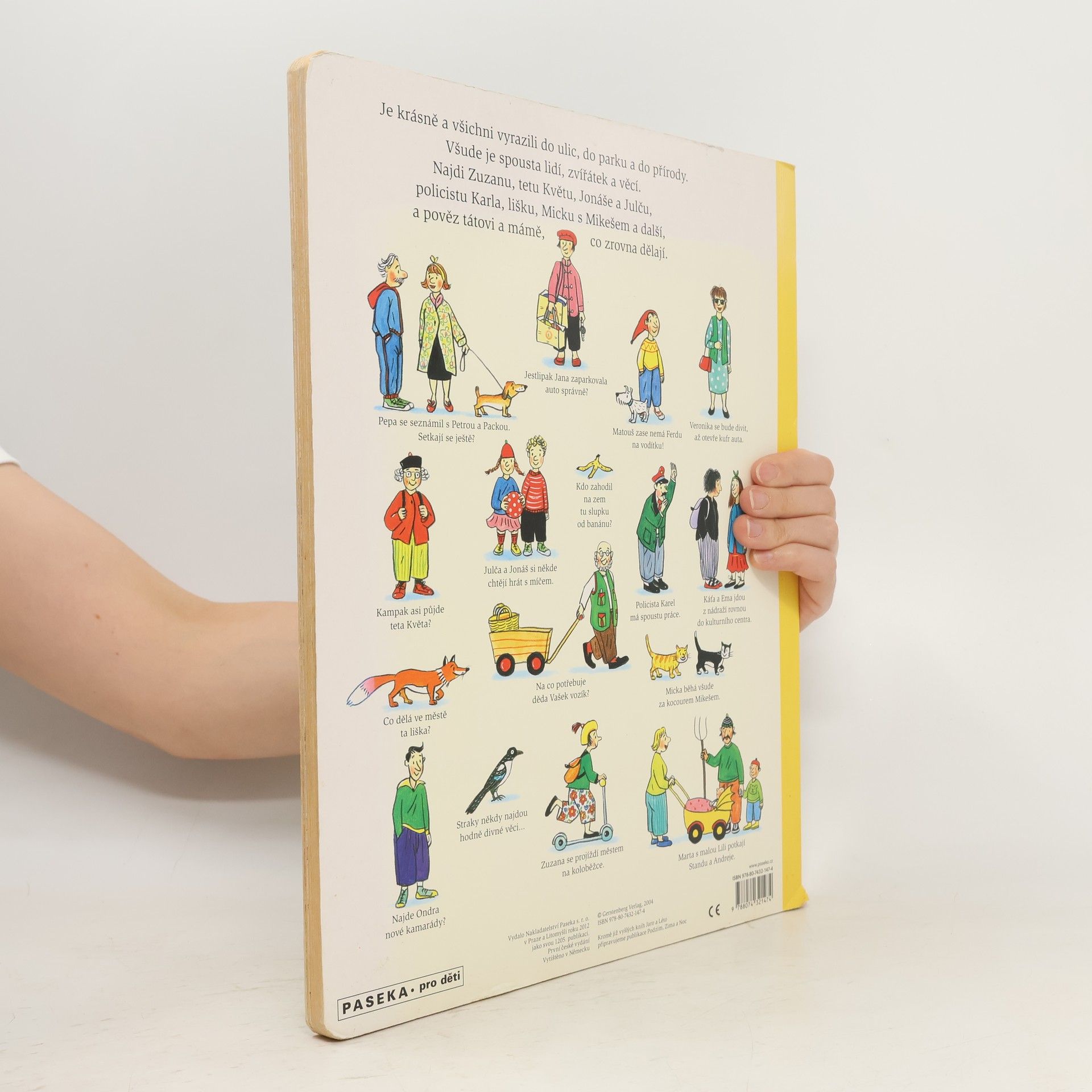 Jednoduchou řečí obrázků vypráví renomovaná autorka a ilustrátorka dětských knih Rotraut Susanne Bernerová příběhy všedního dne, obratně a vtipně splétá dohromady drobné epizody. "Malý čtenář" může v knížce hledat postavičky a zvířátka a sledovat co dělají od první do poslední stránky. Kudy chodí teta Květa, kde si kluk Ondra bude hrát s kamarády nebo co dělá ve městě liška.