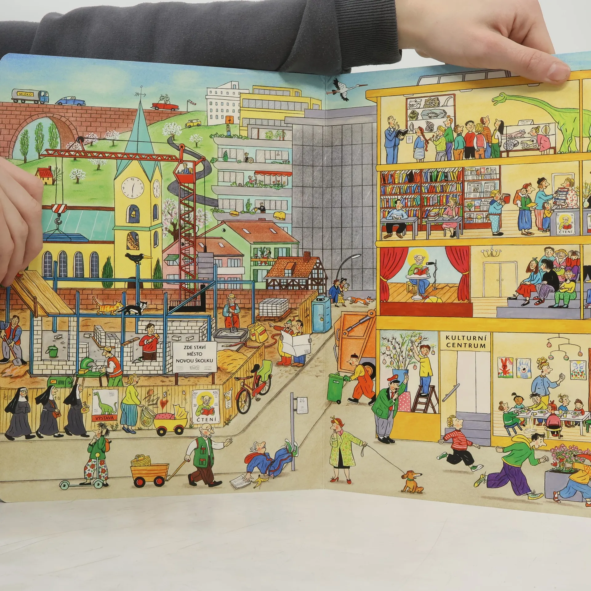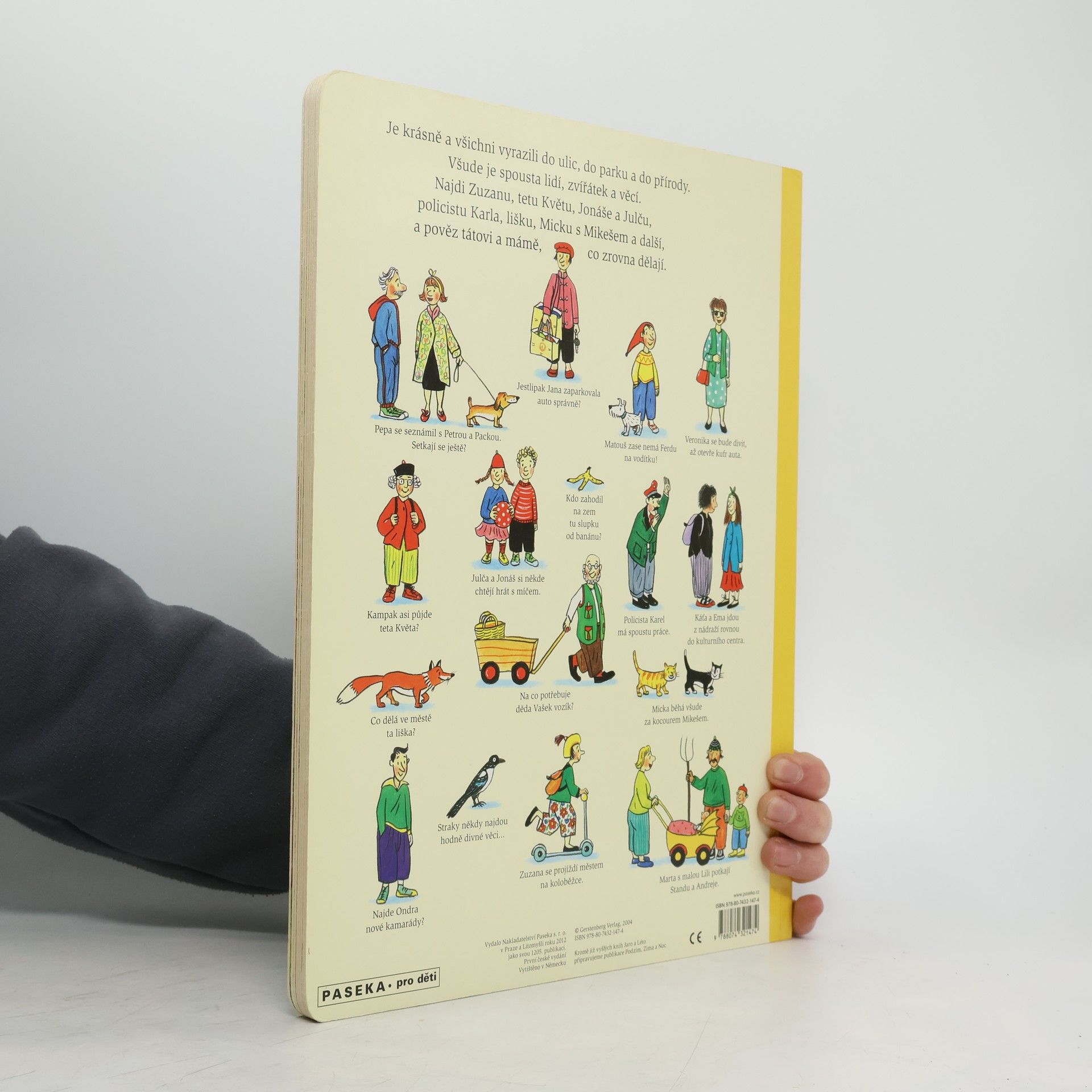 Jednoduchou řečí obrázků vypráví renomovaná autorka a ilustrátorka dětských knih Rotraut Susanne Bernerová příběhy všedního dne, obratně a vtipně splétá dohromady drobné epizody. "Malý čtenář" může v knížce hledat postavičky a zvířátka a sledovat co dělají od první do poslední stránky. Kudy chodí teta Květa, kde si kluk Ondra bude hrát s kamarády nebo co dělá ve městě liška.
