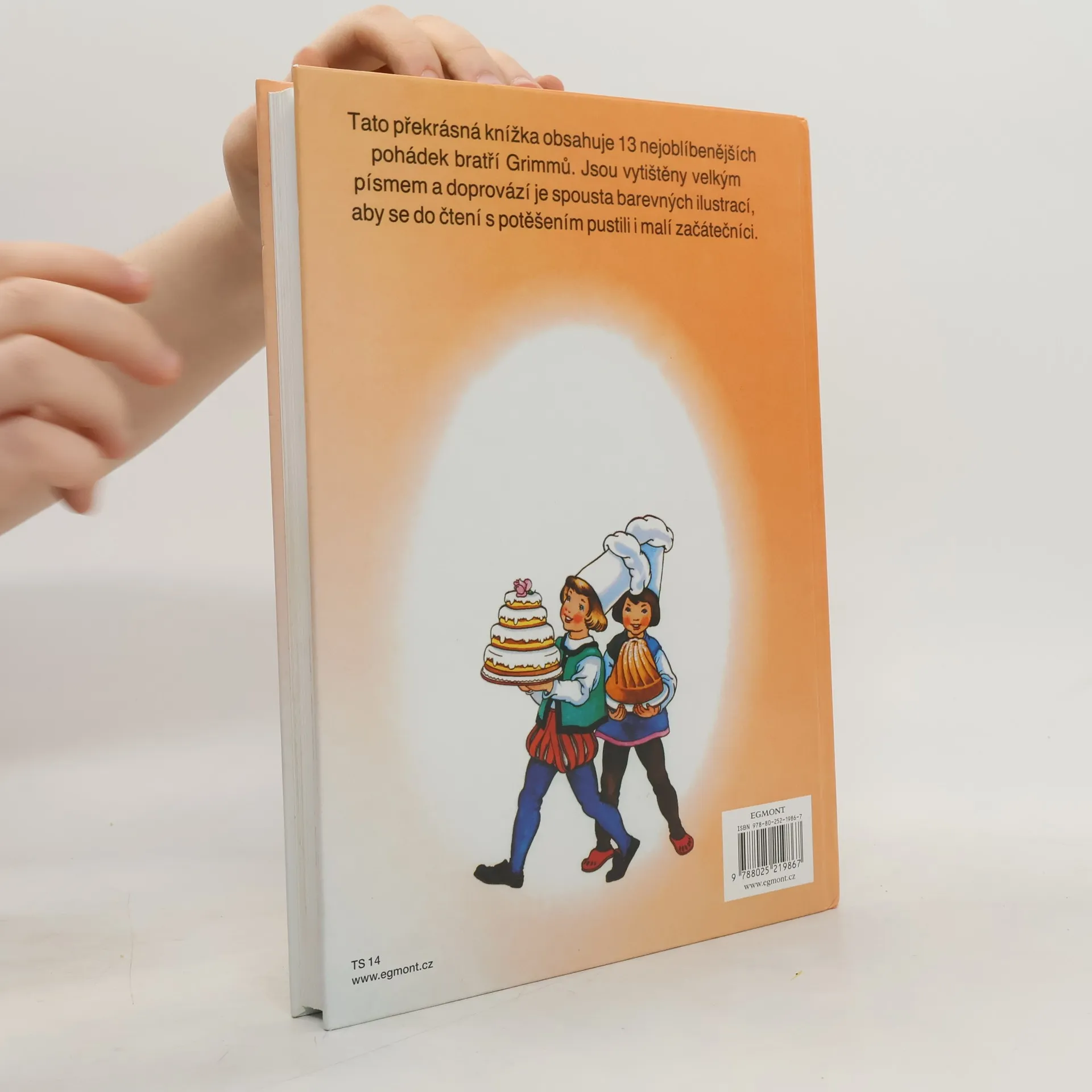 Sbírka třinácti nejoblíbenějších pohádek autorské dvojice bratrů Grimmových. Původní verze jsou citlivě převyprávěny, vytištěny velkým, dobře čitelným písmem a doprovázeny spoustou barevných ilustrací, aby se do čtení s chutí pustili i malí začátečníci.