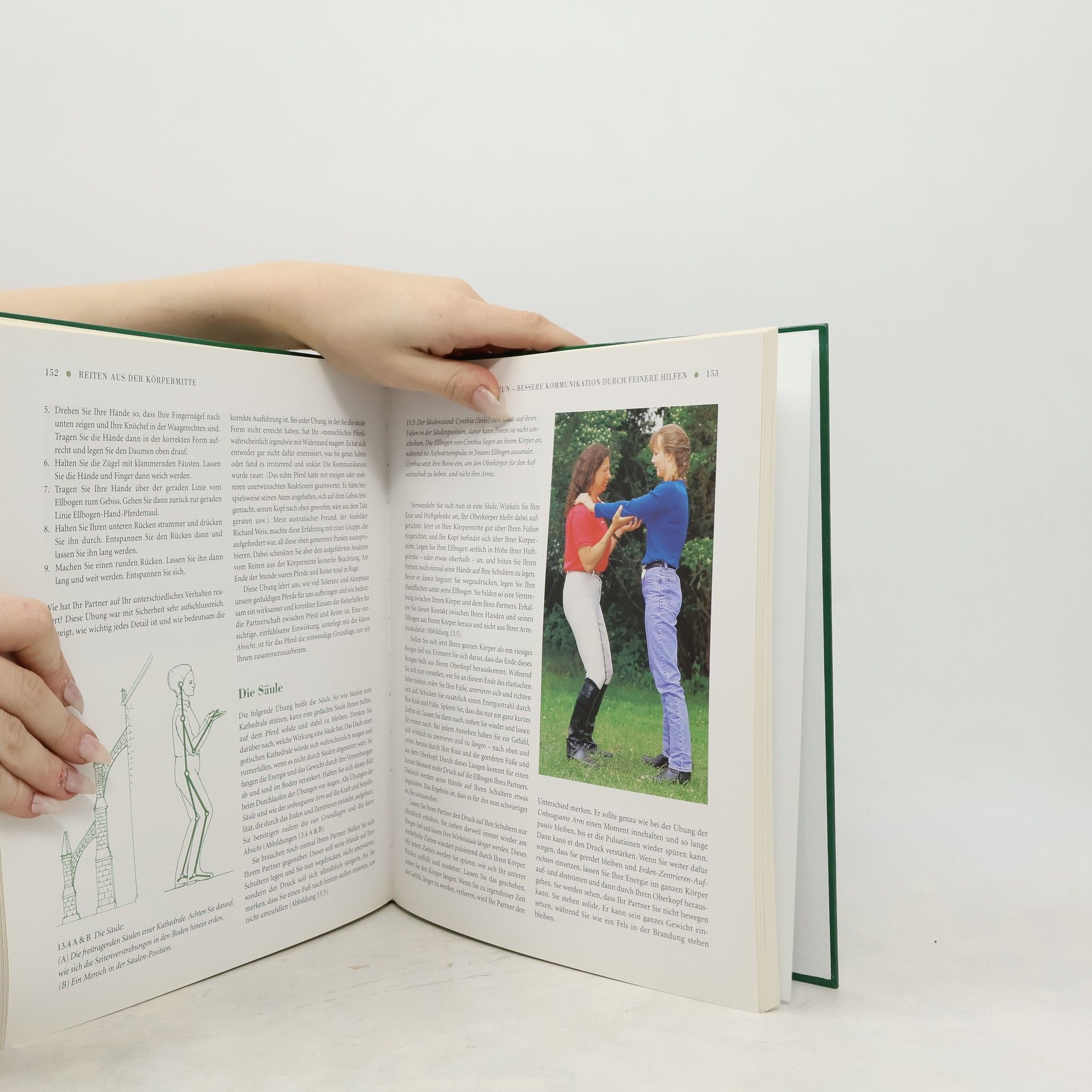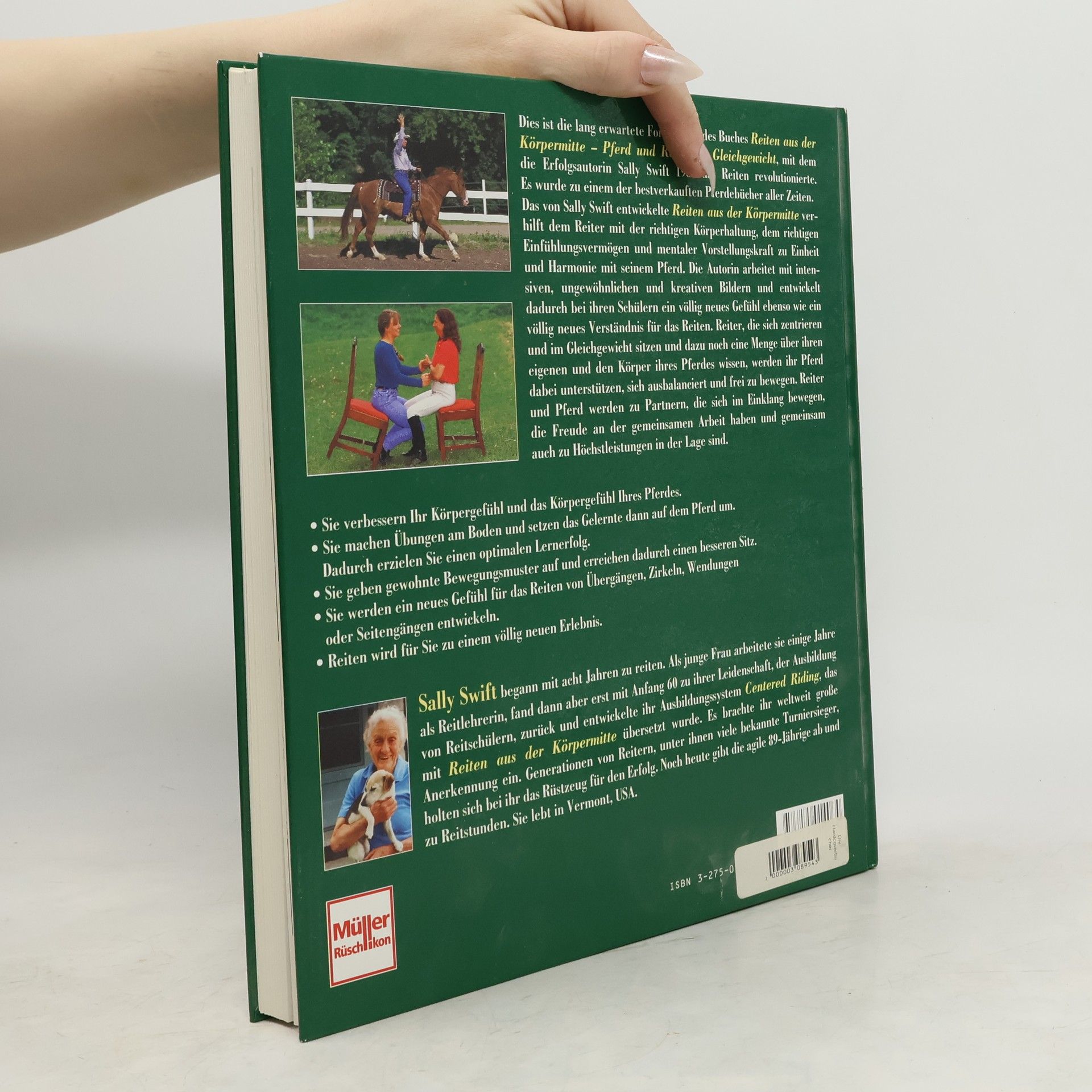 Dies ist die langerwartete Fortsetzung von Reiten aus der Körpermitte, Sally Swifts erstem Buch, das 1985 das Reiten revolutionierte. Es wurde zu einem der bestverkauften Pferdebücher aller Zeiten, und die deutsche Ausgabe hat sich bereits über 50.000 mal verkauft. Das von Sally Swift entwickelte „Centered Riding“ verhilft Pferd und Reiter mit der richtigen Körperhaltung, Einfühlungsvermögen und mentaler Vorstellungskraft zu Einheit und Harmonie. Im Zentrum des ersten - in sich geschlossenen - Buches stehen die imaginären Bilder ihrer Ausbildungsmethode. Warum nun ein zweites Buch? Der neue Band ist ein erweitertes Arbeitsbuch, das die ganzheitlichen Bewegungslehren des ersten Bandes, z. B. der Alexandertechnik, erklärt: Es erläutert auf analytische Weise die neuen Erkenntnisse, die die Autorin in den letzten 20 Jahren ihrer Arbeit gewonnen hat. Es erweitert das Verständnis für „Centered Riding“. Es erleichtert wesentlich die Umsetzung des Reitens aus der Körpermitte. Es ist ein eigenständiges, ebenfalls in sich geschlossenes Werk, das auf den ersten Band aufbaut und dazu beiträgt, die Ausbildungsmethode „Centered Riding“ in ergänzender Weise zu begreifen. Sally Swifts neue Konzepte werden mit 167 Farbbildern und 175 Zeichnungen zusätzlich visualisiert.