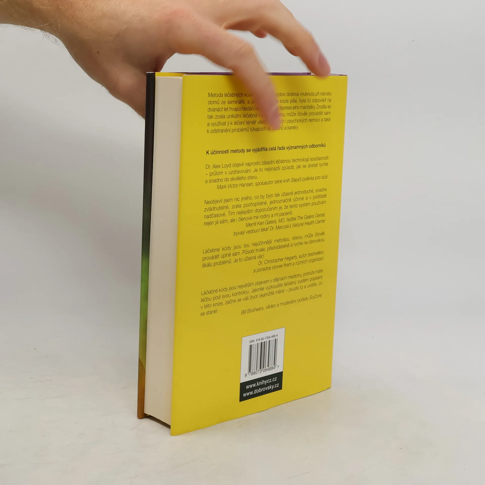 Metoda léčebných kódů byla Alexi Loydovi doslova vnuknuta při návratu domů ze semináře, a jak sám v úvodu knihy píše, byla to odpověď na dvanáct let trvající hledání léku na těžké deprese jeho manželky. Zrodila se tak zcela unikátní léčebná metoda, kterou může člověk provádět sám a využívat ji k léčení téměř všech fyzických i psychických nemocí a také k odstranění problémů týkající se vztahů a kariéry. Alex Loyd popisuje tuto metodu velmi svěžím a snadno pochopitelným způsobem a její účinnost dokládá výpověďmi lidí, jimž zcela zásadně změnila život. Systém léčebných kódů vychází z kvantové fyziky a jeho základem je odstranění problému přímo v jeho zdroji, nikoli pouhých symptomů. Je to metoda snadná a její základní cvičení trvá pouhých šest minut, ale svědectví mnoha klientů Dr. Loyda jasně dokazují, že i za tak krátkou chvíli se člověk může zbavit stresu vyvolaného destruktivními buněčnými vzpomínkami, jež způsobují vznik různých nemocí a dalších problémů. Stačí otevřít knihu a pustit se do toho!