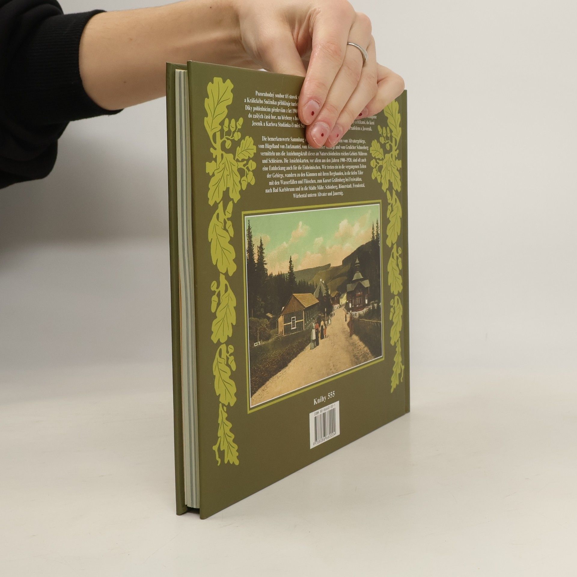 Další kniha populární edice mapuje turisticky oblíbenou a přírodovědně bohatou oblast Moravy. Nejvyšší moravské pohoří bylo vždy v zájmu vydavatelů pohlednic, a zvláště jejich tvorba z let 1900–1920 tvoří jádro knihy. Díky pohlednicím, které jsou v mnohém objevné i pro místní obyvatele, vstoupíme do zašlých časů hor, na hlavní vrcholy s rozhlednami a horskými boudami, do údolí s vodopády a říčkami, do prostředí lázní Jeseník či Karlovy Studánky ad. V souboru 300 nejzajímavějších pohlednic, vybraných z osmi sbírek, nechybí podhorská města Šumperk, Vrbno pod Pradědem, ani Zlaté hory, Rychlebské hory a Králický Sněžník.