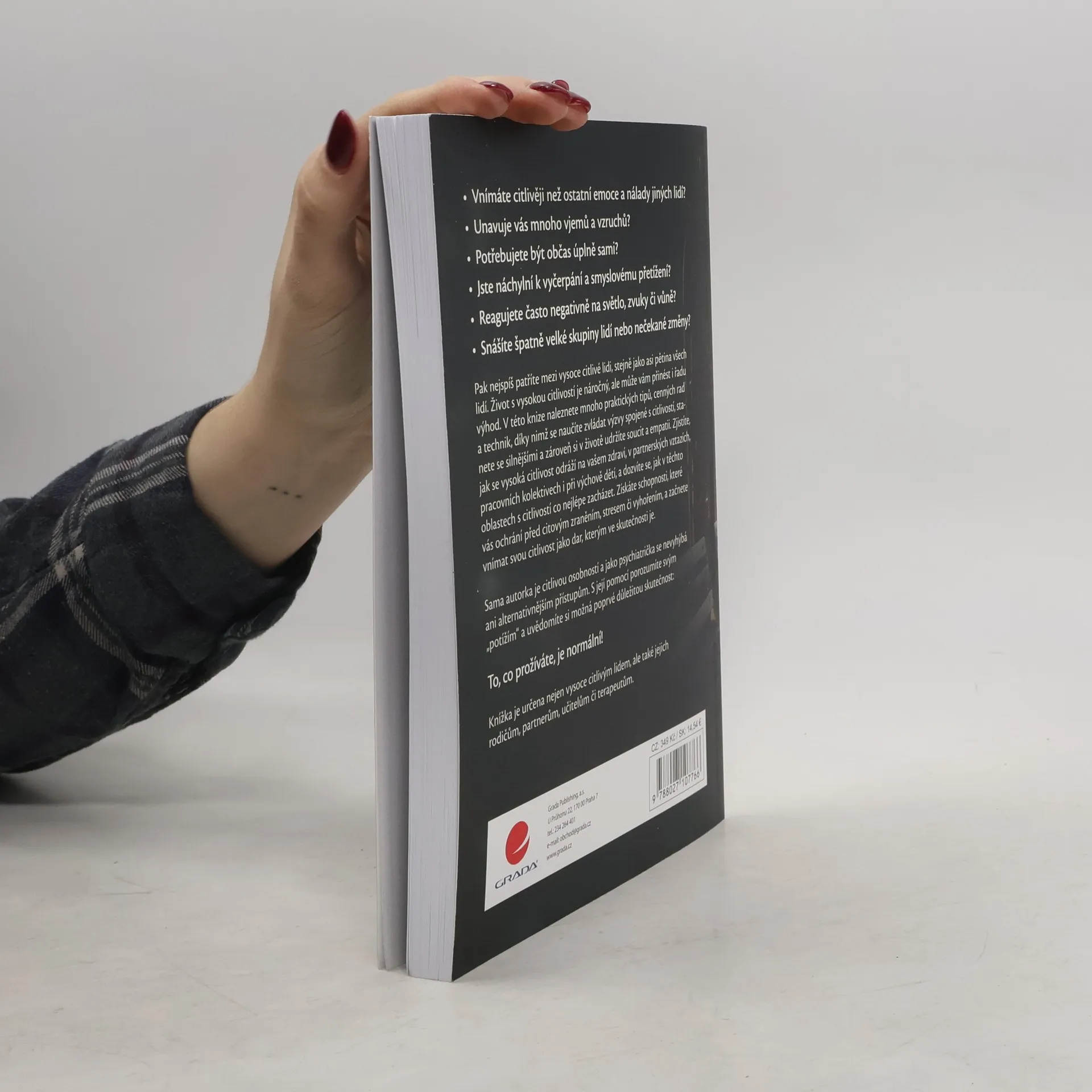 Vnímáte citlivěji než ostatní emoce a nálady jiných lidí? Unavuje vás mnoho vjemů a vzruchů? Potřebujete být občas úplně sami? Jste náchylní k vyčerpání a smyslovému přetížení? Reagujete často negativně na světlo, zvuky či vůně? Snášíte špatně velké skupiny lidí nebo nečekané změny? Pak nejspíš patříte mezi vysoce citlivé lidi, stejně jako asi pětina všech lidí. Život s vysokou citlivostí je náročný, ale může vám přinést i řadu výhod. V této knize naleznete mnoho praktických tipů, cenných rad a technik, díky nimž se naučíte zvládat výzvy spojené s citlivostí, stanete se silnějšími a zároveň si v životě udržíte soucit a empatii. Zjistíte, jak se vysoká citlivost odráží na vašem zdraví, v partnerských vztazích, pracovních kolektivech i při výchově dětí, a dozvíte se, jak v těchto oblastech s citlivostí co nejlépe zacházet. Získáte schopnosti, které vás ochrání před citovým zraněním, stresem či vyhořením, a začnete vnímat svou citlivost jako dar, kterým ve skutečnosti je. Sama autorka je citlivou osobností a jako psychiatrička se nevyhýbá ani alternativnějším přístupům. S její pomocí porozumíte svým „potížím“ a uvědomíte si možná poprvé důležitou skutečnost: To, co prožíváte, je normální! Knížka je určena nejen vysoce citlivým lidem, ale také jejich rodičům, partnerům, učitelům či terapeutům.