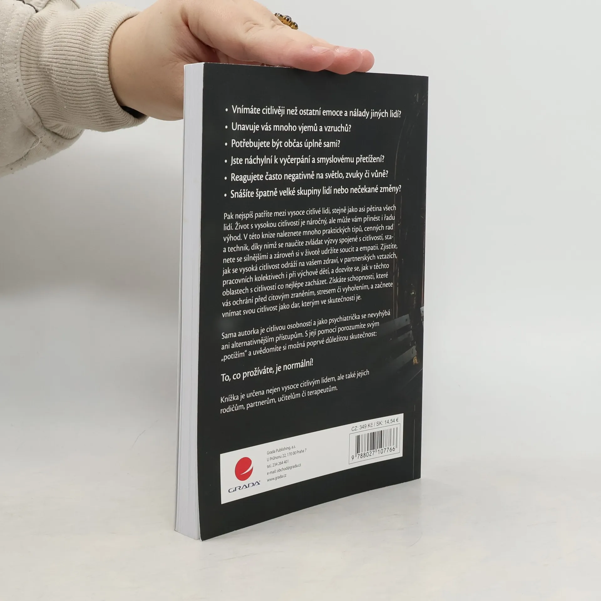 Vnímáte citlivěji než ostatní emoce a nálady jiných lidí? Unavuje vás mnoho vjemů a vzruchů? Potřebujete být občas úplně sami? Jste náchylní k vyčerpání a smyslovému přetížení? Reagujete často negativně na světlo, zvuky či vůně? Snášíte špatně velké skupiny lidí nebo nečekané změny? Pak nejspíš patříte mezi vysoce citlivé lidi, stejně jako asi pětina všech lidí. Život s vysokou citlivostí je náročný, ale může vám přinést i řadu výhod. V této knize naleznete mnoho praktických tipů, cenných rad a technik, díky nimž se naučíte zvládat výzvy spojené s citlivostí, stanete se silnějšími a zároveň si v životě udržíte soucit a empatii. Zjistíte, jak se vysoká citlivost odráží na vašem zdraví, v partnerských vztazích, pracovních kolektivech i při výchově dětí, a dozvíte se, jak v těchto oblastech s citlivostí co nejlépe zacházet. Získáte schopnosti, které vás ochrání před citovým zraněním, stresem či vyhořením, a začnete vnímat svou citlivost jako dar, kterým ve skutečnosti je. Sama autorka je citlivou osobností a jako psychiatrička se nevyhýbá ani alternativnějším přístupům. S její pomocí porozumíte svým „potížím“ a uvědomíte si možná poprvé důležitou skutečnost: To, co prožíváte, je normální! Knížka je určena nejen vysoce citlivým lidem, ale také jejich rodičům, partnerům, učitelům či terapeutům.