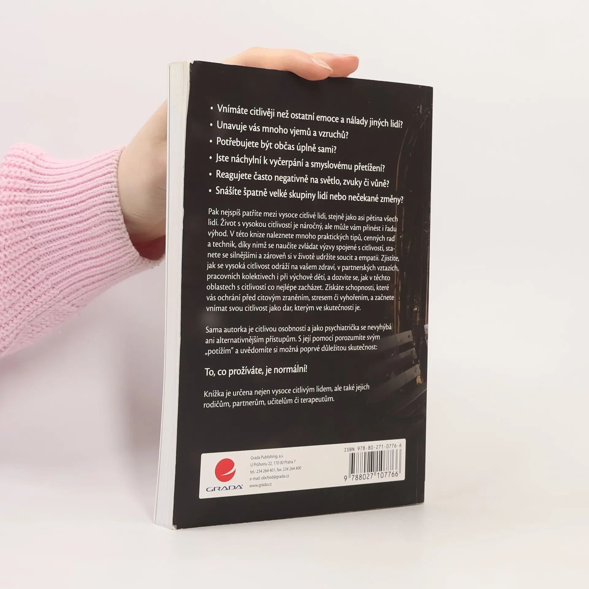 Vnímáte citlivěji než ostatní emoce a nálady jiných lidí? Unavuje vás mnoho vjemů a vzruchů? Potřebujete být občas úplně sami? Jste náchylní k vyčerpání a smyslovému přetížení? Reagujete často negativně na světlo, zvuky či vůně? Snášíte špatně velké skupiny lidí nebo nečekané změny? Pak nejspíš patříte mezi vysoce citlivé lidi, stejně jako asi pětina všech lidí. Život s vysokou citlivostí je náročný, ale může vám přinést i řadu výhod. V této knize naleznete mnoho praktických tipů, cenných rad a technik, díky nimž se naučíte zvládat výzvy spojené s citlivostí, stanete se silnějšími a zároveň si v životě udržíte soucit a empatii. Zjistíte, jak se vysoká citlivost odráží na vašem zdraví, v partnerských vztazích, pracovních kolektivech i při výchově dětí, a dozvíte se, jak v těchto oblastech s citlivostí co nejlépe zacházet. Získáte schopnosti, které vás ochrání před citovým zraněním, stresem či vyhořením, a začnete vnímat svou citlivost jako dar, kterým ve skutečnosti je. Sama autorka je citlivou osobností a jako psychiatrička se nevyhýbá ani alternativnějším přístupům. S její pomocí porozumíte svým „potížím“ a uvědomíte si možná poprvé důležitou skutečnost: To, co prožíváte, je normální! Knížka je určena nejen vysoce citlivým lidem, ale také jejich rodičům, partnerům, učitelům či terapeutům.