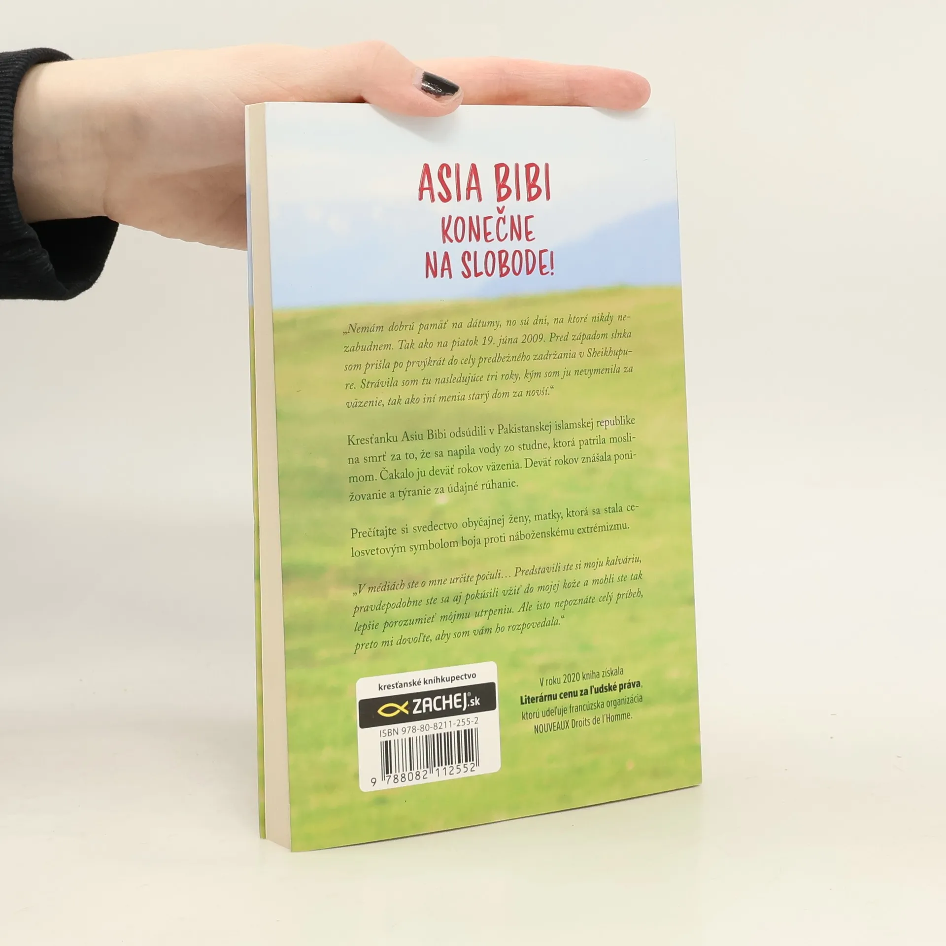 „Nemám dobrú pamäť na dátumy, no sú dni, na ktoré nikdy nezabudnem. Tak ako na piatok 19. júna 2009. Pred západom slnka som prišla po prvýkrát do cely predbežného zadržania v Sheikhupure. Strávila som tu nasledujúce tri roky, kým som ju nevymenila za väzenie, tak ako iní menia starý dom za novší.“ Kresťanku Asiu Bibi odsúdili v Pakistanskej islamskej republike na smrť za to, že sa napila vody zo studne, ktorá patrila moslimom. Čakalo ju deväť rokov väzenia. Deväť rokov znášala ponižovanie a týranie za údajné rúhanie. Prečítajte si svedectvo obyčajnej ženy, matky, ktorá sa stala celosvetovým symbolom boja proti náboženskému extrémizmu. „V médiách ste o mne určite počuli… Predstavili ste si moju kalváriu, pravdepodobne ste sa aj pokúsili vžiť do mojej kože a mohli ste tak lepšie porozumieť utrpeniu. Ale isto nepoznáte celý príbeh, preto mi dovoľte, aby som vám ho rozpovedala.“ V roku 2020 kniha získala Literárnu cenu za ľudské práva, ktorú udeľuje francúzska organizácia NOUVEAUX Droits de l ́Homme.