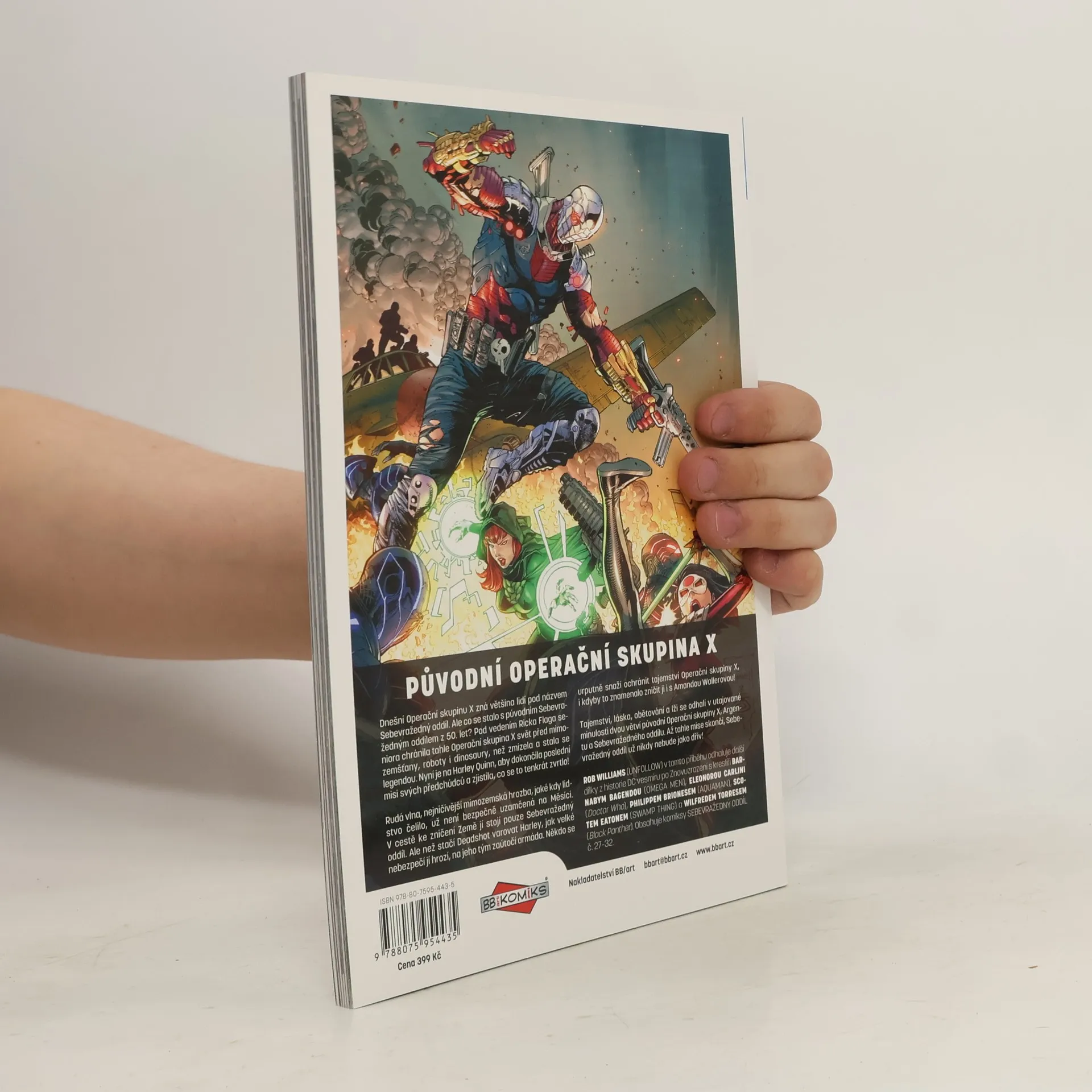Dnešní Operační skupinu X zná většina lidí pod názvem Sebevražedný oddíl. Ale co se stalo s původním Sebevražedným oddílem z 50. let? Pod vedením Ricka Flaga seniora chránila tahle Operační skupina X svět před mimozemšťany, roboty i dinosaury, než zmizela a stala se legendou. Nyní je na Harley Quinn, aby dokončila poslední misi svých předchůdců a zjistila, co se to tenkrát zvrtlo! Rudá vlna, nejničivější mimozemská hrozba, jaké kdy lidstvo čelilo, už není bezpečně uzamčená na Měsíci. V cestě ke zničení Země jí stojí pouze Sebevražedný oddíl. Ale než stačí Deadshot varovat Harley, jak velké nebezpečí jí hrozí, na jeho tým zaútočí armáda. Někdo se urputně snaží ochránit tajemství Operační skupiny X, i kdyby to znamenalo zničit ji i s Amandou Wallerovou! ROB WILLIAMS (UNFOLLOW) v tomto velkolepém příběhu odhaluje další dílky z historie DC vesmíru po Znovuzrození s kreslíři BARNABYM BAGENDOU (OMEGA MEN), ELEONOROU CARLINI (Doctor Who), PHILIPPEM BRIONESEM (AQUAMAN), SCOTEM EATONEM (SWAMP THING) a WILFREDEM TORRESEM (Black Panther). Obsahuje komiksy SEBEVRAŽEDNÝ ODDÍL č. 27–32.