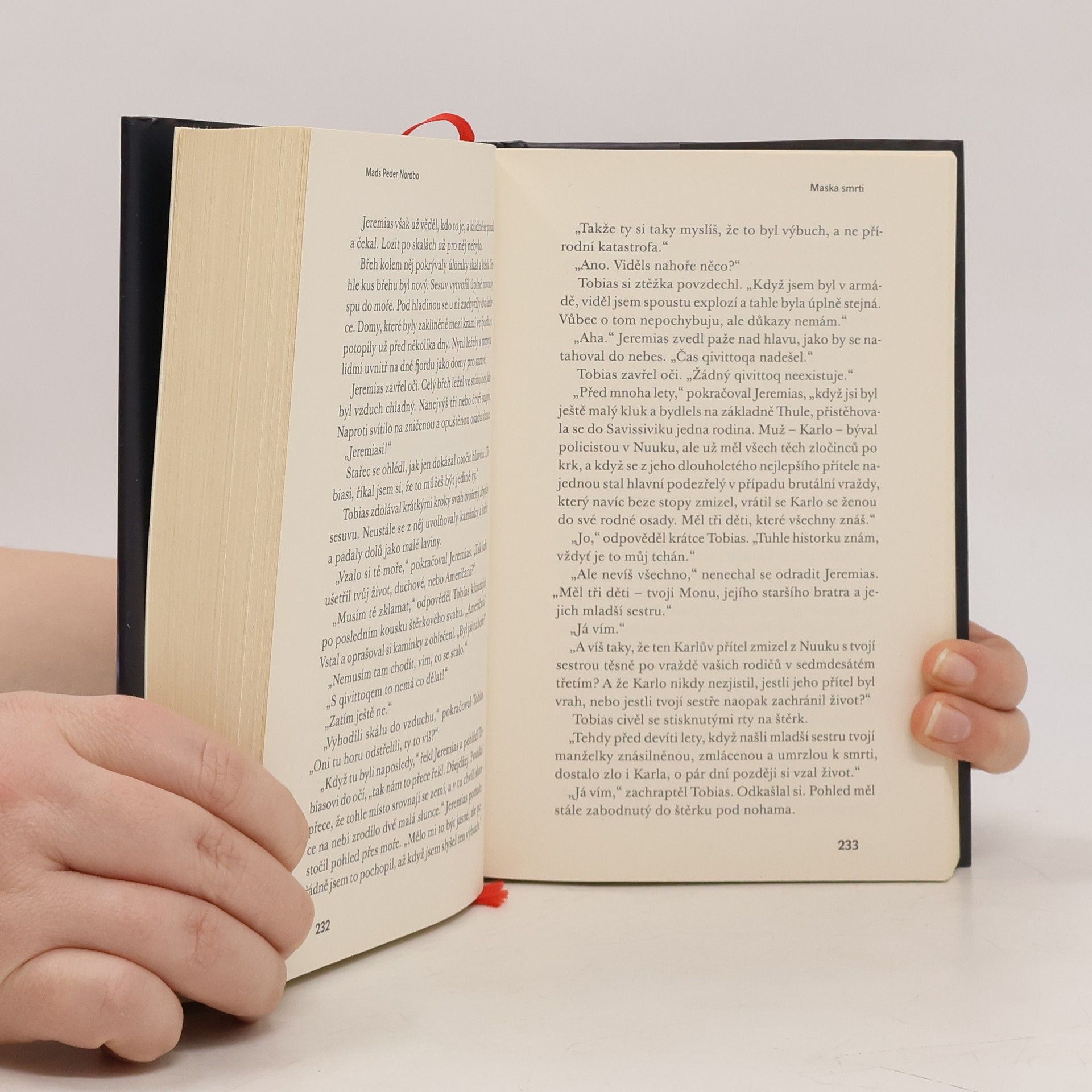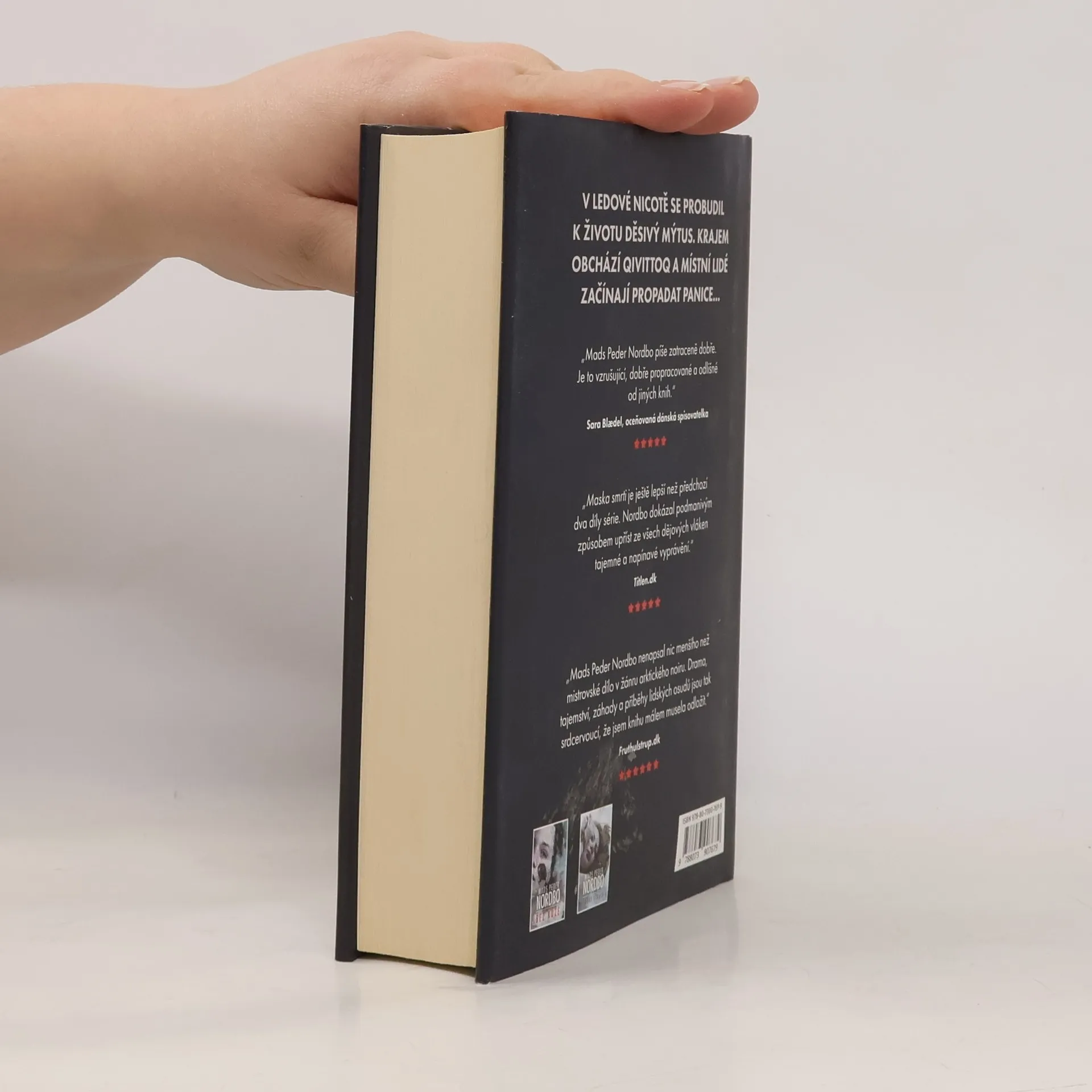 Maska smrti je třetí samostatný díl mrazivé bestsellerové trilogie dánského autora Madse Pedera Nordboa. Vracíme se do mrazivého Grónska jen pár dní po událostech předchozího dílu. Novinář Matthew Cave vzpomíná na poslední setkání s potetovanou Inuitkou Tupaarnaq a snaží se s ní spojit. Na kamenitém břehu moře leží raněná velryba a ochránci přírody se bouří. A mezi ruinami dávné staroseverské osady Sandnæs právě umírá člověk shozený na dno studny... V Grónsku existuje mýtus. Mýtus o qivittoqovi. O lidech, které kdysi vyhnali z jejich rodné osady a oni teď bloudí po pustých pláních. Tato stvoření Gróňanům nahánějí největší strach a vypadá to, že jeden qivittoq se právě teď potuluje osadami a připravuje lidi o život. V závěrečném dílu trilogie není nic takové, jaké se to zdá. Mizí lidé, objevují se staré křivdy i nové důkazy a nikdo neví, komu může věřit. Zjistí se, jak to všechno bylo s Tupaarnaq, kolik špíny se skrývá za operací Tupilak a kým nebo čím je onen děsivý qivittoq, dostatečně včas na to, aby se zachránil alespoň někdo?