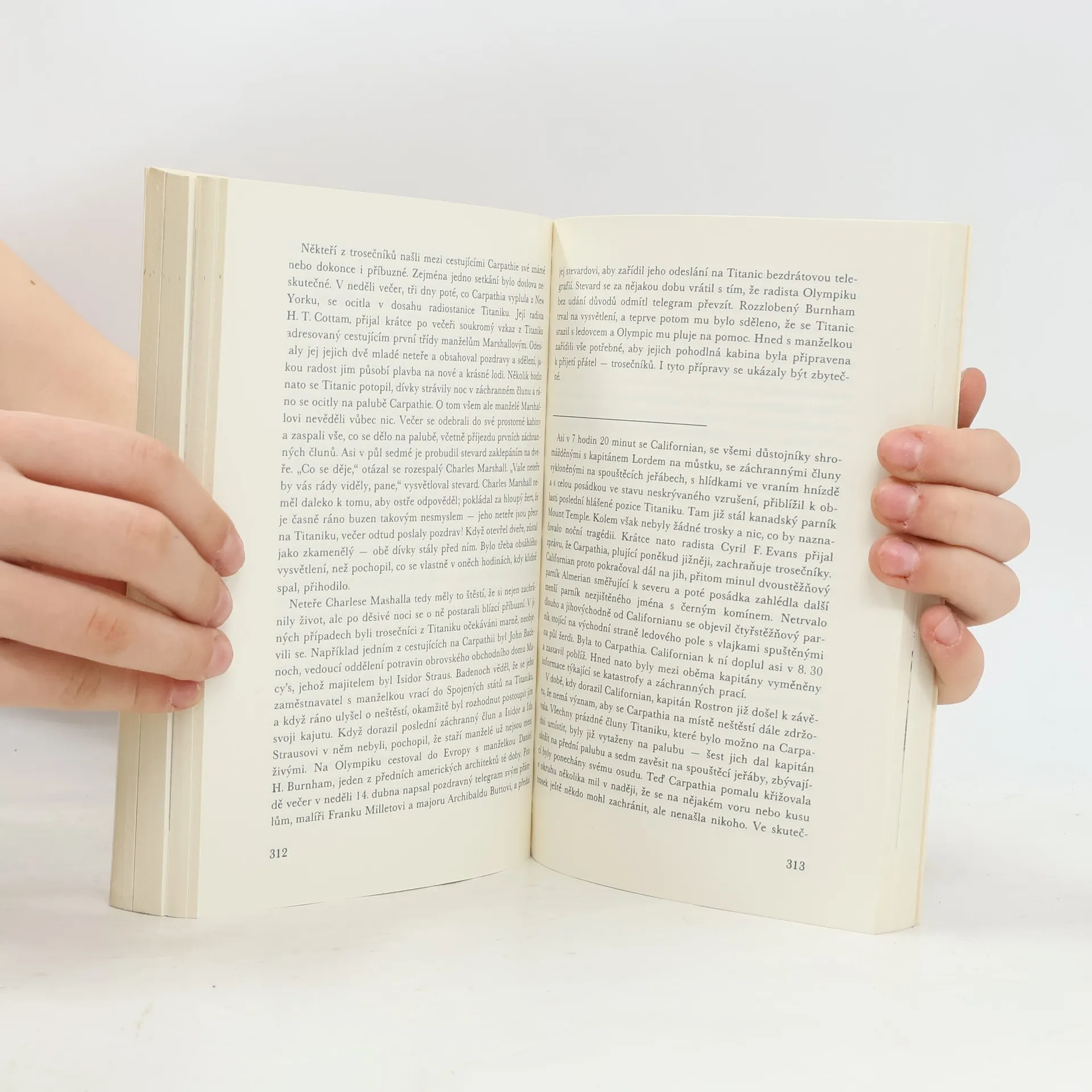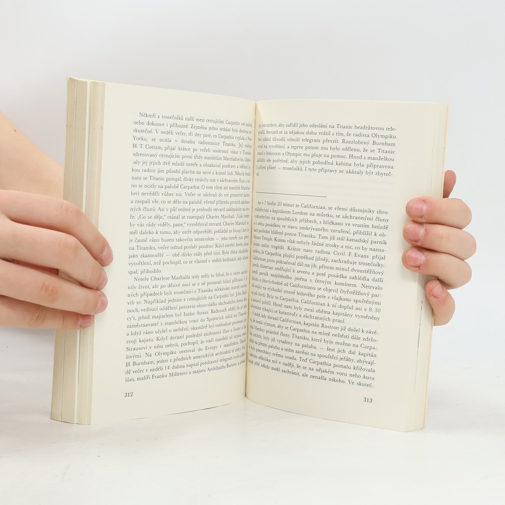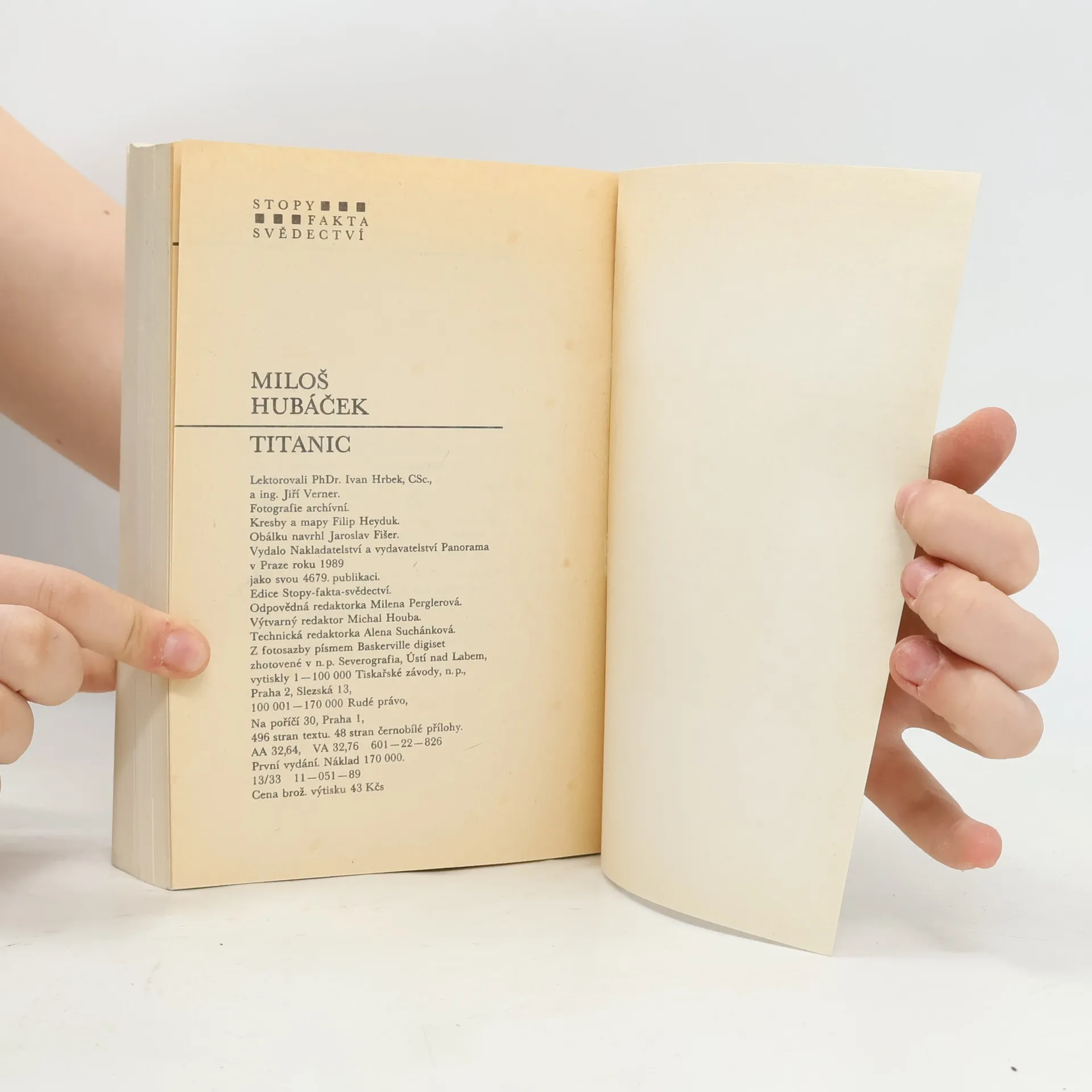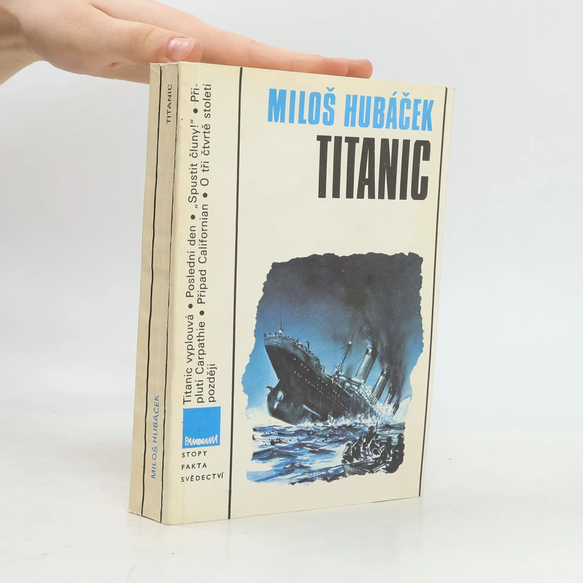 Titanic byl největší lodí světa své doby, měl to být triumf lidského génia a průmyslového věku. Byl též výrazem soupeření transoceánských společností, které se předháněly ve svých nabídkách. Loď dlouhá téměř 260 metrů měla pojmout až tři tisíce pasažerů, bylo to něco dosudnevídaného. 10. dubna 1912 vyplul ze Southamptonu na pravidelné lince do New Yorku, aby se představil v plné kráse všem lidem i mořským vlnám. Nikdo s nadšených a řádně hrdých pasažérů a členů posádky netušil, že je to také jeho poslední plavba. Co se odehrávalo na palubě, v podpalubích, na kapitánském můstku během oněch osudových chvil? 1. vydání. Edice: Stopy, fakta, svědectví Kresby a mp. Filip Heyduk. Obálka Jaroslav Fišer.