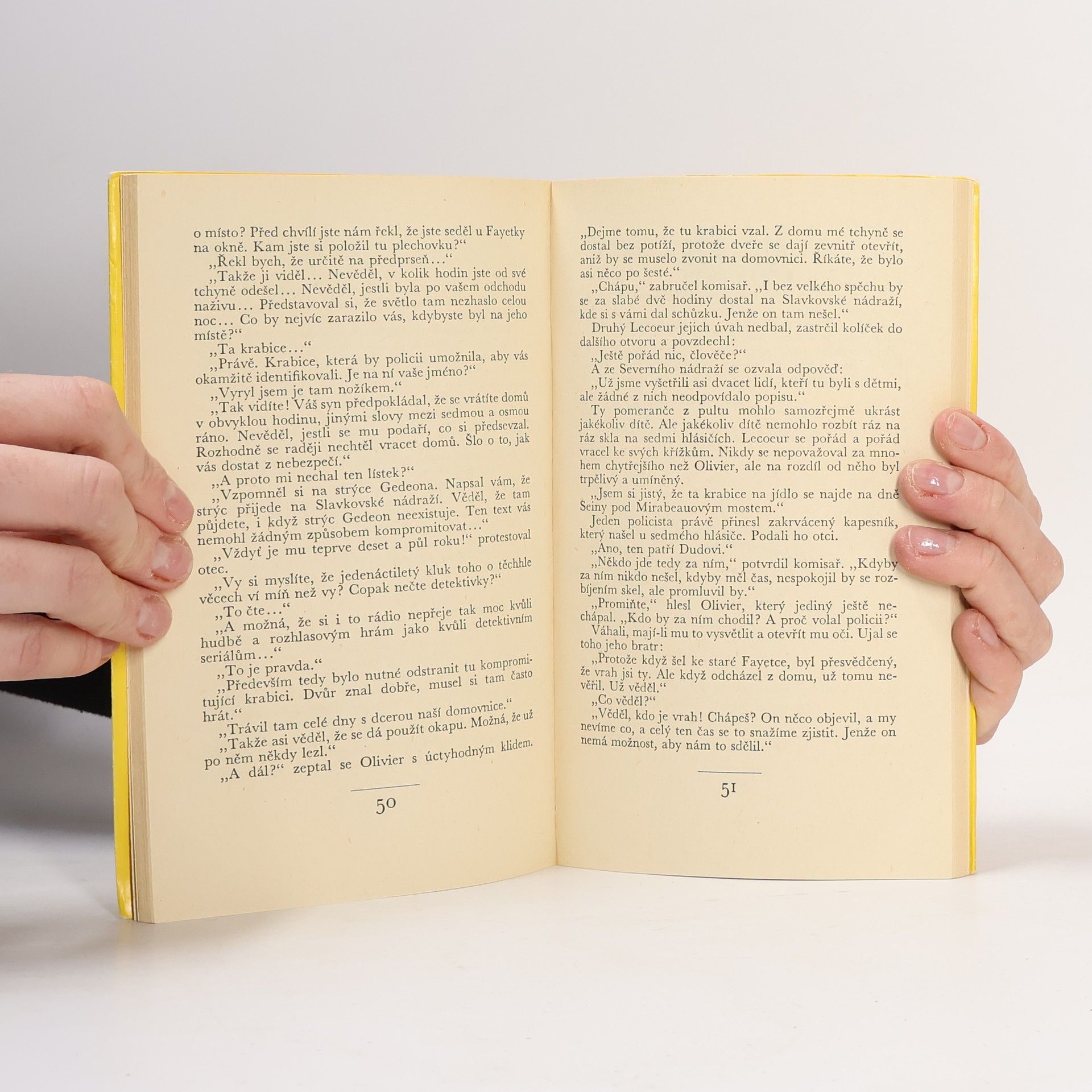 Dvě kriminální povídky známého francouzského spisovatele. Hlavními hrdiny jsou malí chlapci, kteří se stávají náhodnými svědky zločinů a ocitají se v nebezpečí života. V obou povídkách však spíše než na okolnosti zločinů a jejich pachatele, soustřeďuje autor pozornost na psychikudětského myšlení a jednání, vžívá se do tohoto světa a v čisté krystalické podobě vytváří živou atmosféru prostředí i postav.
