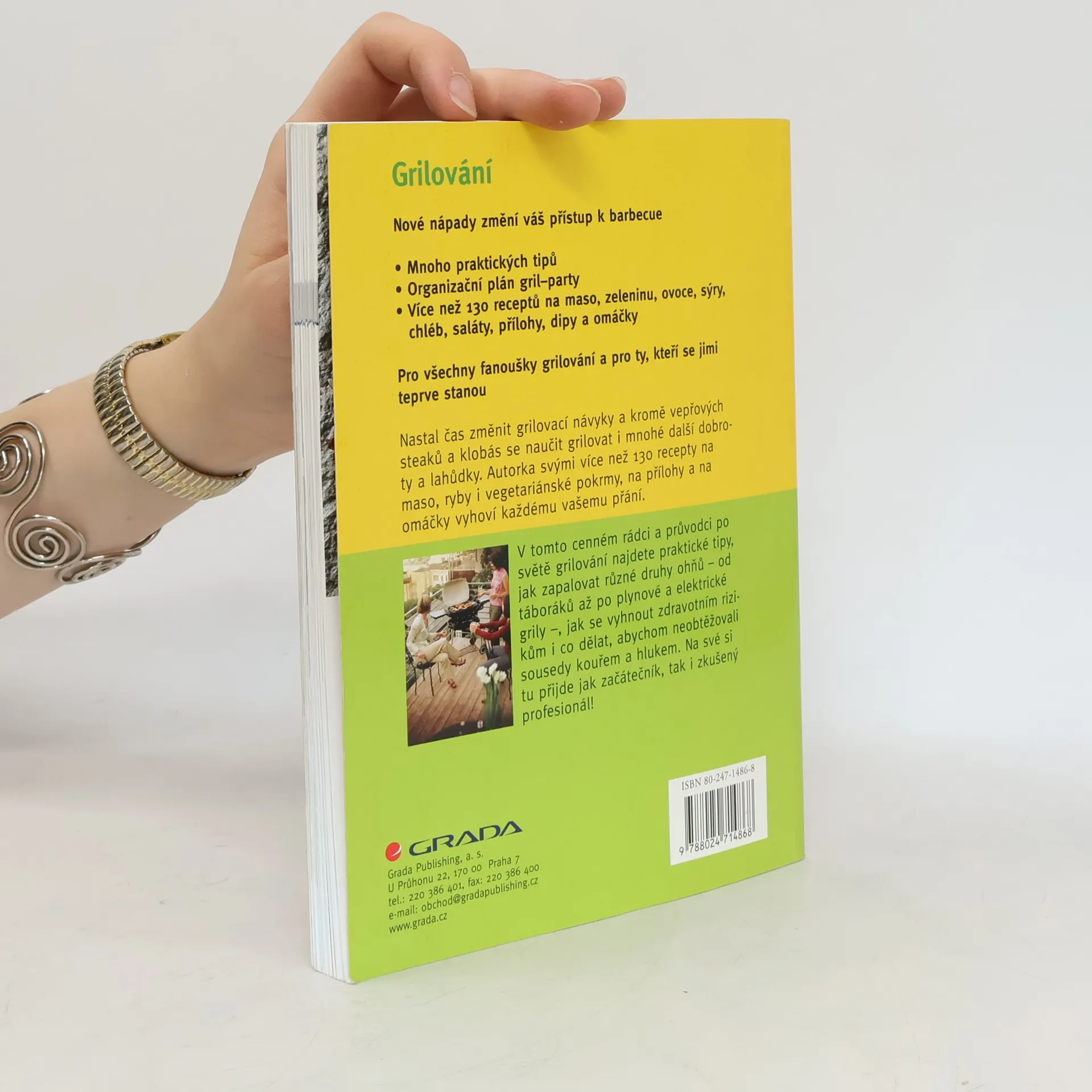 Nové nápady pro váš pestrý gril a pro pořádání barbecue.o mnoho tipů z praxeo 10 zlatých pravidel pro zdařilou oslavuo seznam pro správnou organizaci gril partyo více než 130 receptů pro přípravu masa, ryb, zeleniny, ovoce, sýrů, chleba, salátů, příloh, dipů a omáčekVše co potřebuje znát milovník grilování.Oblíbené grilování se začíná měnit - už negrilujeme jen vepřové maso nebo uzeniny, ale zkoušíme takto připravit i další lahůdky. V této knize naleznete více než 130 v praxi ověřených receptů na přípravu masa, ryb, vegetariánských jídel, příloh i omáček. Seznámíme vás také s druhy grilů - plynových, elektrických i klasických, na dřevěné uhlí, a způsoby jejich používání. Podle 10 zlatých pravidel snadno zvládnete přípravu grilování pro návštěvu. Kniha je celobarevná, s mnoha názornými fotografiemi.