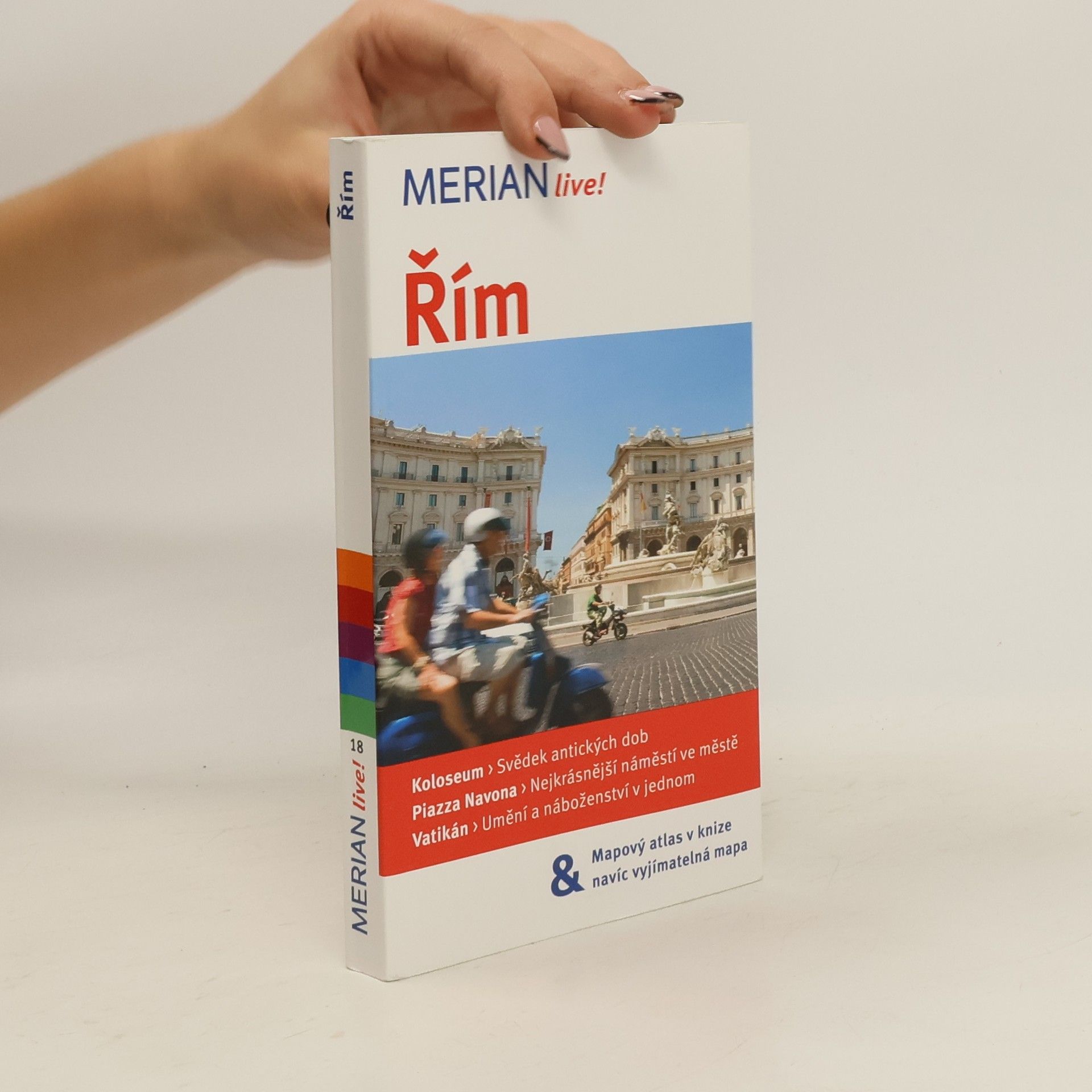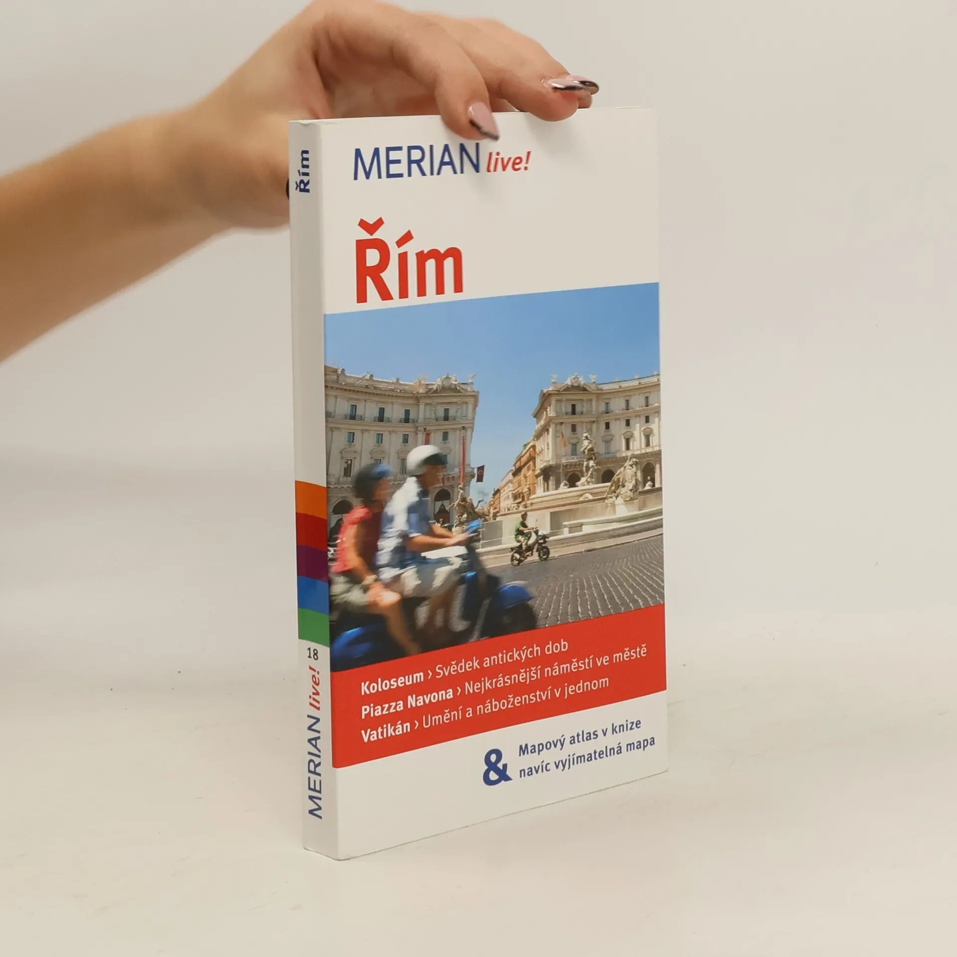 Průvodce seznamuje ve stručnosti s nejvýznamnějšími kulturními a uměleckými památkami italské metropole a Vatikánu. Česká mutace vybraných svazků německé ediční řady Merian přibližuje čtenářům ve stručnosti místa, která by při své návštěvě hlavního města Itálie rozhodně neměli vynechat. Kromě popisu architektonických a uměleckých pamětihodností tvoří podstatnou součást příručky informace o možnostech ubytování, stravování, nákupů, kulturního vyžití i o akcích pro děti. Množství barevných fotografií, doplňkové plánky a mapky, vyjímatelný plán města v měřítku 1:15 000.