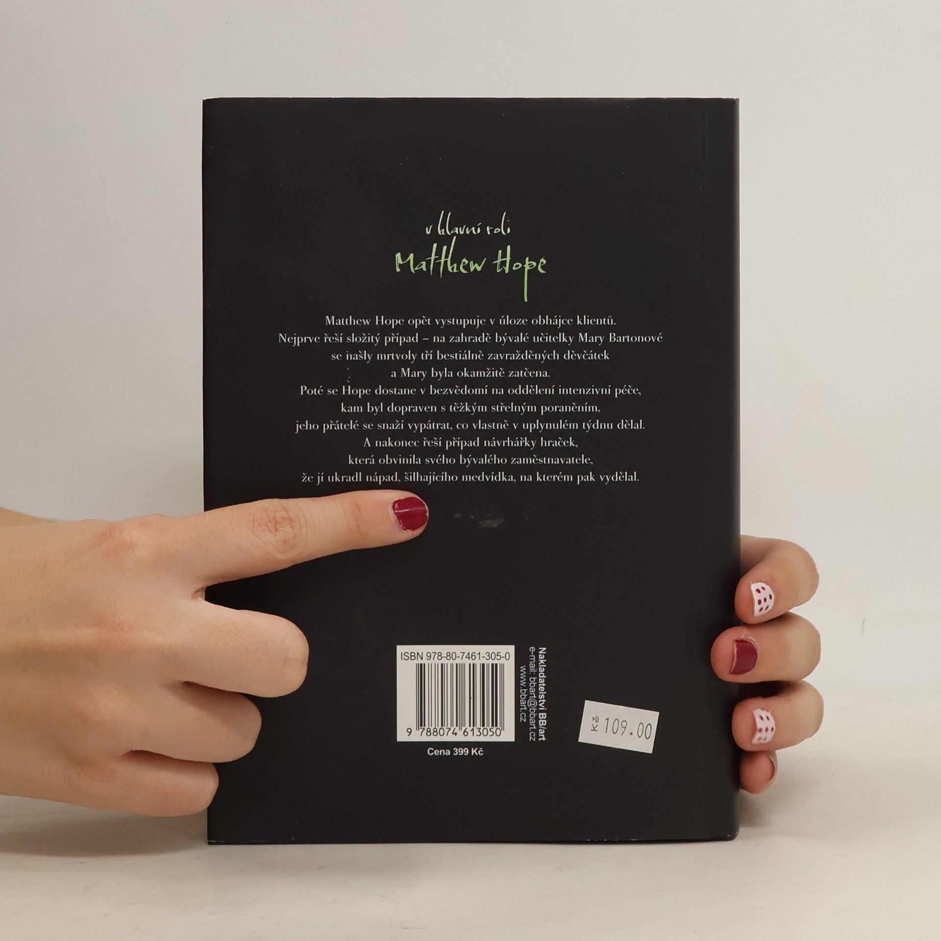 V hlavní roli Matthew Hope Matthew Hope, který se již definitivně stal expertem na trestní právo, opět vystupuje v úloze obhájce klientů, jejichž viny jsou podle mínění úřadu státního zástupce jako na talíři. Floridská Calusa prožívá nejeden žhavý případ a advokát se znovu a znovu mění v akčního soukromého detektiva a v bahně floridského podsvětí musí najít pachatele, aby prokázal nevinu svých klientů. Nejprve řeší složitý případ – na zahradě bývalé učitelky Mary Bartonové se našly mrtvoly tří bestiálně zavražděných děvčátek a Mary byla okamžitě zatčena. Poté se dostane v bezvědomí na oddělení intenzivní péče, kam byl dopraven s těžkým střelným poraněním, jeho přátelé se snaží vypátrat, co vlastně v uplynulém týdnu dělal. A nakonec řeší případ návrhářky hraček, která obvinila svého bývalého zaměstnavatele, že jí ukradl nápad, šilhajícího medvídka, na kterém pak vydělal.