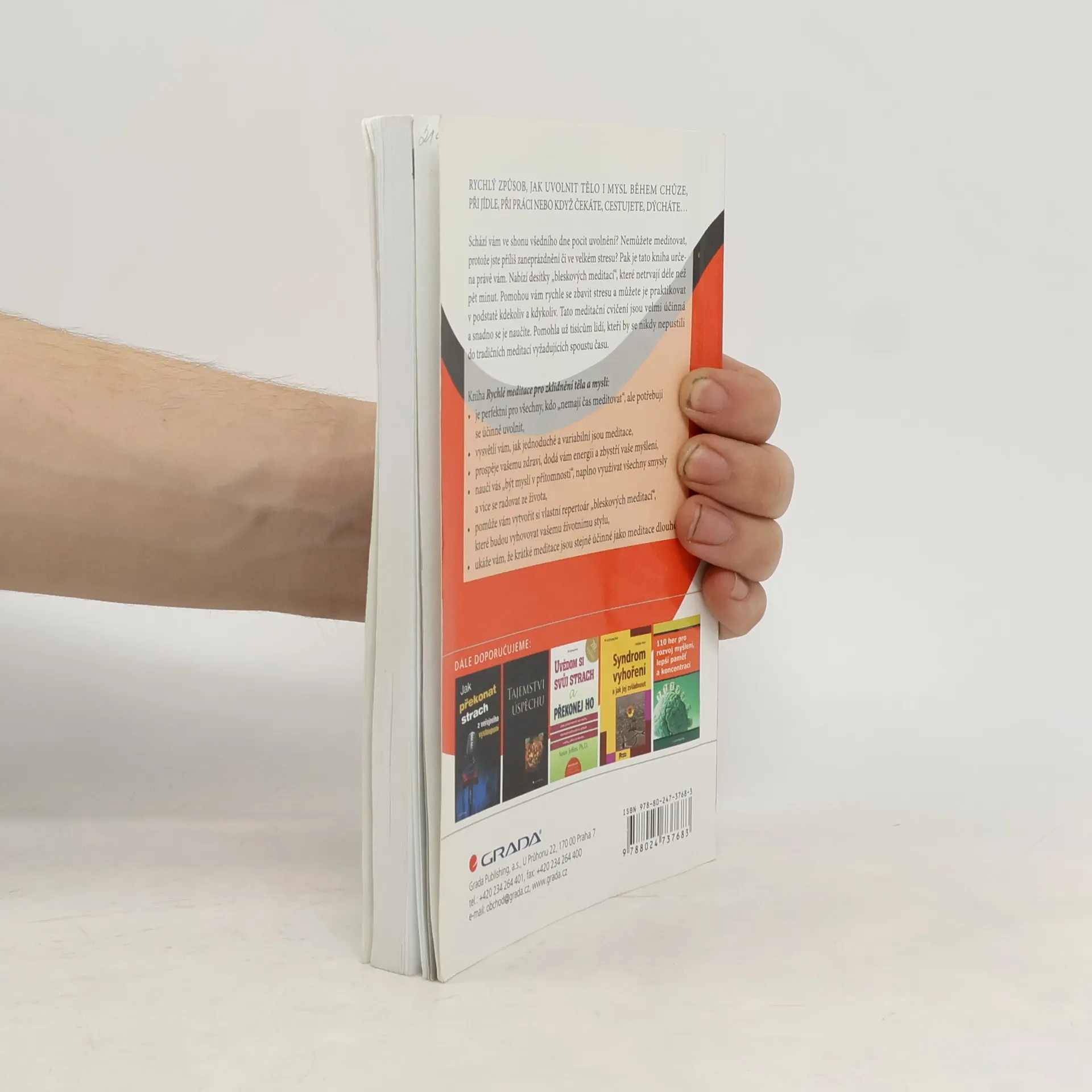 Schází vám ve shonu všedního dne pocit uvolnění? Nemůžete meditovat, protože jste příliš zaneprázdnění či ve velkém stresu? Pak je tato kniha určena přesně vám. Najdete v ní mnoho rychlých meditativních cvičení, od půlminutových až po pětiminutové, které vám pomohou významně omezit pocit stresu, zlepšit vaše zdraví a získat více energie. Tato meditativní cvičení jsou snadno naučitelná a velmi efektivní. Můžete díky nim meditovat kdykoliv a kdekoliv - během chůze, jídla, práce, při čekání, cestování či dýchání... Pomohou vám žít "tady a teď" a více si užívat života. Autor, který je nejuznávanějším australským učitelem meditace, tato cvičení už naučil tisíce lidí, kteří by nikdy neměli čas či trpělivost pro delší meditace.