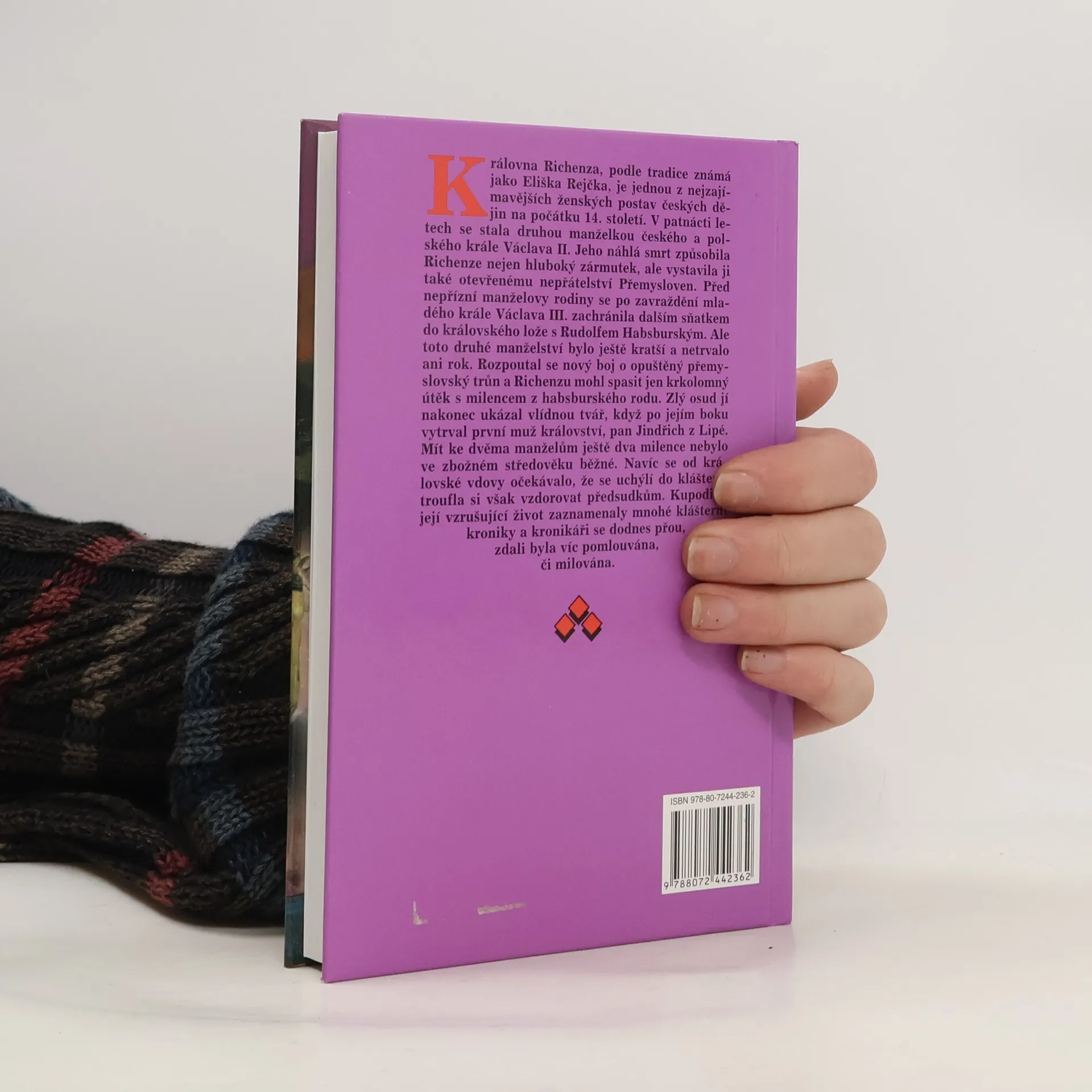 Královna Richenza Hlavní postavou románu je královna Richenza, jedna z nejzajímavějších ženských postav českých dějin na počátku 14. století. Dvakrát usedla Richenza na trůn, moc a koruna ji však nikdy nezaslepily. Jen její hladové srdce hledalo lásku. Proto si troufla být svobodnou ženou a vzdorovat předsudkům, kterým může být vystavena i královna, jež nepřestala milovat kdysi prvního muže království, pana Jindřicha z Lipé.