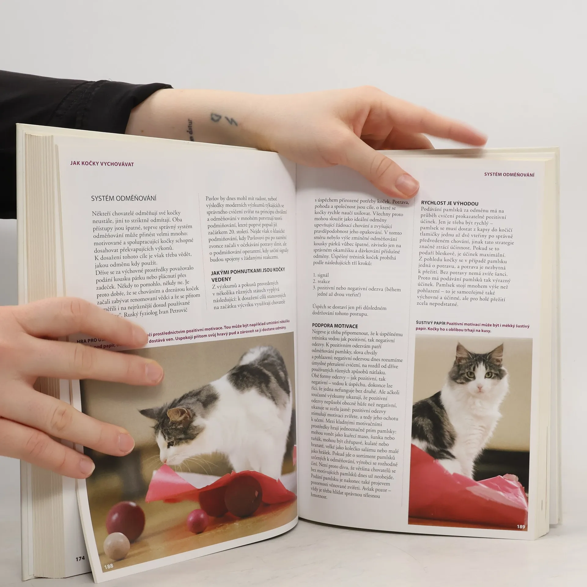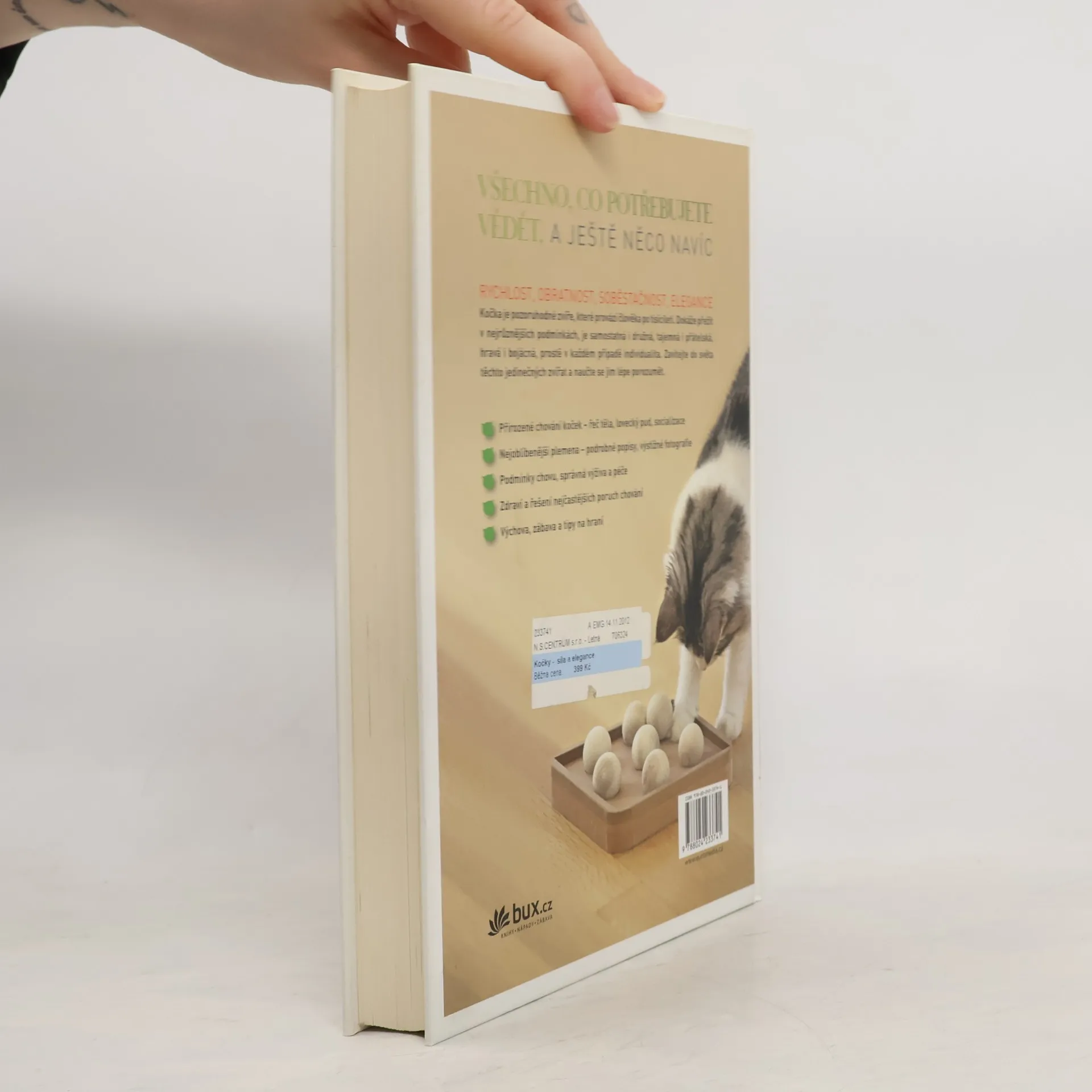 Velká celobarevná publikace obsahuje podrobné a fundované informace. Popisuje schopnosti koček, teritoriální chování, kočičí komunikaci, vývoj koťat, trendy moderní výživy, trénink s klikrem, systém odměňování, problémové chování a terapii. Nechybí ani praktická kapitola o zdraví koček a přehled plemen.