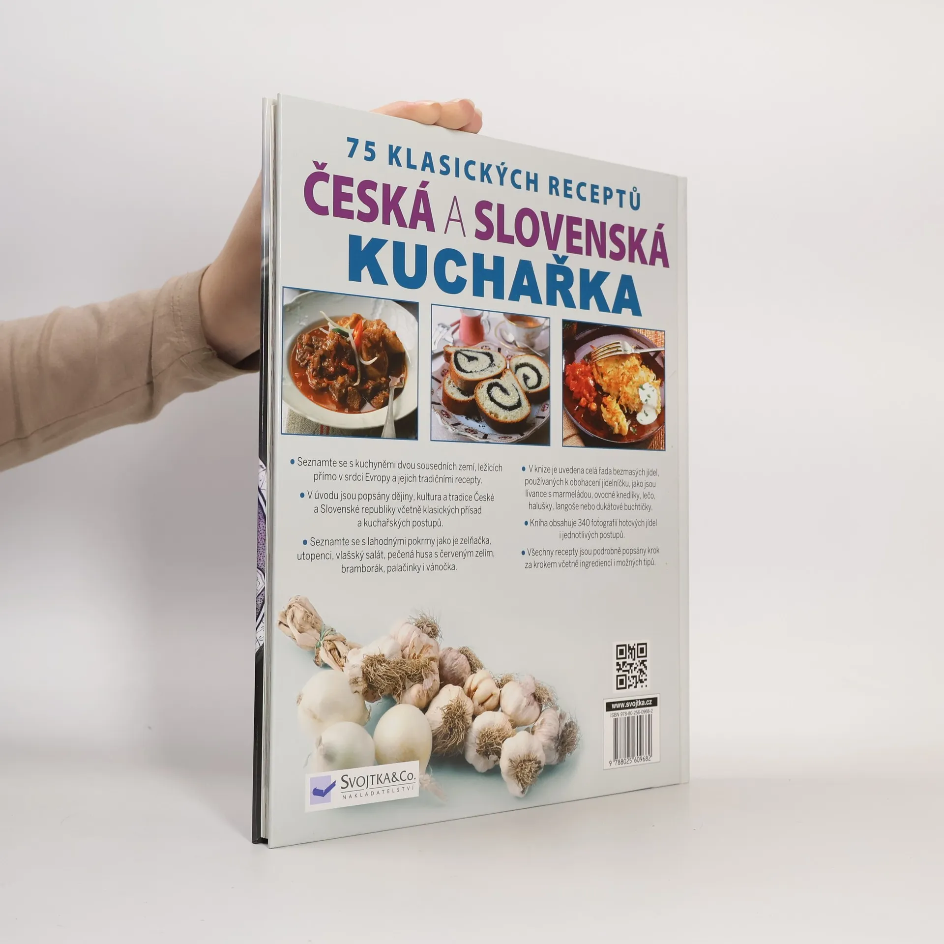 Stravovací zvyklosti u nás a na Slovensku do značné míry utvářely vlivy z okolních národů. Kuchyně obou zemí proto byly velmi výrazně ovlivněny svojí polohou. Slovensko bylo dlouhou dobu pod nadvládou Maďarů, jednalo se tedy o nejsilnější zahraniční vliv na slovenskou kuchyni. České země zase byly dlouho pod vládou Němců a Rakušanů, a právě odtud pochází obliba kysaného zelí, brambor, knedlíků a masa v tradiční české kuchyni. Přesto mají kuchyně obou zemí své typické rysy a charakteristická jídla. Tato jedinečná kuchařka obsahuje 75 klasických receptů - od polévek, předkrmů a chuťovek přes úpravu masa a přípravu sladkých i vegetariánských jídel až po přípravu dezertů a pečiva. Recepty jsou přesně rozepsány a doprovází je 340 názorných barevných fotografií, takže i kuchař-začátečník přípravu jídel hravě zvládne. Chcete se naučit uvařit poctivou gulášovou polévku, upéct bramboráky, naložit utopence, připravit kuře na paprice, plněnou papriku, segedínský guláš, koprovou omáčku, halušky, nudle s mákem, langoše, lívance, jablečný štrúdl nebo ovocné knedlíky? S touto kuchařkou to bude hračka! Překvapte své partnery, rodiče nebo kamarády svým kuchařským uměním. Příprava klasických českých a slovenských jídel nemusí být výsadou jen našich babiček!