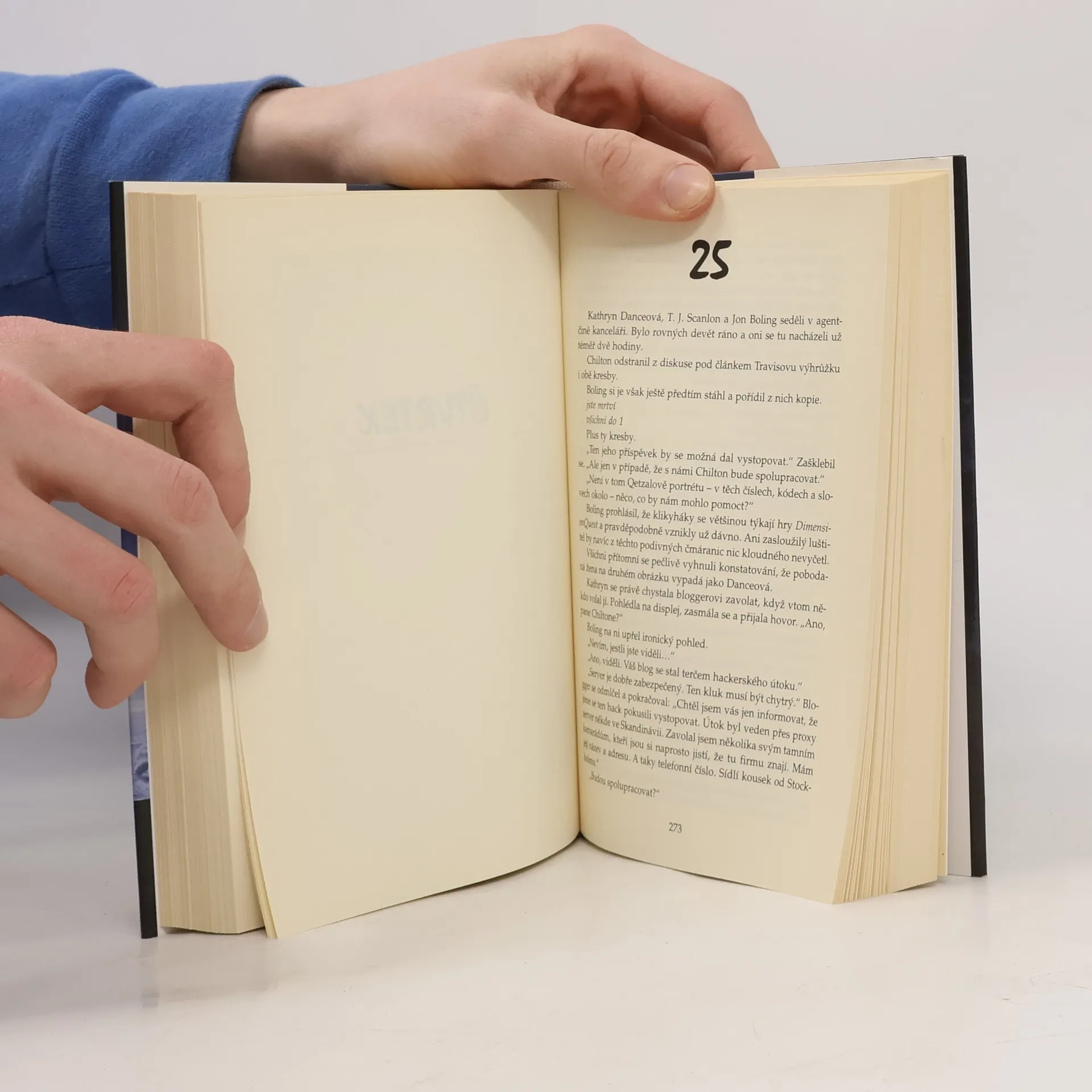 Montereyský poloostrov zaplavil strach. U silnic se začaly objevovat kříže – nikoli ovšem jako pomníčky obětí nehod, ale jako zlověstné znamení z rukou vraha. Co kříž, to jeden člověk, který zemře velmi krutým způsobem jen proto, že vrahovi poskytl přístup k údajům o svém soukromí na internetovém blogu nebo na sociální webové síti. Složitý případ skončí na stole Kathryn Danceové, agentky z Kalifornského úřadu vyšetřování a odbornice na kinezickou analýzu. Spolu s kolegy sleduje stopy k problémovému teenagerovi Travisi Brighamovi, který při autonehodě zabil dvě středoškolačky a vysloužil si za to ostrou kritiku na populárním blogu. Vše nasvědčuje tomu, že Travis připravuje krutou odplatu pro ty, kteří ho na internetu zostudili – a podle jeho názoru mu tím zničili život. Kathryn Danceová a její tým čelí nejen Travisovi, který bravurně uniká díky počítačovým znalostem nabytým při hraní síťových online her, ale klacky pod nohy jim hází i místní politici, paranoidní rodiče a v neposlední míře i samotný blogger, který v závěru ohrozí nejen vyšetřování, ale i samotnou Danceovou…