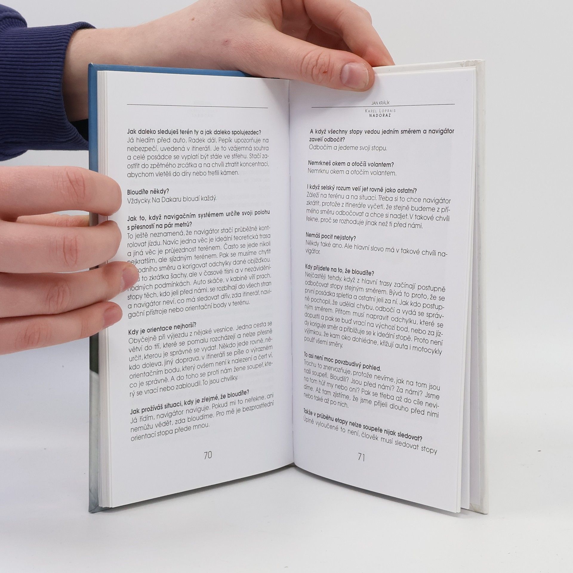 Karel Loprais rozmlouvá nadoraz - 333 otázek Jana Králíka Karel Loprais (1949) nastoupil do kopřivnické Tatry 3. července 1967 k hydraulickému lisu. Byla to práce tak nudná, že si našel zaměstnání v jižních Čechách. Nakonec ale zůstal v automobilce. Určitě nelitoval – 22. ledna 1988 poprvé vyhrál Rally Paříž – Dakar. Je ženatý, má dva syny a (zatím) pět pohárů z nejtěžší automobilové soutěže světa za první místa v kategorii kamiónů.