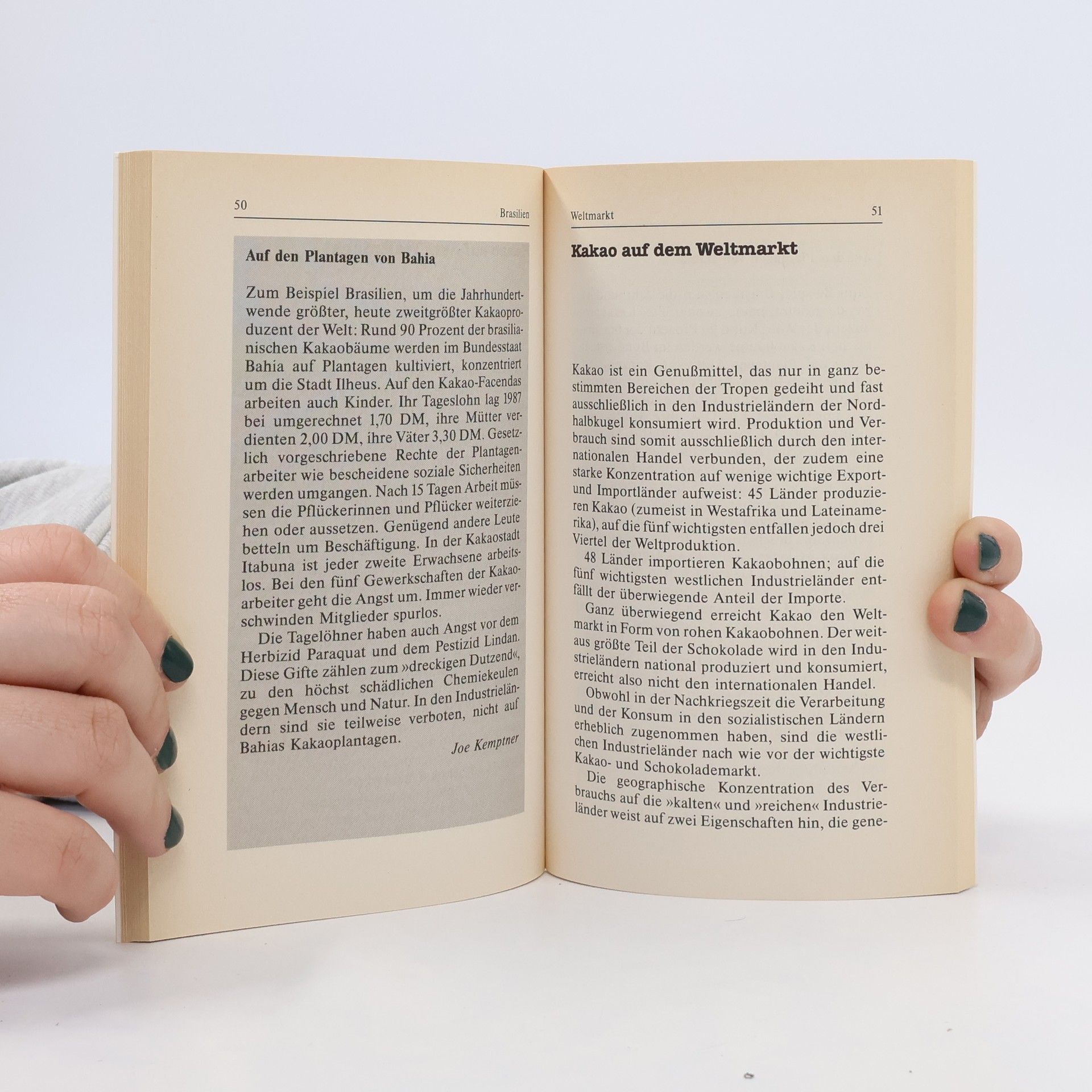 Für die Azteken war der Kakao-Baum ein Heiligtum. Heute ist Schokolade ein Allerweltsprodukt, an dem einige viel und viele wenig verdienen. Das Buch gibt Auskunft über Geschichte und Anbau, Handel und Verarbeitung dieses Rohstoffes. (Quelle: Katalog SBE).