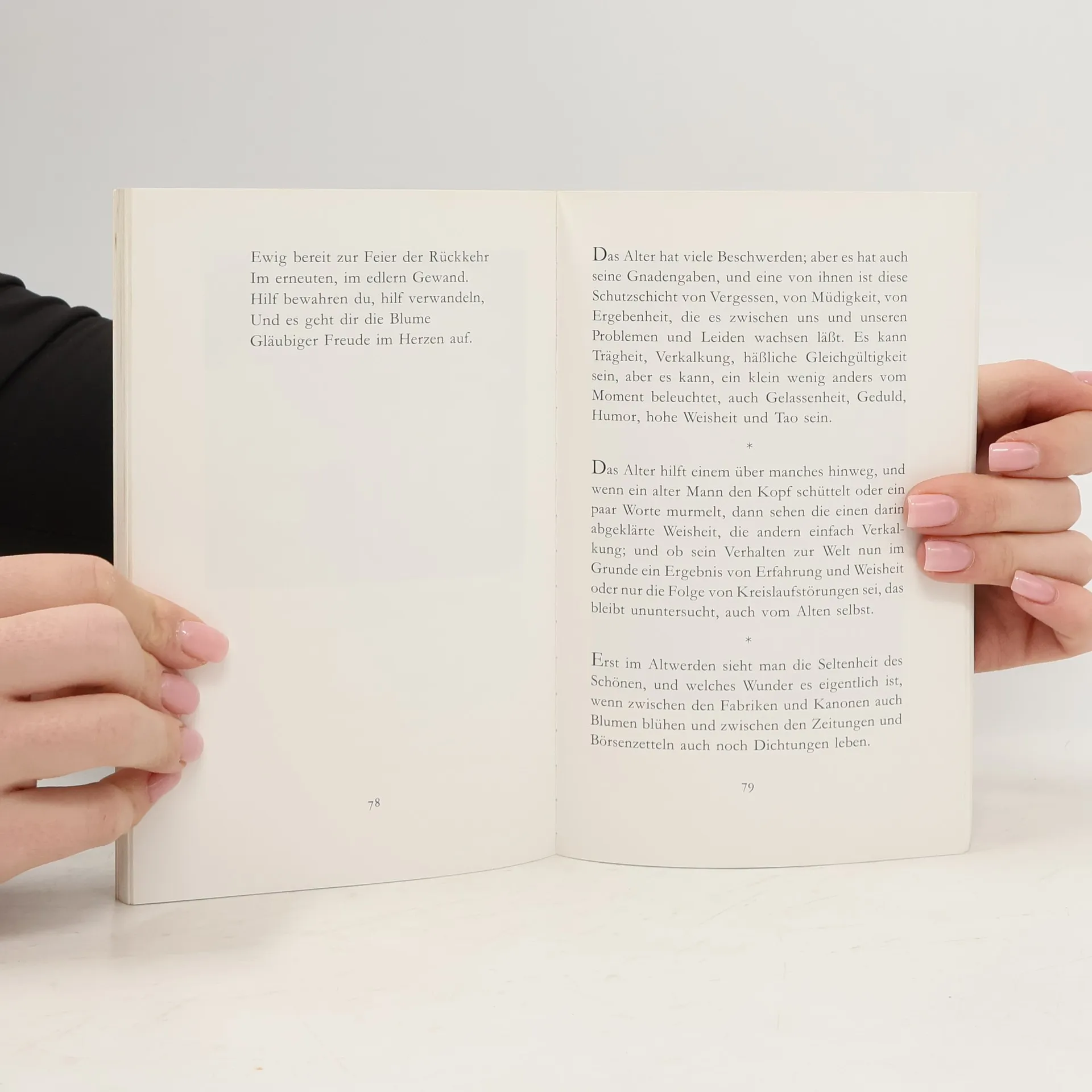 Hesse gehört zu den Autoren, die das Glück hatten, alt zu werden und alle Lebensstufen auf charakteristische Weise erfahren und darstellen zu können. Zu den schönsten dieser Schilderungen gehören seine Betrachtungen über das Alter, über die Lebensjahre, wo Wirklichkeit und Umwelt eine spielerische Surrealität gewinnen, wo die Erinnerung an die Vergangenheit im Verhältnis zur Gegenwart an Realität zunimmt.