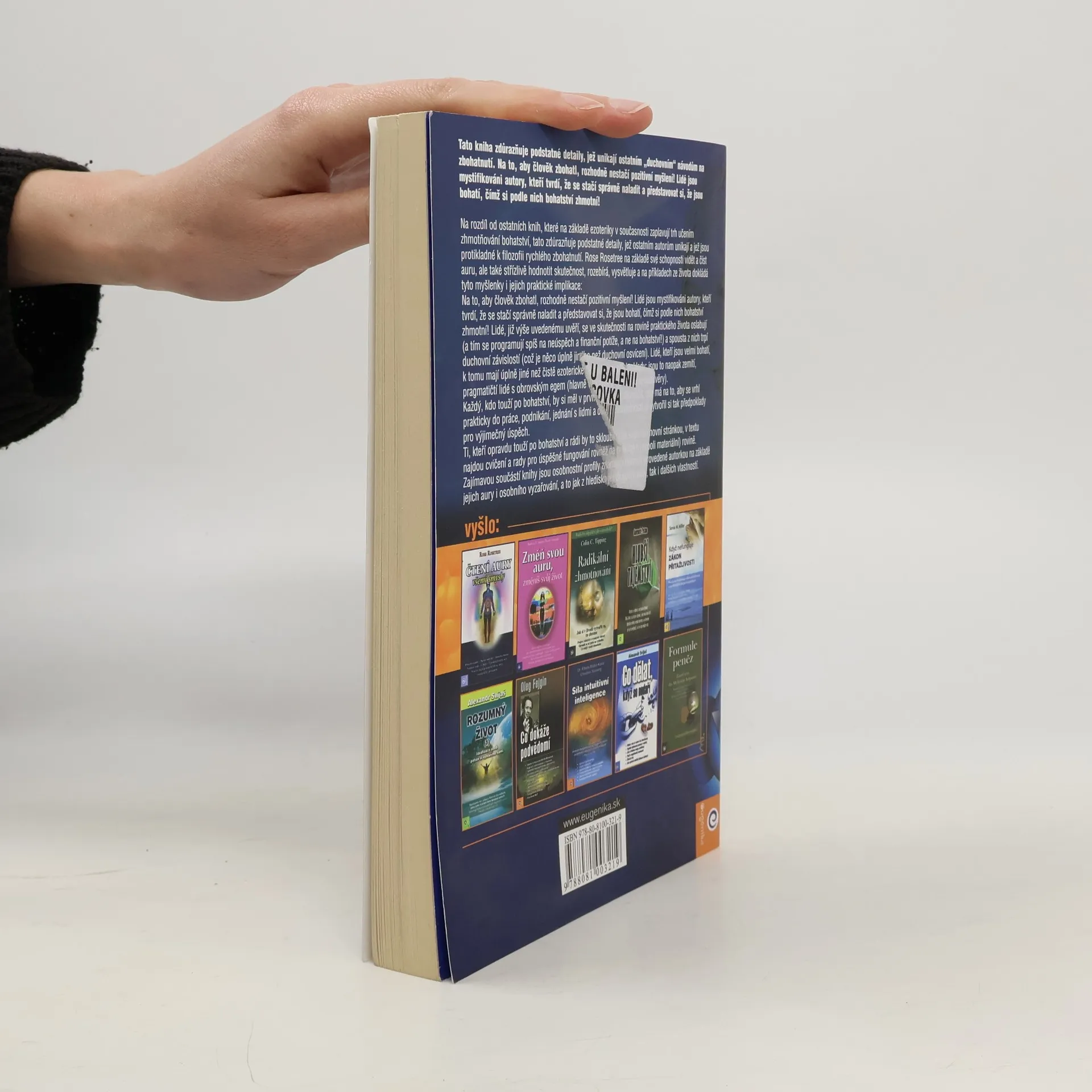 Kniha zdůrazňuje podstatné detaily, jež unikají ostatním návodům na zbohatnutí. Na to, aby člověk zbohatl, rozhodně nestačí pozitivní myšlení! Lidé jsou mystifikováni autory, kteří tvrdí, že se stačí správně naladit a představovat si, že jsou bohatí, čímž si podle nich bohatství zhmotní! Rose Rosetree na základě své schopnosti vidět a číst auru, ale také střízlivě hodnotit skutečnost, rozebírá, vysvětluje a na příkladech ze života dokládá tyto myšlenky i jejich praktické implikace.