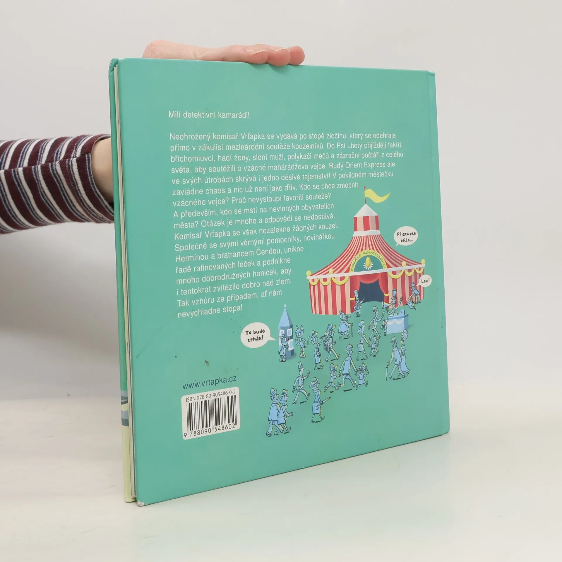 Neohrožený komisař Vrťapka se vydává po stopě zločinu, který se stane přímo v zákulisí mezinárodní soutěže kouzelníků! Do Psí Lhoty přijíždějí fakíři, břichomluvci, hadí ženy, sloní muži, polykači mečů a zázrační počtáři z celého světa, aby soutěžili o vzácné mahárádžovo vejce. Rudý Orient Express ale ve svých útrobách skrývá i jedno děsivé tajemství! V poklidném městečku zavládne chaos a nic už není jako dřív. Kdo se chce zmocnit vzácného vejce? Proč nevystoupí favoriti soutěže? A především, kdo se mstí na nevinných obyvatelích města? Otázek je mnoho a odpovědí se nedostává. Komisař Vrťapka se však nezalekne žádných kouzel. Společně se svými věrnými pomocníky, novinářkou Hermínou a bratrancem Čendou, unikne řadě rafinovaných léček a podnikne mnoho dobrodružných honiček, aby i tentokrát zvítězilo dobro nad zlem. Tak vzhůru za případem, ať nám nevychladne stopa!