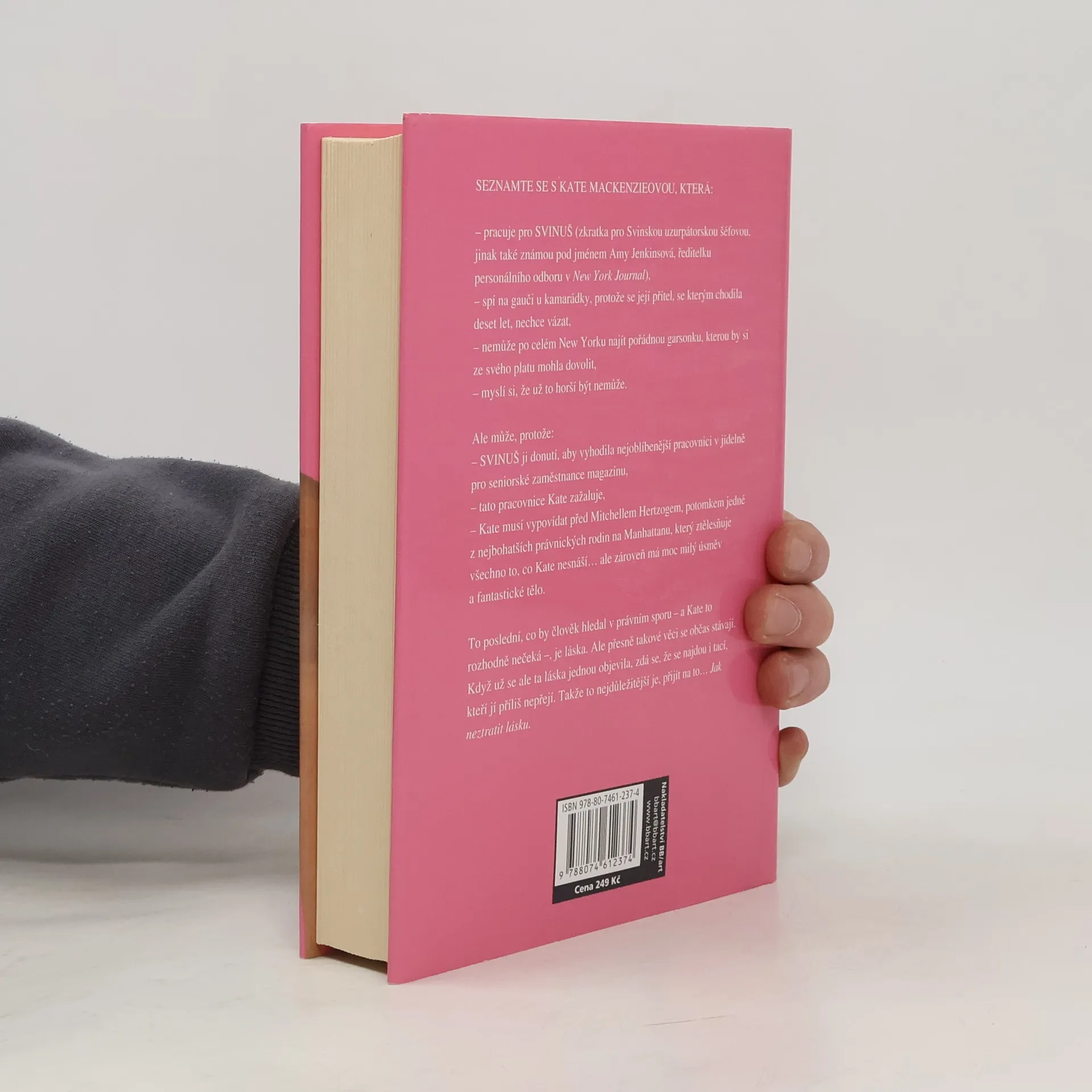 Když muž potká ženu Seznamte se s Kate Mackenzieovou… pracovnicí personálního oddělení New York Journal s hlavou plnou ideálů, která nerada posílá výpovědi zaměstnancům a je světovou přebornicí v chatování. Seznamte se s Mitchem Hertzogem… firemním právníkem s úsměvem od ucha k uchu, obhájcem padlých a zničených duší. Nedá se mu odolat. Seznamte se s Idou Lopezovou… mistryní ve výrobě koláčků, majitelkou vozíku s dezerty a bohyní všech pochoutek, nad kterými se sbíhají sliny. Společně musí bojovat s tyrany a despoty a vypátrat pravdu, zajistit spravedlnost a dokonalou dvojitou náplň pro to, co se celou knihu peče.