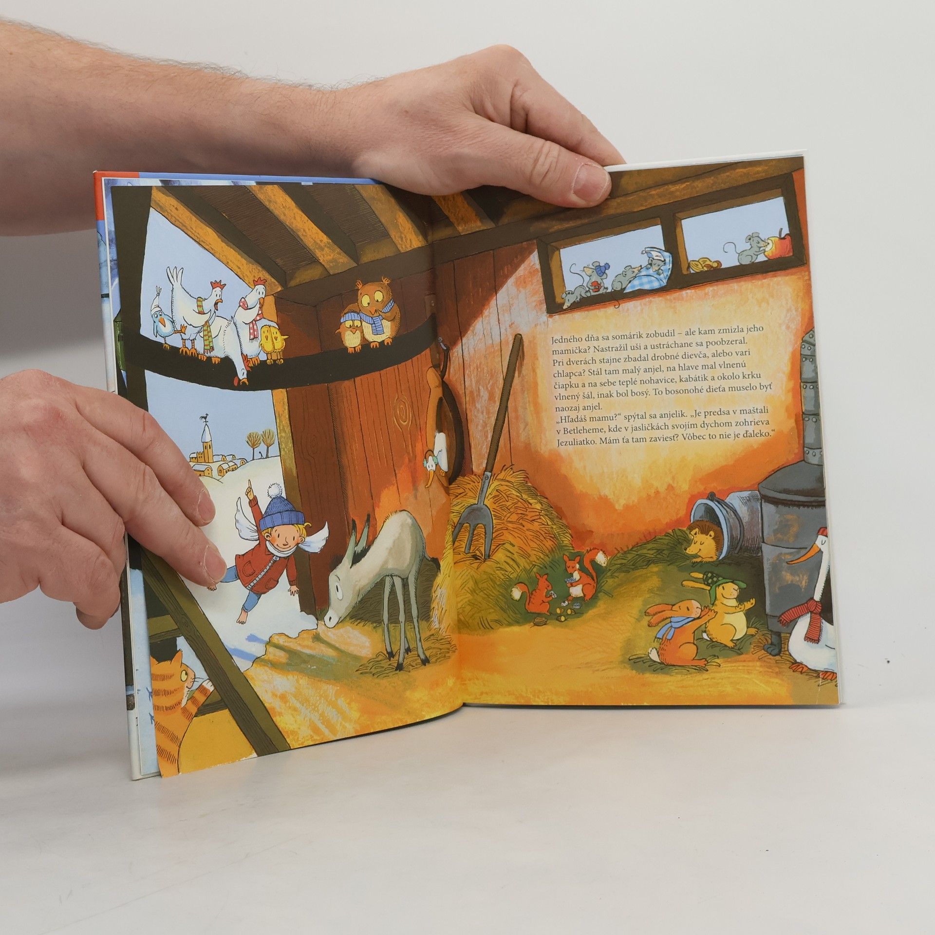 Keď sa somárik v jedno ráno zobudí, jeho mama je preč! Našťastie však nezostane dlho sám. Navštívi ho malý anjel, ktorý vie,kde ju nájde: v jasličkách,kde sa v noci narodil Ježiško. Spolu sa vydávajú na cestu k maštali a pozývajú aj ostatných,aby sa k nim pridali. Prizvú deti,pastiera s ovečkami,rodinu pekára,tetu z bistra "Klobása" a dokonca aj policajta- títo všetci sa k ním pripájajú a spoločne zažívajú zázrak Vianoc.