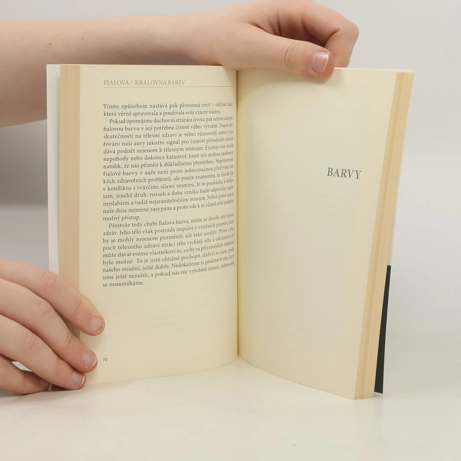 Barvy jsou čisté síly, které si okamžitě razí cestu k našim zkušenostem. Je-li s nimi člověk v harmonickém souzvuku, může je vnímat jako příjemné a povzbuzující. Barvy reprezentují témata, s nimiž se každý člověk v životě střetává. Proto si také prostřednictvím svých zkušeností nevyhnutelně vytváří k barvám vlastní vztah. Kniha popisuje význam, působení a vliv barev na náš duševní a tělesný stav a předkládá autorovu osmnáctiletou zkušenost s prožíváním barev.