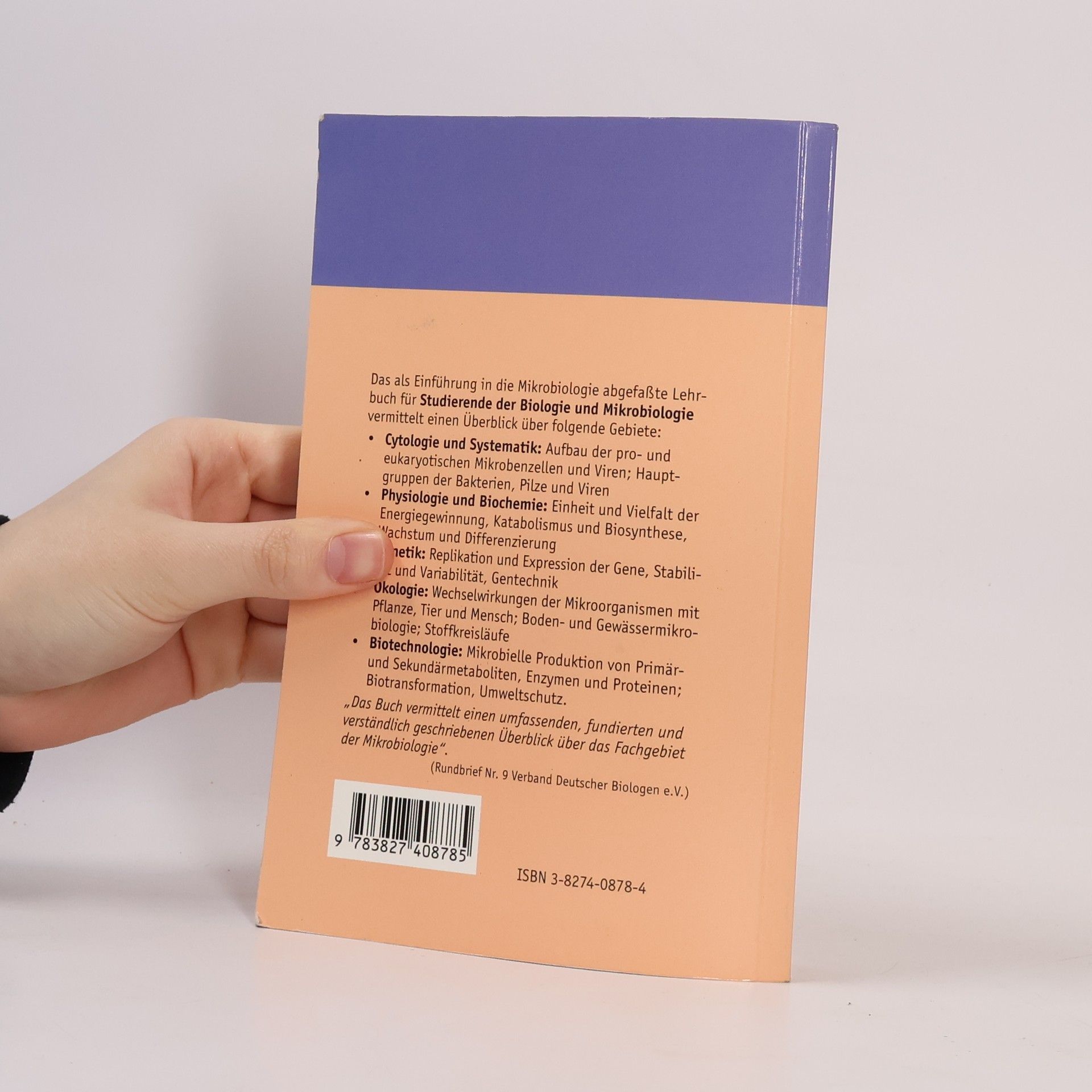 Das als Einführung in die Mikrobiologie abgefaßte Lehrbuch für Studierende der Biologie und Mikrobiologie vermittelt einen Überblick über folgende Gebiete: - Cytologie und Systematik: Aufbau der pro- und eukrayotischen Mikrobenzellen und Viren; Hauptgruppen der Bakterien, Pilze und Viren - Physiologie und Biochemie: Einheit und Vielfalt der Energiegewinnung, Katabolismus und Biosynthese, Wachstum und Differenzierung - Genetik: Replikation und Expression der Gene, Stabilität und Variabilität, Gentechnik - Ökologie: Wechselwirkungen der Mikroorganismen mit Pflanze, Tier und Mensch; Boden- und Gewässermikrobiologie; Stoffkreisläufe - Biotechnologie: Mikrobielle Produktion von Primär- und Sekundärmetaboliten, Enzymen und Proteinen; Biotransformation, Umweltschutz
