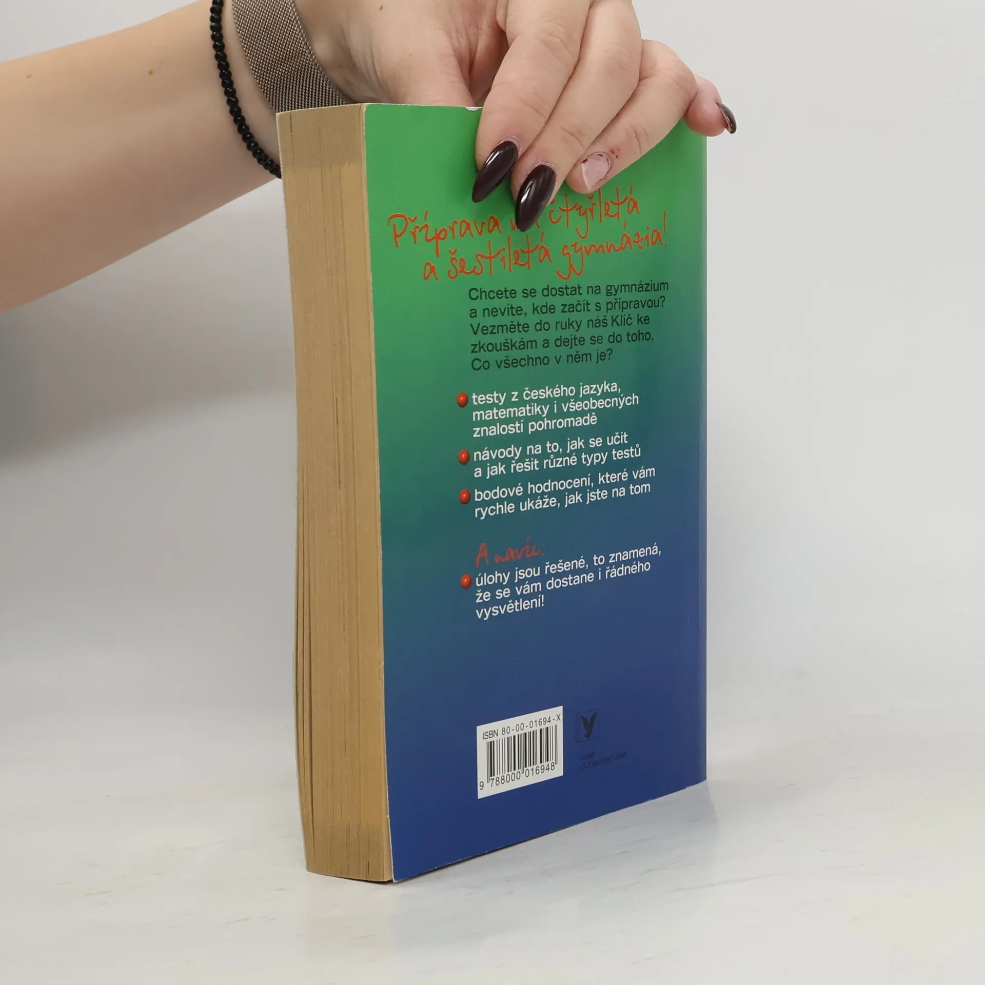 Jedna z mála publikací, které nabízejí zkušební testy z matematiky, češtiny a obecného přehledu. Žák si může vyzkoušet své znalosti ze všech předmětů, díky bodovému hodnocení může zjistit i úroveň svých znalostí a případné mezery k doplnění. A protože každá škola si vytváří přijímací testy trochu jinak, může si žák vyzkoušet i různé typy otázek. Za každým testem pak najde řešení všech otázek s odůvodněním.