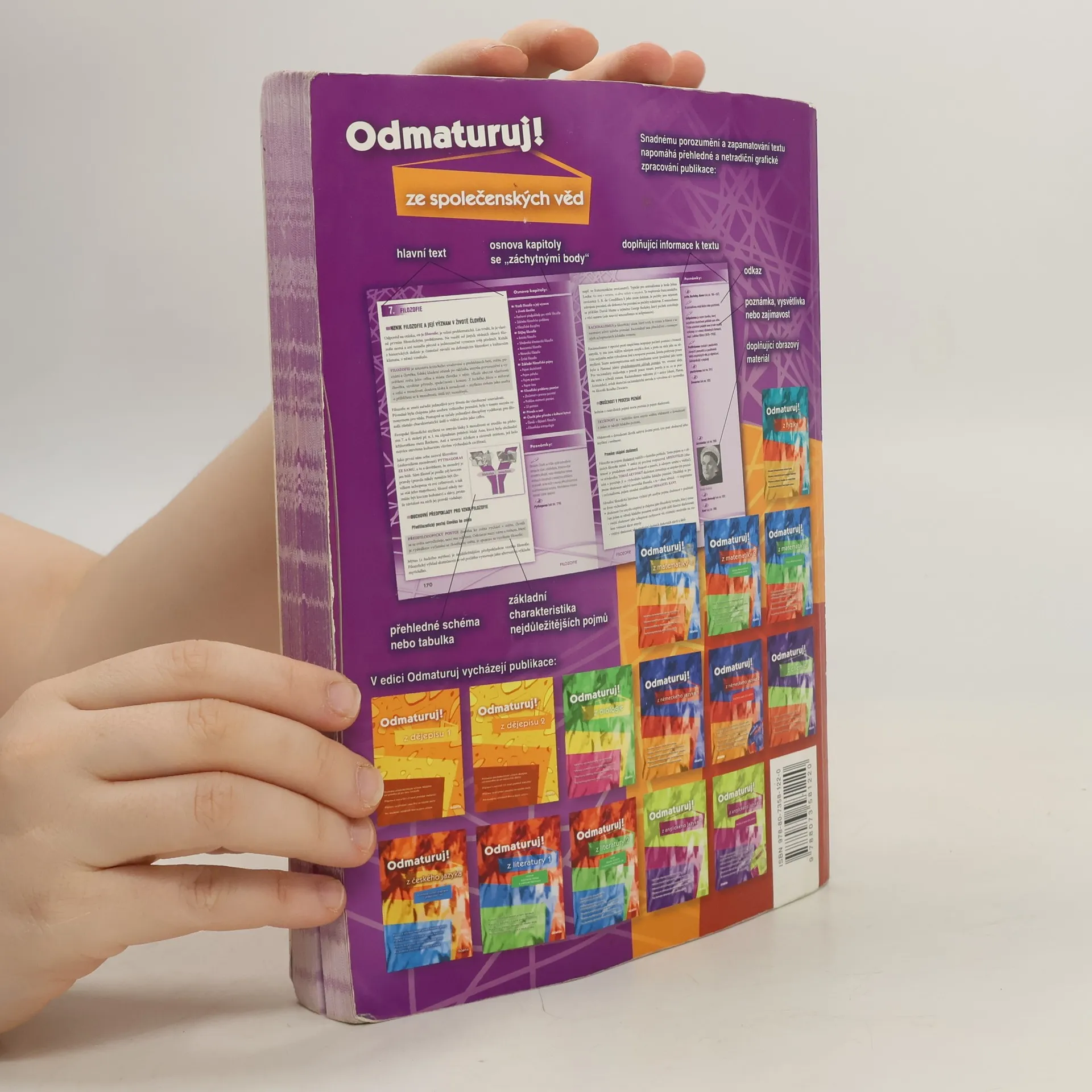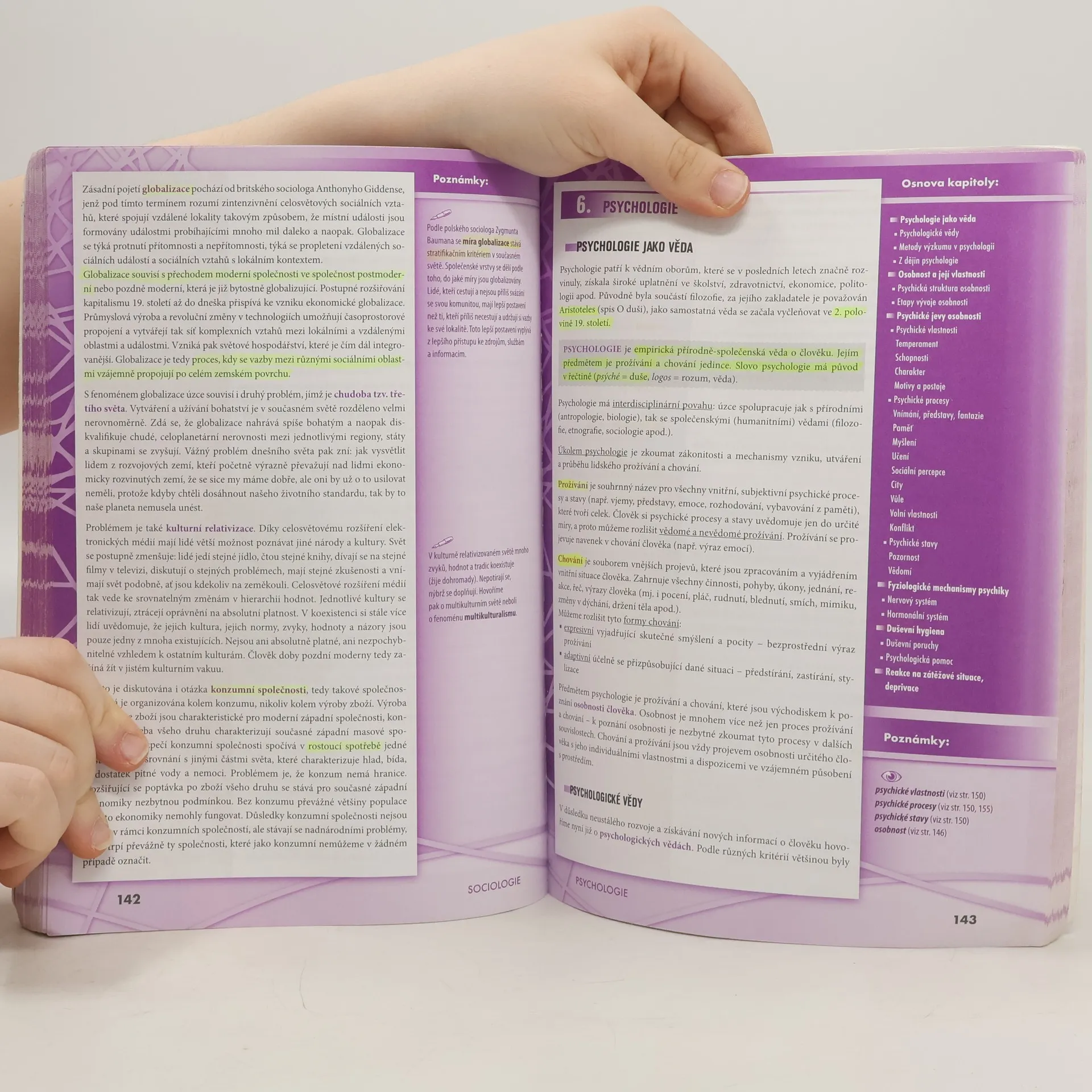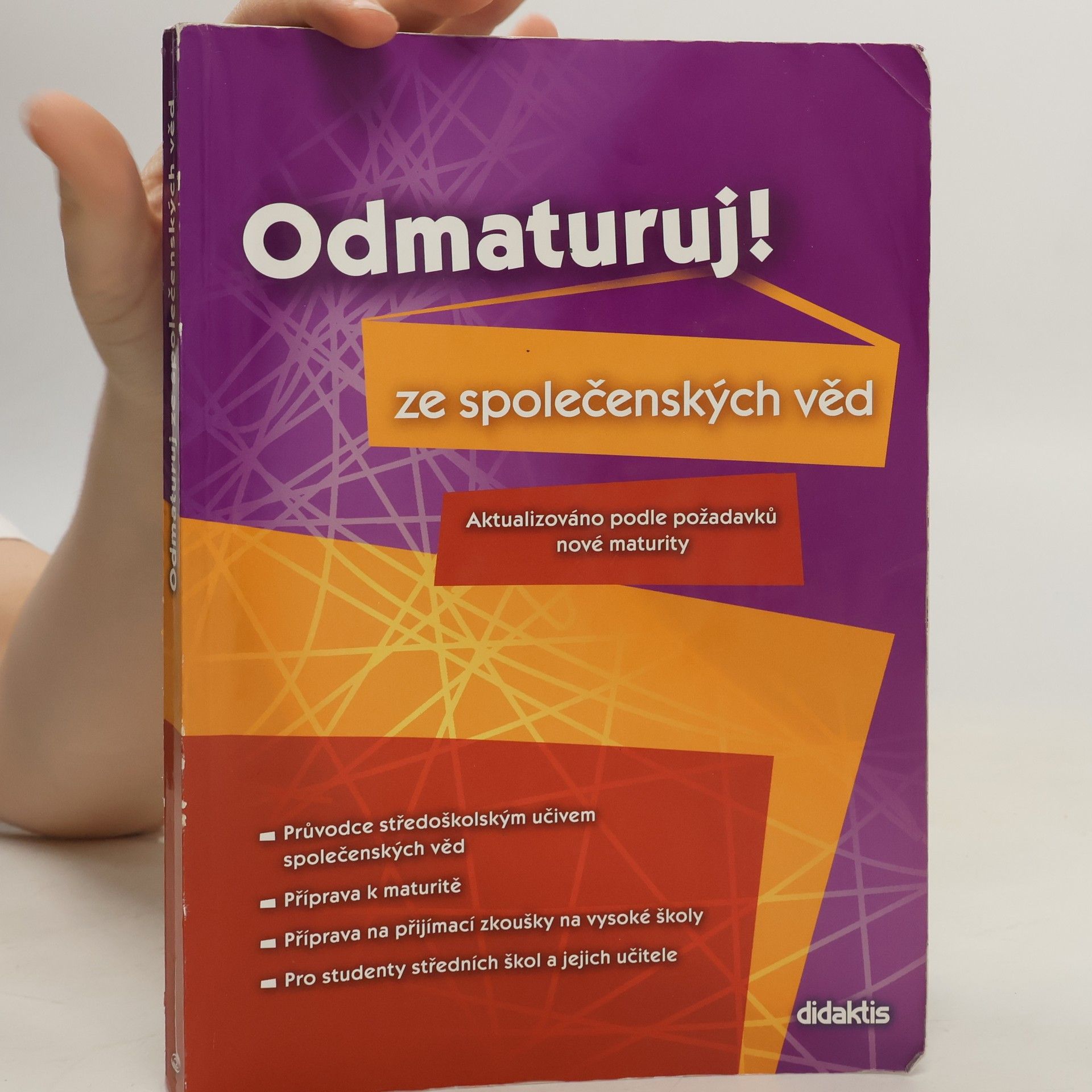 Politologie, právo, mezinárodní vztahy, ekonomie, sociologie, psychologie, filozofie, etika, logika a teorie vědy, náboženství. Aktualizovaná učebnice určena k přípravě na maturitu (podle požadavků nové maturity) a k přijímacím zkouškám na vysoké školy. Publikace byla zpracována v souladu s požadavky MŠMT na reformu středoškolského vzdělávání a podobu a obsah nové celostátní maturity. Kniha je přehledně zpracována do 10 celků dle vědních disciplin, které jsou dále členěny na menší podkapitoly. Snadnou orientaci v textu podporuje grafické odlišení ústředního textu od doplňujících poznámek. Text je doplněn mnoha zajímavostmi, odkazy, přehlednými tabulkami a názornými schématy.