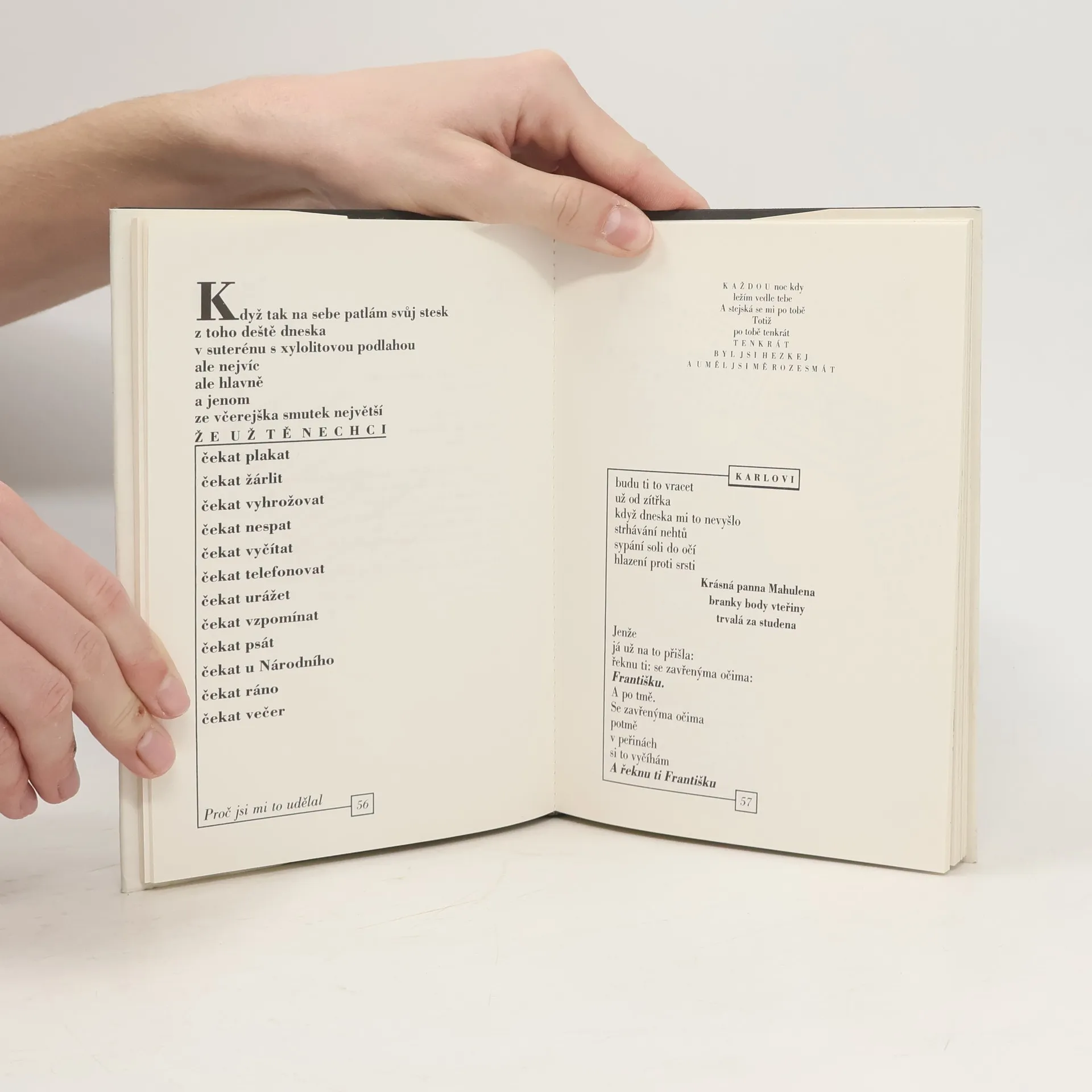 Básnické texty Naděždy Plíškové látkově vycházejí z autentického prožitku vlastní existence. Určující je deníkový charakter, výraz řečového proudu, volný verš. Autorka volně navazuje na poetiku Skupiny 42, stejně jako na tzv. trapnou poezii. Básnickou prvotinu Plíšková podle abecedy doprovází dvacet autorských grafik, grafická úprava textů se zde významně podílí na kompozici básní. Autorka tematizuje rozpadající se manželství, traumatizující zážitky spojené s následky zranění, naplňující mateřství. Nevěry manžela, touha po jeho tělesné blízkosti a kontaktu, smutek a stud jsou zaznamenány v obžalobných monolozích a fragmentech promluv. Vztah k dítěti a vlastní matce provází něha, zdrobněliny, záznam dětských otázek. Některé texty prvotiny přešly i do sbírky Hospodská romantika.