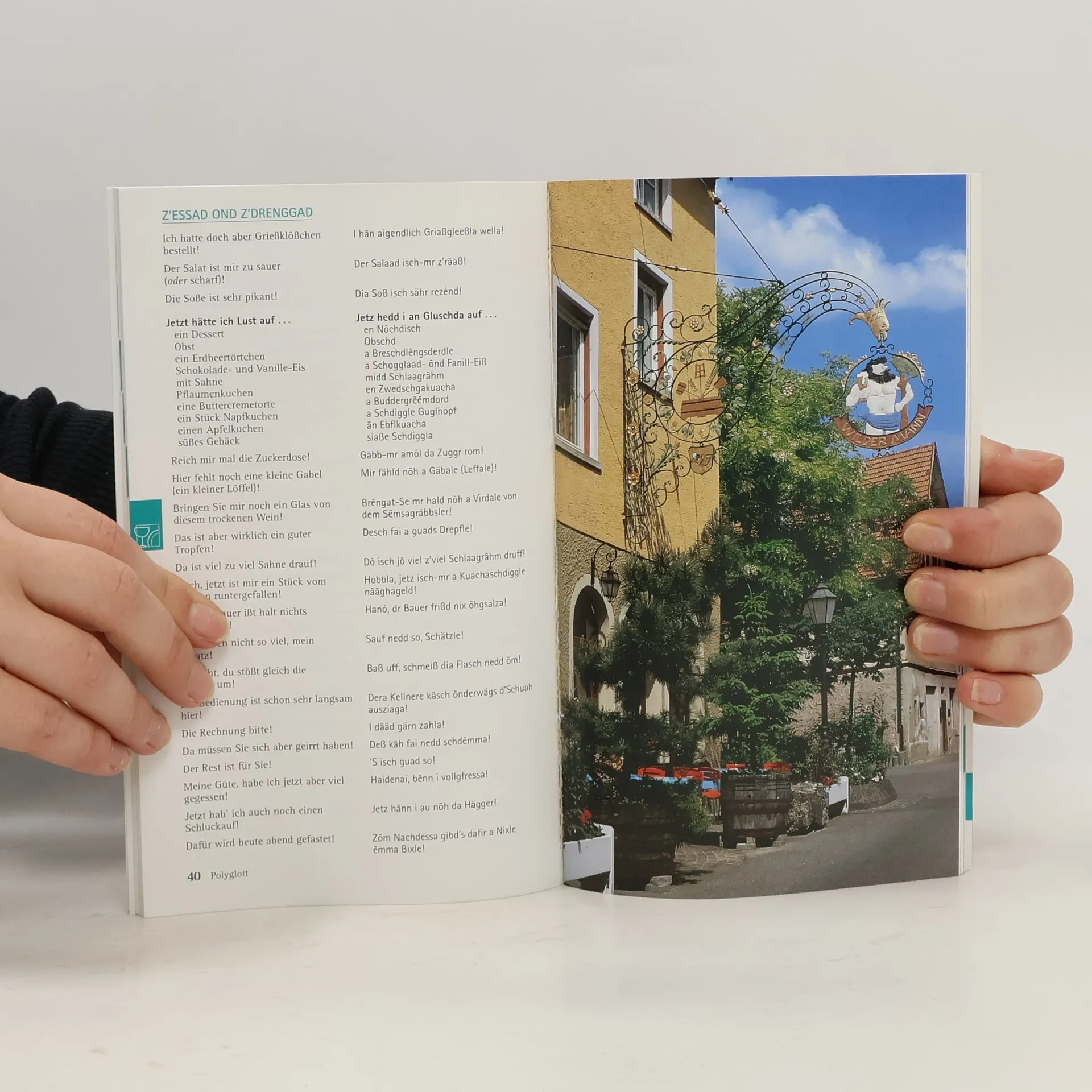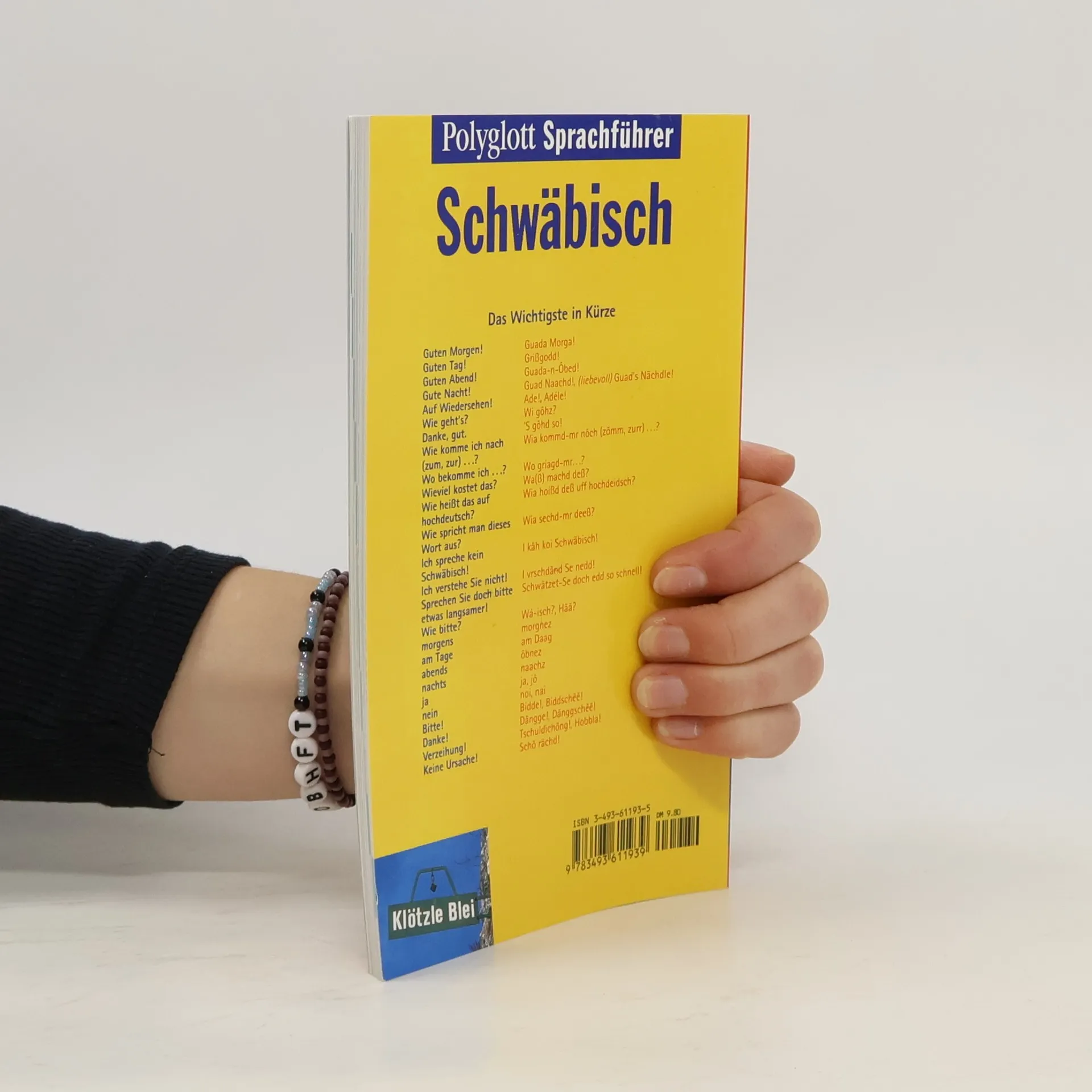 POLYGLOTT Sprachführer Schwäbisch: Mit Booklet zum Mitnehmen Nie mehr sprachlos: Der POLYGLOTT-Sprachführer ist der ideale Begleiter, um sich in alltäglichen Situationen auf Schwäbisch zu verständigen. Frage- und Antwortsätze zu den wichtigsten Themen auf Reisen finden sich in verschiedenen Kapiteln, wobei jedes um eine hilfreiche Wortliste ergänzt ist, welche das Vokabular schnell erweitert. Eine vereinfachte, am Hochdeutschen orientierte Lautschrift umgeht Dialektbarrieren gezielt und ermöglicht eine (un-)verständliche Aussprache. Zudem findet sich ein Bildwörterbuch zu Beginn sowie ein ausführliches Wortregister am Ende des Bandes. Ein übersichtliches Booklet zum Mitnehmen hilft beim Flirten und Fluchen auf Schwäbisch und sorgt so für optimale Unterstützung in besonderen Situationen. So steht einer angenehmen Reise nichts im Weg.