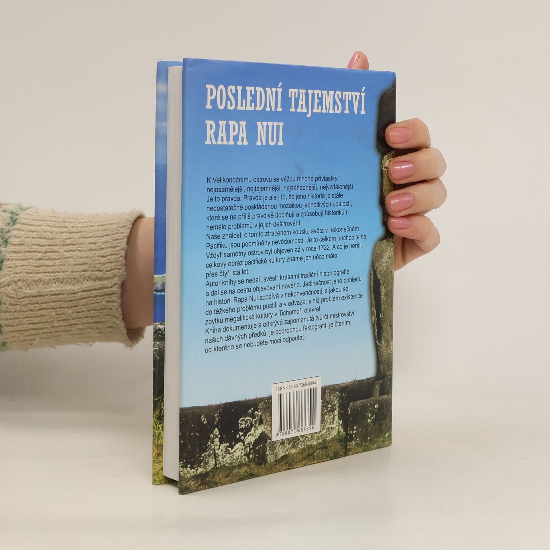 Velikonočnímu ostrovu se vážou mnohé přívlastky: nejosamělejší, nejtajemnější, nejzáhadnější, nejvzdálenější. Je to pravda. Pravda je ale i to, že jeho historie je stále nedostatečně poskládanou mozaikou jednotlivých událostí, které se ne příliš pravdivě doplňují a způsobují historikům nemálo problémů v jejich dešifrování. Naše znalosti o tomto ztraceném kousku světa v nekonečném Pacifiku jsou podmíněny nevědomostí. Je to celkem pochopitelné. Vždyť samotný ostrov byl objeven až v roce 1722. A co je horší, celkový obraz pacifické kultury známe jen něco málo přes čtyři sta let. Autor knihy se nedal „svést“ krásami tradiční historiografie a dal se na cestu objevování nového. Jedinečnost jeho pohledu na historii Rapa Nui spočívá v nekonvenčnosti, s jakou se do těžkého problému pustil, a v odvaze, s níž problém existence zbytku megalitické kultury v Tichomoří otevřel. Kniha dokumentuje a odkrývá zapomenutá tvůrčí mistrovství našich dávných předků, je podrobnou faktografií, je čtením, od kterého se nebudete moci odpoutat.