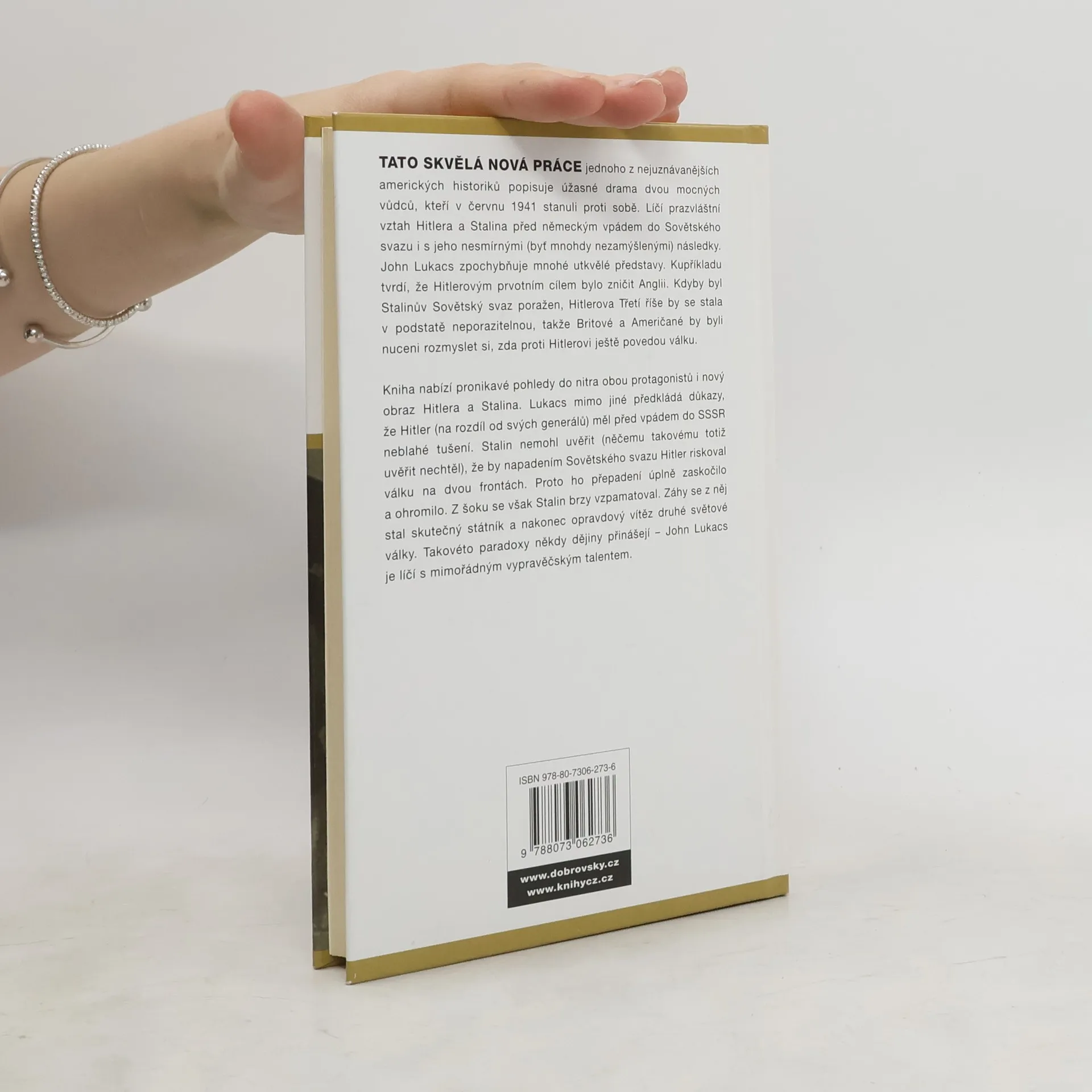 Skvělá nová práce jednoho z nejuznávanějších amerických historiků popisuje úžasné drama dvou mocných vůdců, kteří stanuli proti sobě v červnu 1941. Líčí prazvláštní vztah Hitlera a Stalina, plný upřímných očekávání i neupřímných kalkulací, před německým vpádem do Sovětského svazu i s jeho nesmírnými (byť mnohdy nezamýšlenými) následky. John Lukacs zpochybňuje mnohé utkvělé představy. Kupříkladu tvrdí, že Hitlerovým prvotním cílem bylo zničit Anglii. Kdyby byl Stalinův Sovětský svaz poražen, Hitlerova Třetí říše by se stala v podstatě neporazitelnou, takže Britové a Američané by byli nuceni rozmyslet si, zda proti Hitlerovi ještě povedou válku. Kniha nabízí pronikavé pohledy do nitra obou protagonistů i nový obraz Hitlera a Stalina, jak byl zformován na základě jejich dlouholetých představ. Lukacs mimo jiné předkládá důkazy, že Hitler (na rozdíl od svých generálů) měl před vpádem do SSSR neblahé tušení. Stalin nemohl uvěřit (něčemu takovému totiž uvěřit nechtěl), že by napadením Sovětského svazu Hitler riskoval válku na dvou frontách. Proto ho válka úplně zaskočila a ohromila a málem přivedla ke zhroucení. Ale vzpamatoval se, stal se z něj skutečný státník a nakonec opravdový vítěz druhé světové války. Takovéto paradoxy někdy dějiny přinášejí – John Lukacs je líčí s mimořádným vypravěčským talentem.