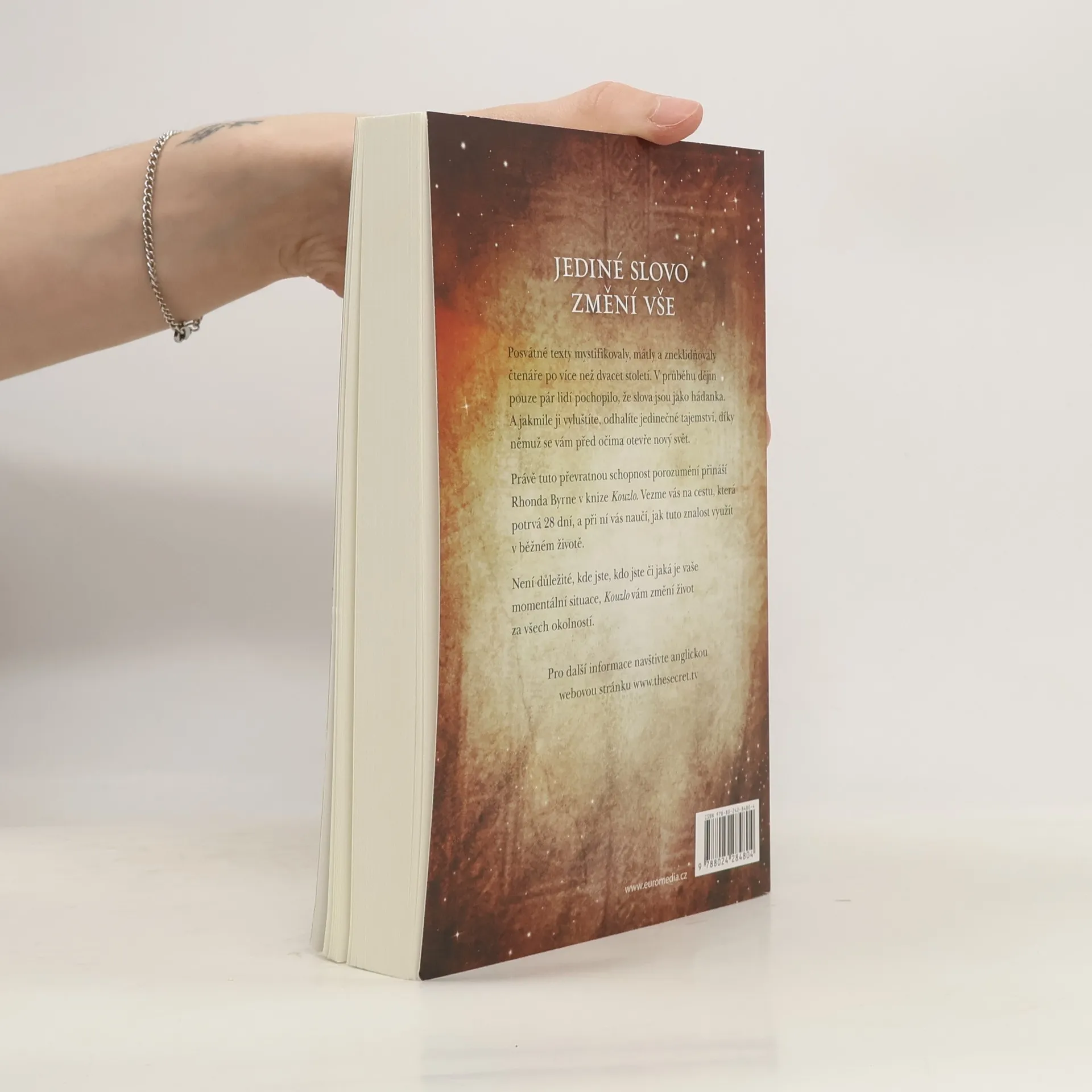 Posvátné texty mystifikovaly, mátly a zneklidňovaly čtenáře po více než dvacet století. V průběhu dějin pouze pár lidí pochopilo, že slova jsou jako hádanka. A jakmile ji vyluštíte, odhalíte jedinečné tajemství, díky němuž se vám před očima otevře nový svět. Právě tuto převratnou schopnost porozumění přináší Rhonda Byrne v knize Kouzlo. Vezme vás na cestu, která potrvá 28 dní, a při ní vás naučí, jak tuto znalost využít v běžném životě. Není důležité, kde jste, kdo jste či jaká je vaše momentální situace, Kouzlo vám změní život za všech okolností.