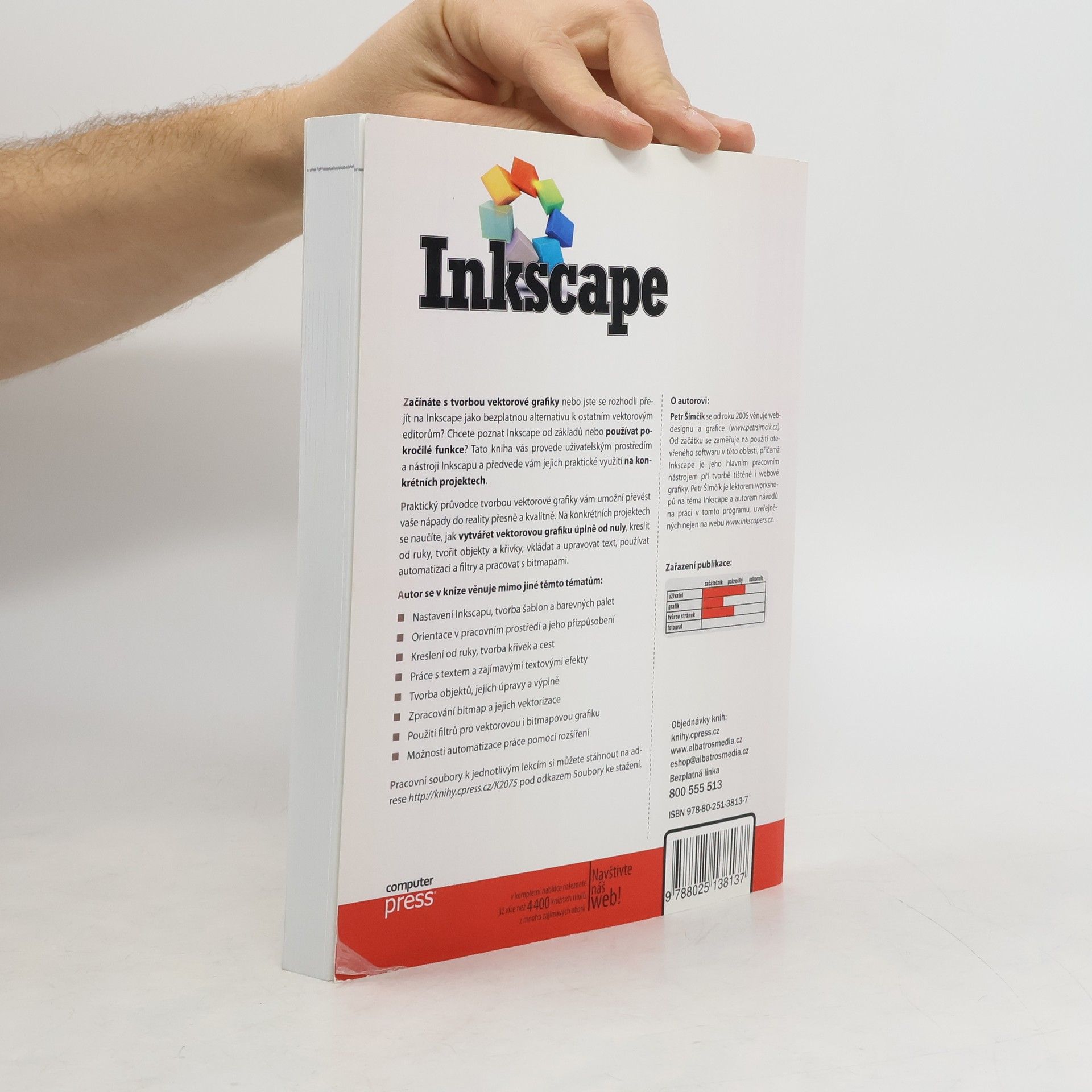 Začínáte s tvorbou vektorové grafiky nebo jste se rozhodli přejít na Inkscape jako bezplatnou alternativu k ostatním editorům? Chcete poznat Inkscape od základů nebo používat pokročilé funkce? Tato kniha vás provede uživatelským prostředím a nástroji Inkscapu a předvede jejich praktické využití na konkrétních projektech.