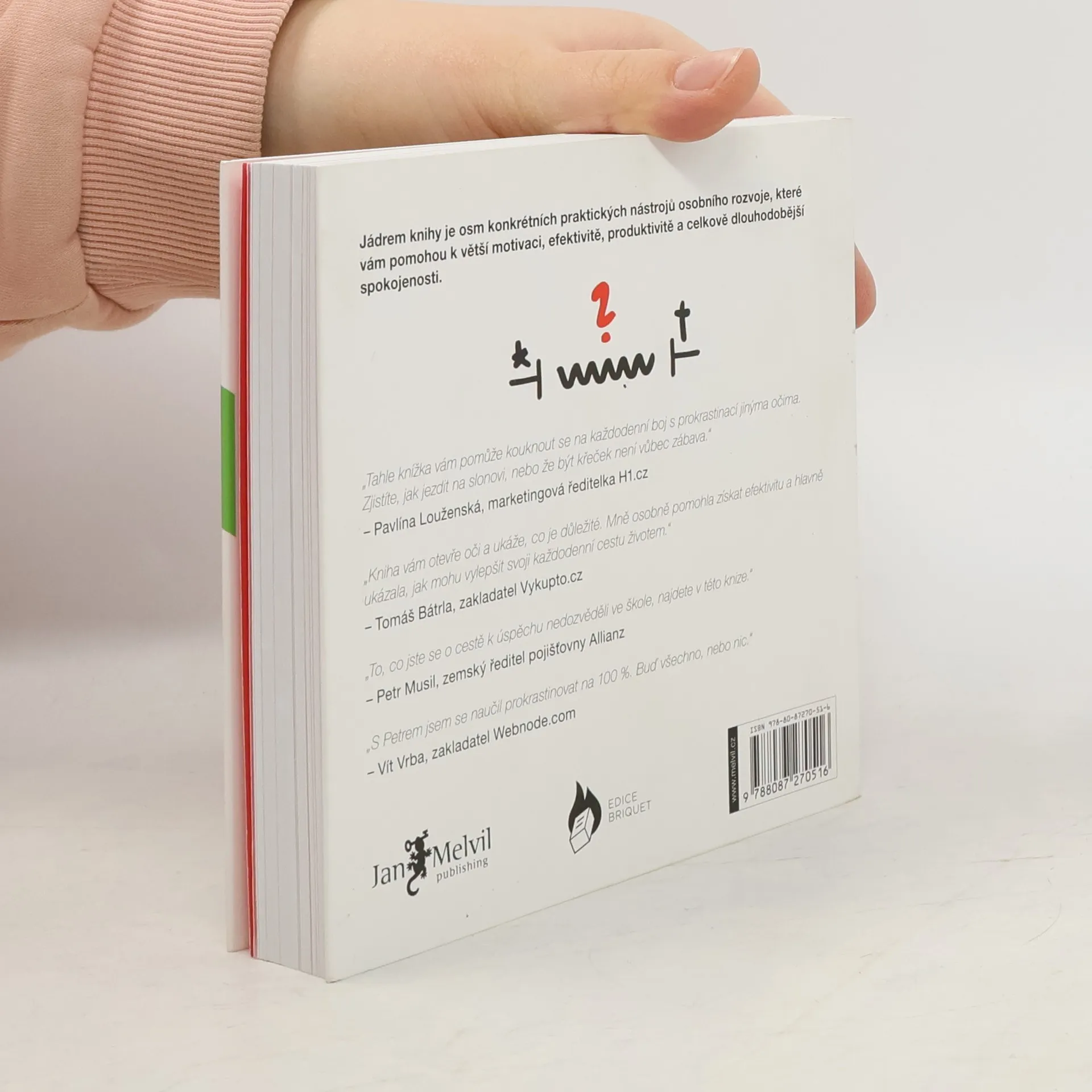 Jak přestat odkládat a začít žít naplno. Znáte ten pocit, když se vám nechce začít dělat na nějakém úkolu? Stává se vám, že odkládáte i věci, které opravdu dělat chcete? Snažíte si sami sobě poručit, ale neposlechnete se? Petr Ludwig v původní české publikaci opírající se o poslední vědecké výzkumy světových univerzit z oblasti lidského rozhodování, motivace a produktivity přináší odpověď na otázku, kterou si klade každý z nás: Jak z toho ven? Jak být produktivnější bez větší únavy? Jak začít využívat náš čas efektivněji? Jak prožít každý den naplno? Říman Seneca ve svém slavném citátu řekl: „Zatímco ztrácíme svůj čas váháním a odkládáním, život utíká.” Tato kniha vám pomůže s váháním a odkládáním dlouhodobě bojovat a zlepší vaši schopnost využívat čas smysluplněji. Jádrem knihy je osm praktických nástrojů osobního rozvoje, které vám pomohou nad prokrastinací vyhrávat každý den.