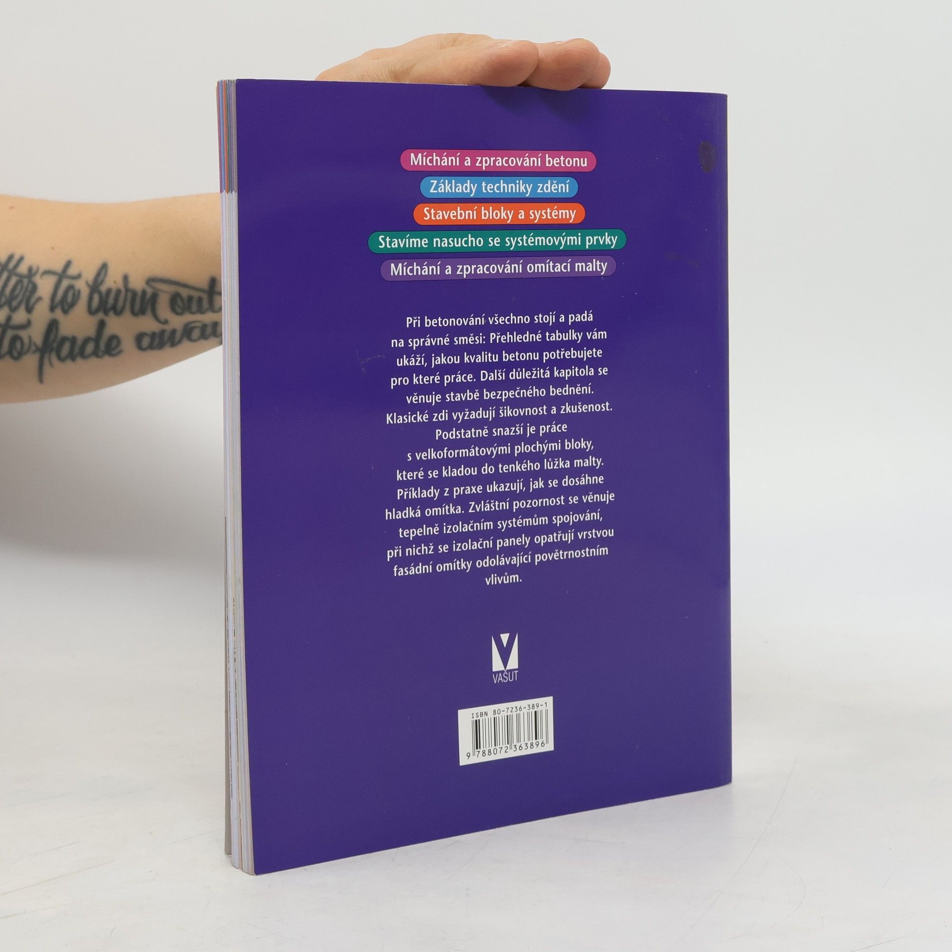 · Míchání a zpracování betonu · Základy techniky zdění · Stavební bloky a systémy · Zdění nasucho se systémovými prvky · Míchání a zpracování omítací malty Při betonování všechno stojí a padá na správné směsi: Přehledné tabulky vám ukáží, jako kvalitu betonu potřebujete pro které práce. Další důležitá kapitola se věnuje stavbě bezpečného pažení. Klasické zdi vyžadují šikovnost a zkušenost. Podstatně snazší je práce s velkoformátovými plochými bloky, které se kladou do tenkého lůžka malty. Příklady z praxe ukazují, jak se dosáhne hladká omítka. Zvláštní pozornost se věnuje tepelně izolačním systémům spojování, při nichž se izolační panely opatřují vrstvou fasádové omítky odolávající povětrnostním vlivům.